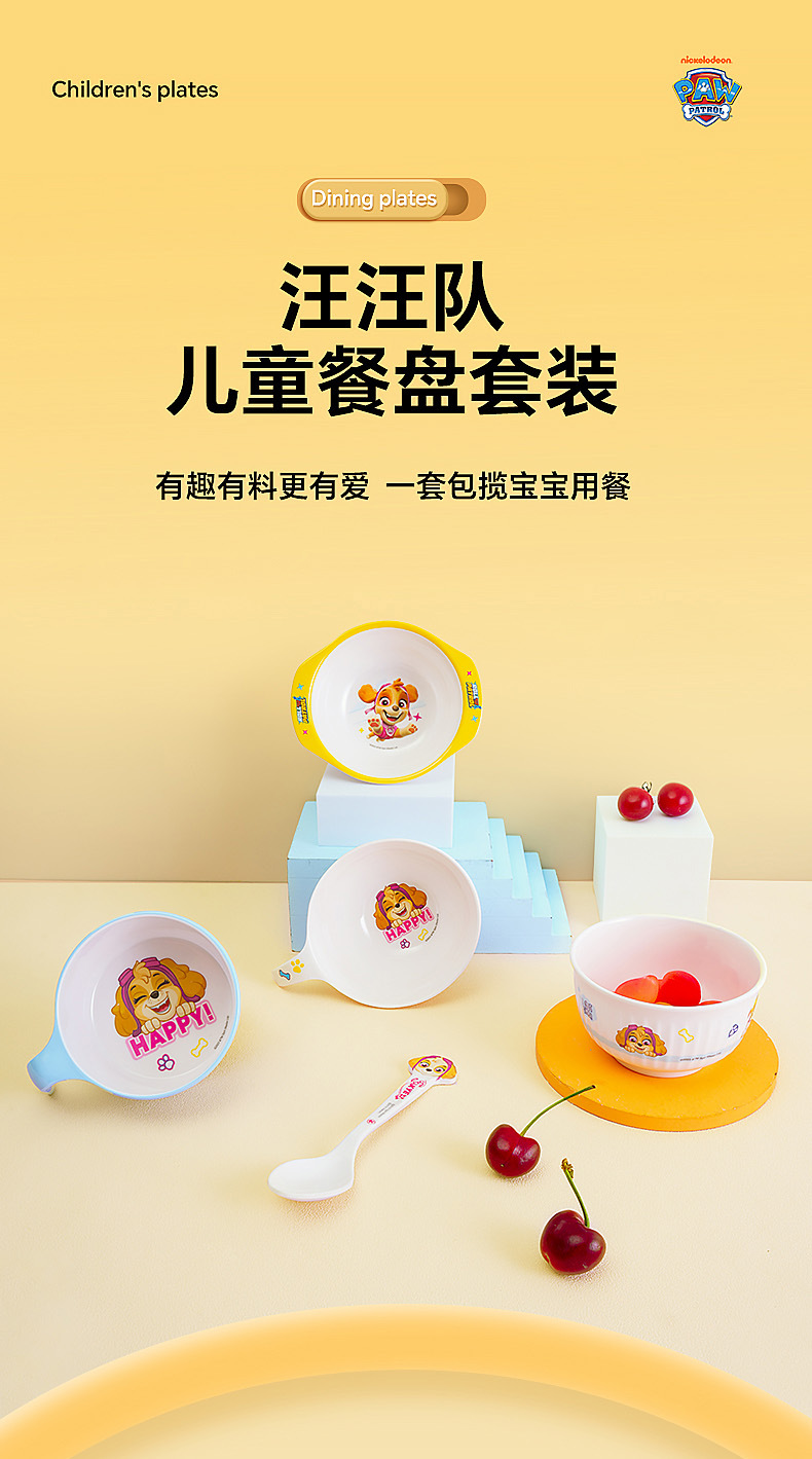 왕왕 팀 이중 귀 그릇 아기 먹는 그릇 수프 유치원 식기 Archie 멜라민 그릇 어린이 보충 음식 그릇