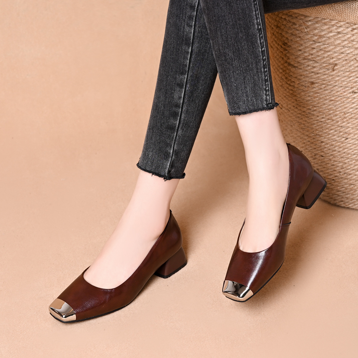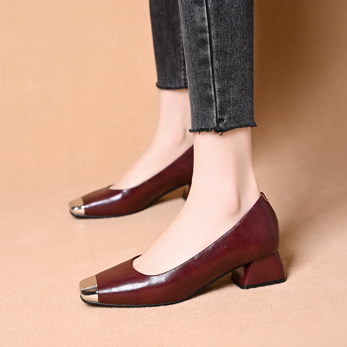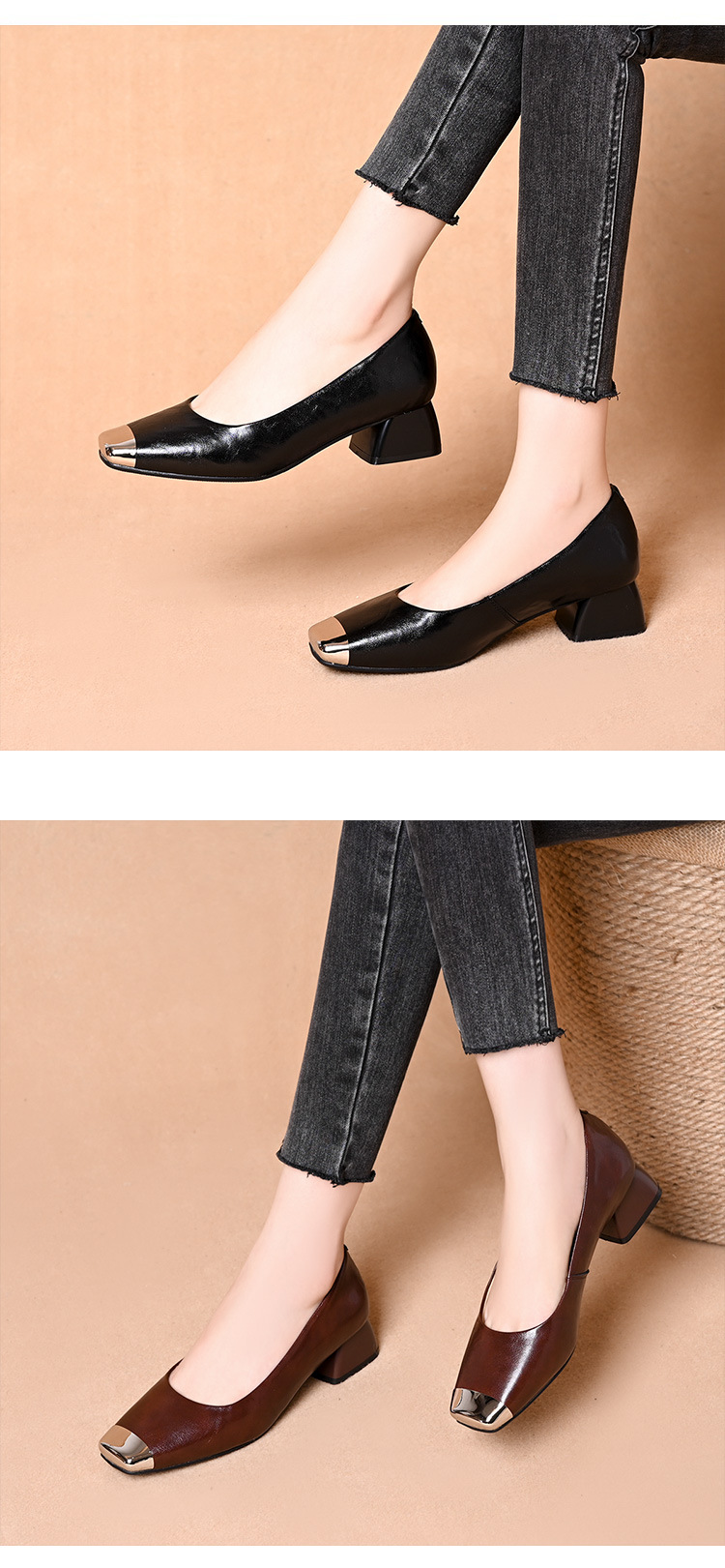 로퍼 레트로 스퀘어 토이 우아한 올 매치 스퀘어 버클 두꺼운 힐 세련된 힐 슈즈 여성용 얕은 입 로우 미들 싱글 레이어 슈즈