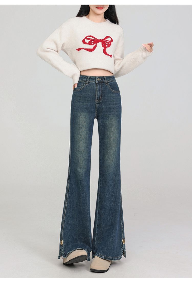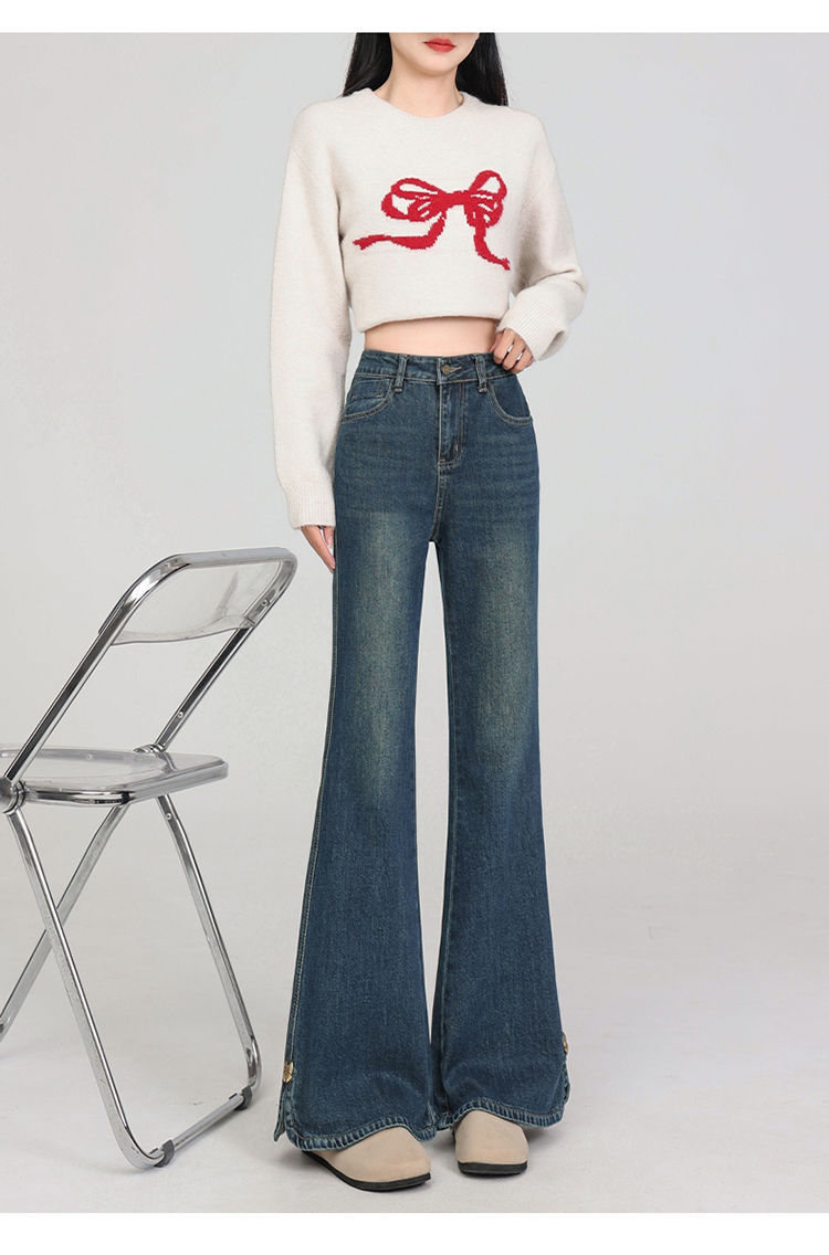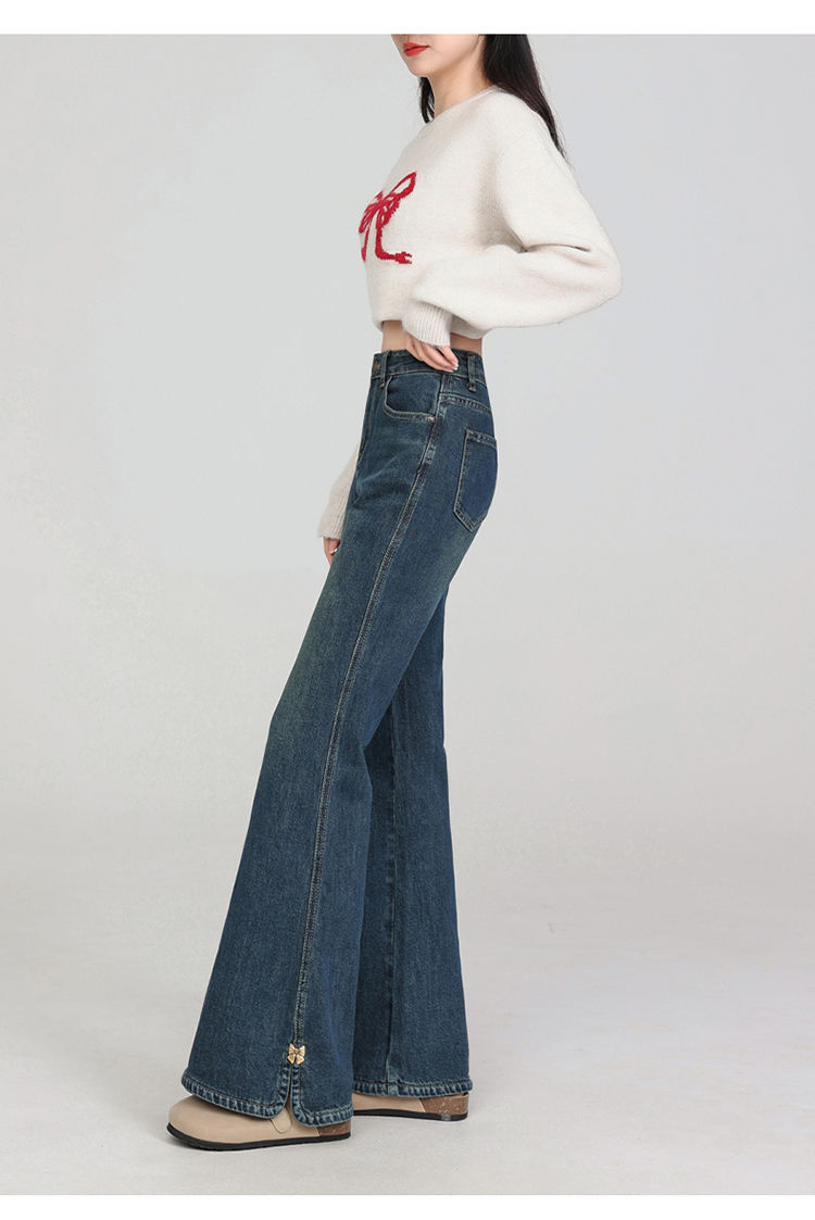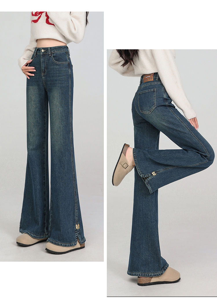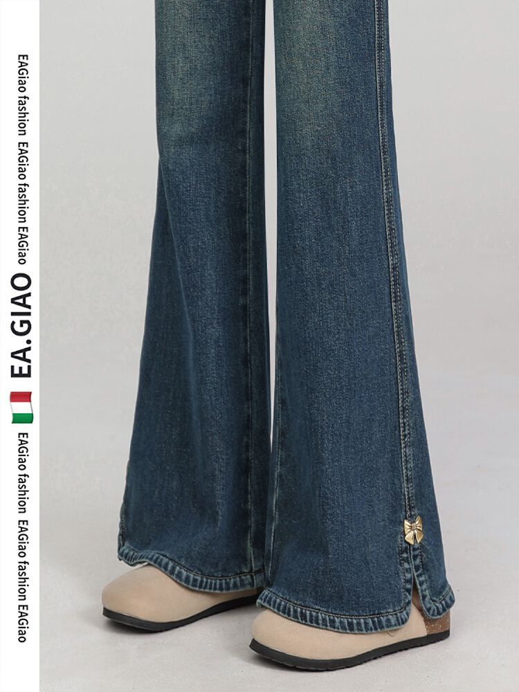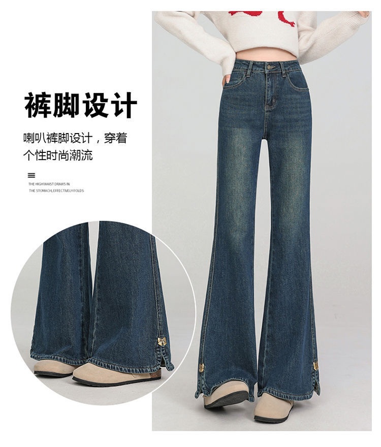 봄 뉴 블루 스플릿 하이 웨이스트 청바지 여성 한국식 슬림 룩 올매치 마이크로 혼 말굽 바지