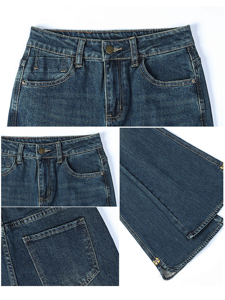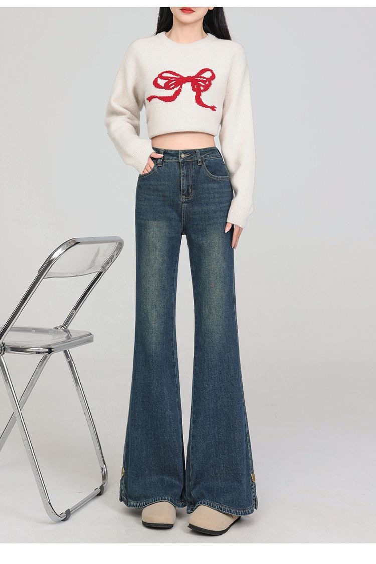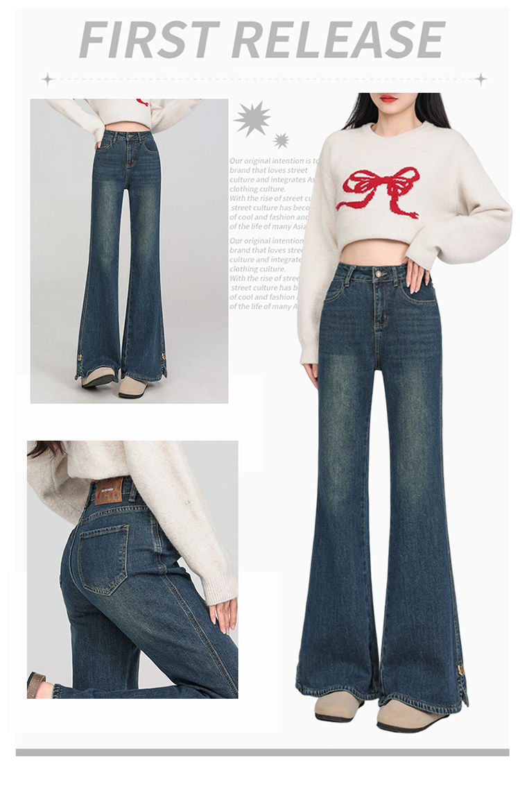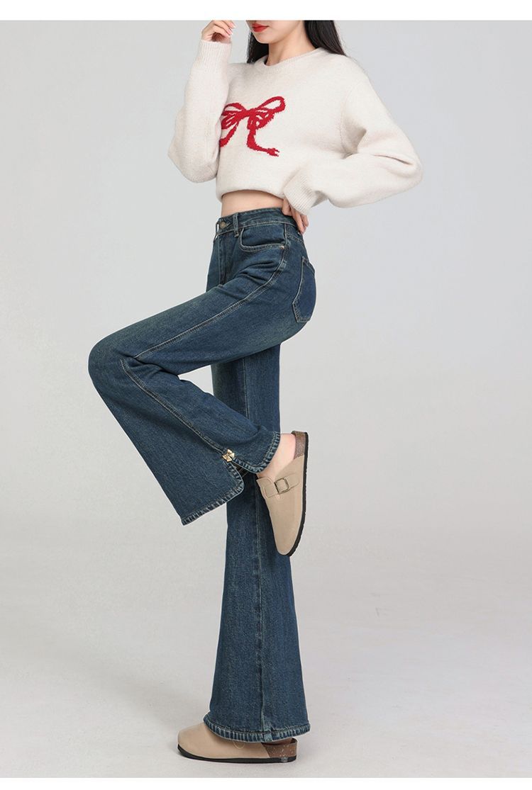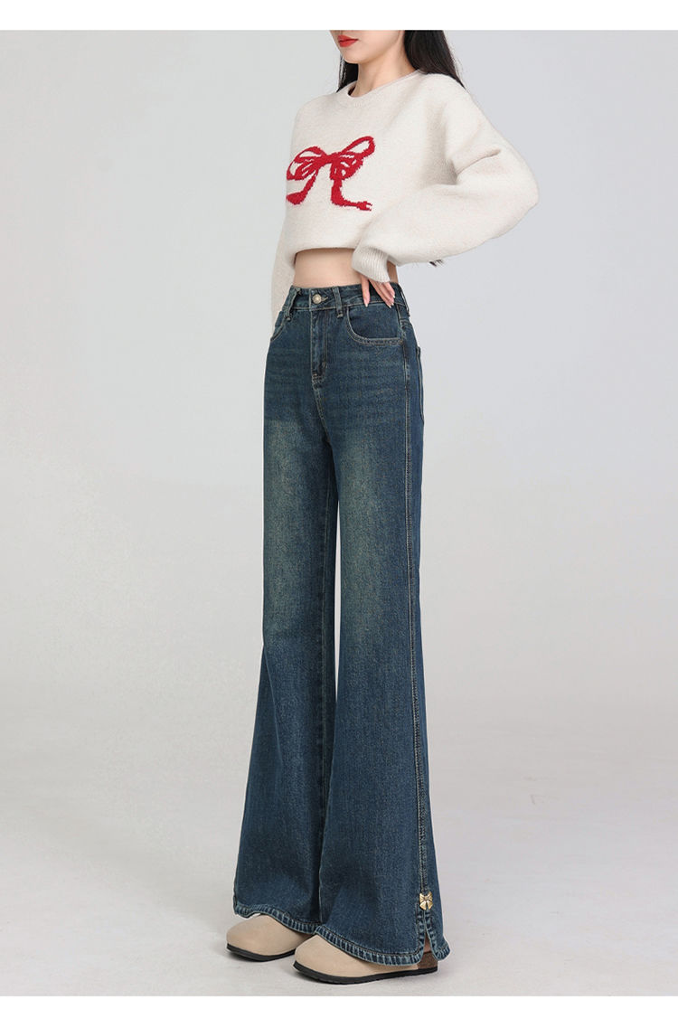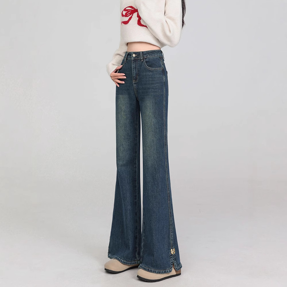 봄 뉴 블루 스플릿 하이 웨이스트 청바지 여성 한국식 슬림 룩 올매치 마이크로 혼 말굽 바지