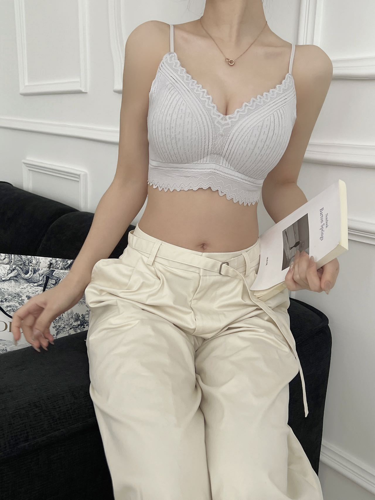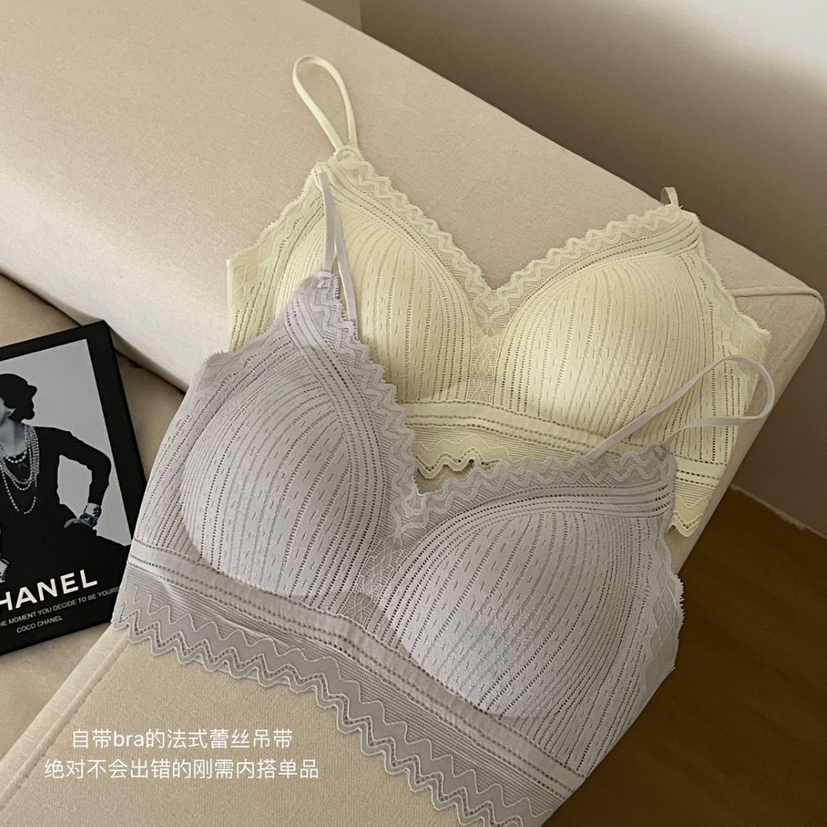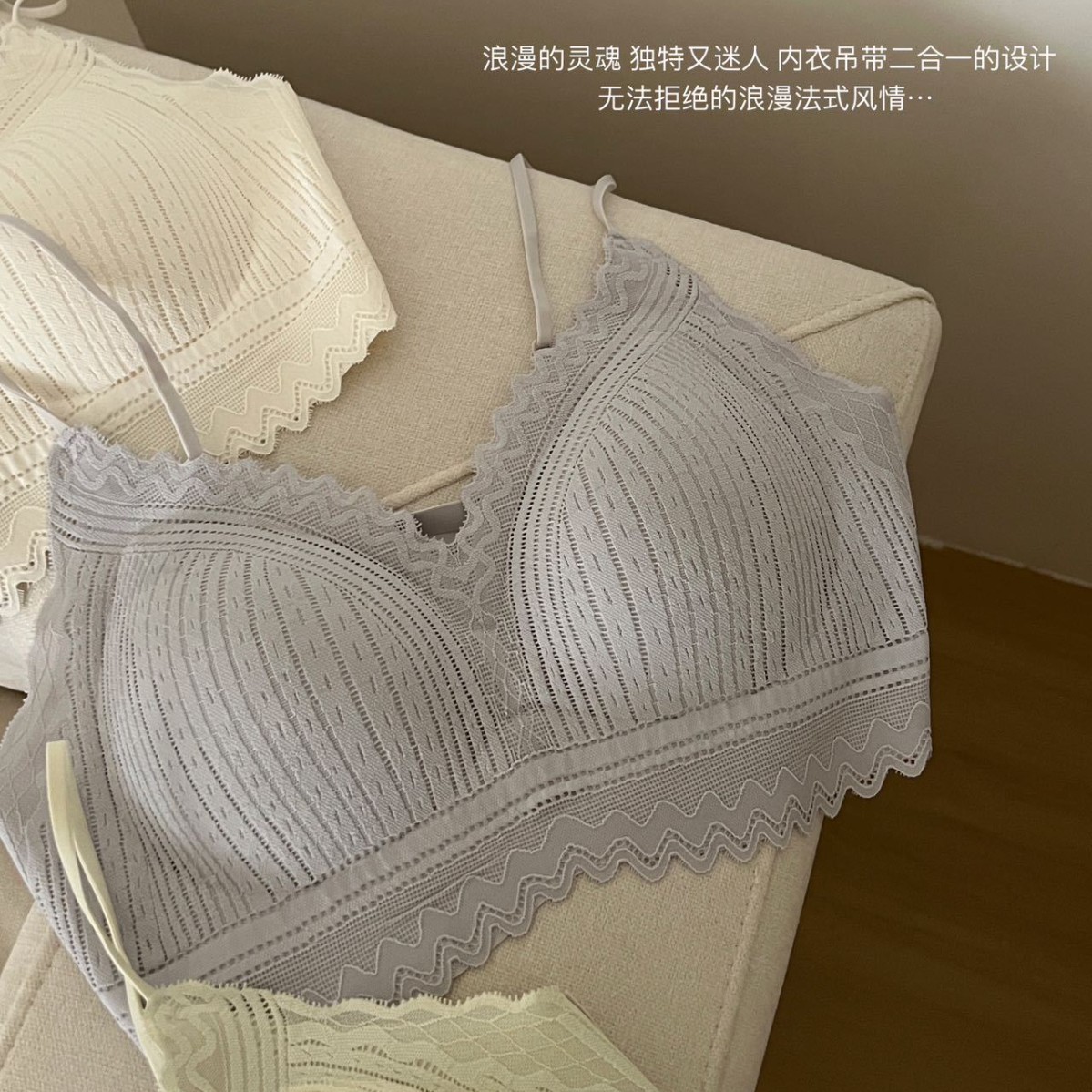 작은 가슴 프랑스 섹시한 슬링 가슴 패드 아름다운 조끼는 한 조각 속옷 여성용 화이트 레이스 브래지어