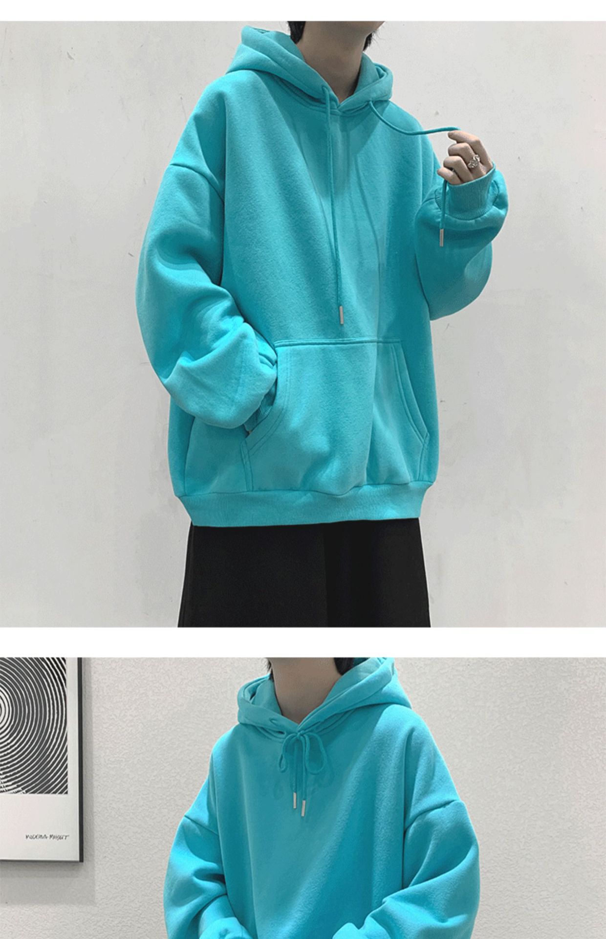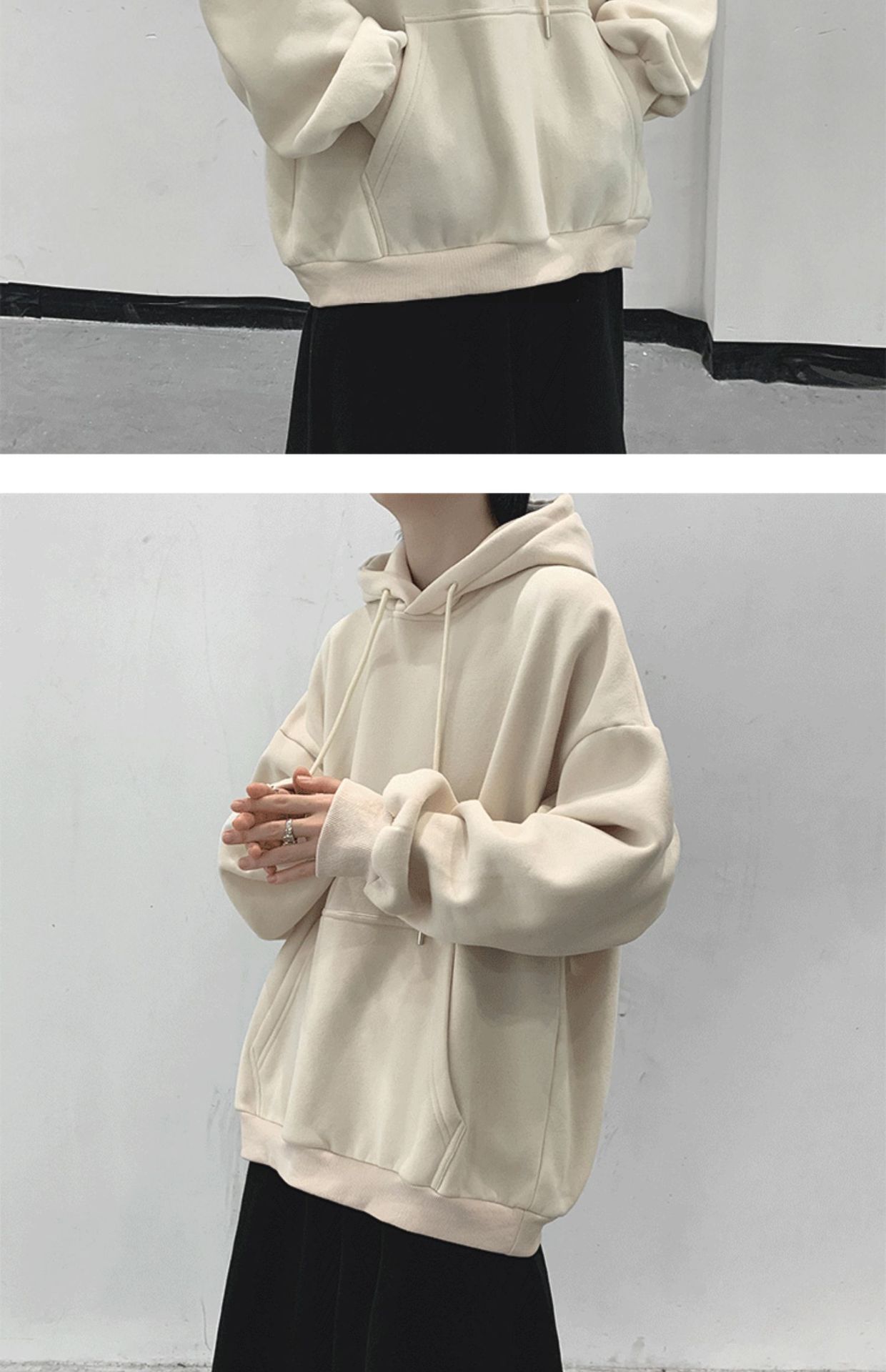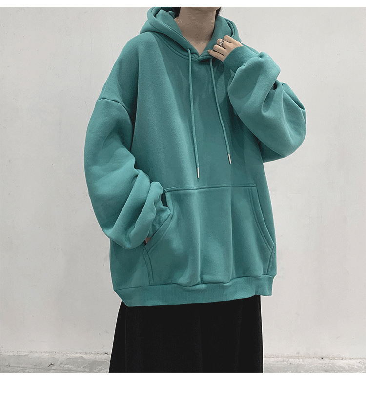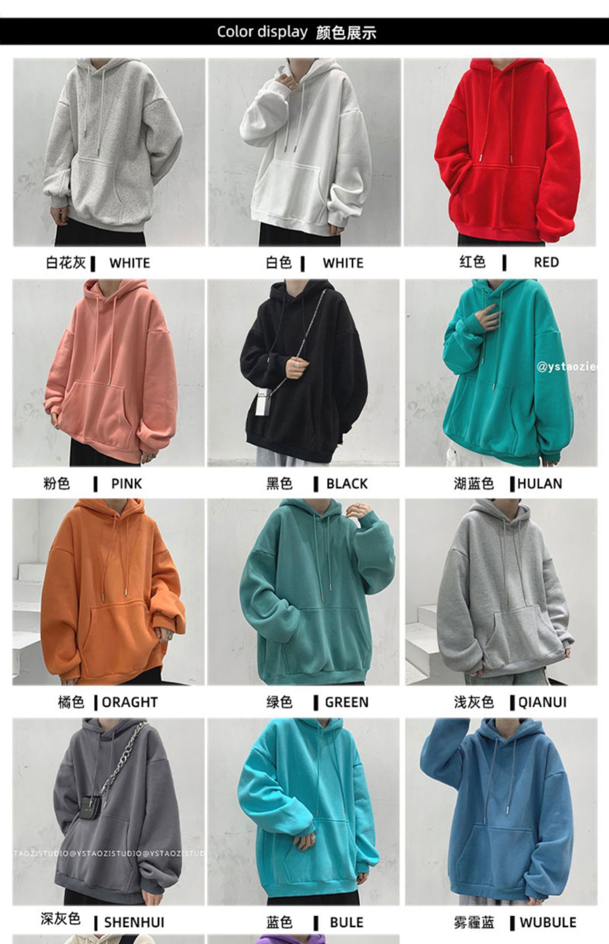 트렌디 한 브랜드 느슨한 봄과 가을 캐주얼 올 매치 한국 스타일 유행 커플 원피스 긴 소매 풀오버 재킷 솔리드 컬러 후드 스웨트 셔츠