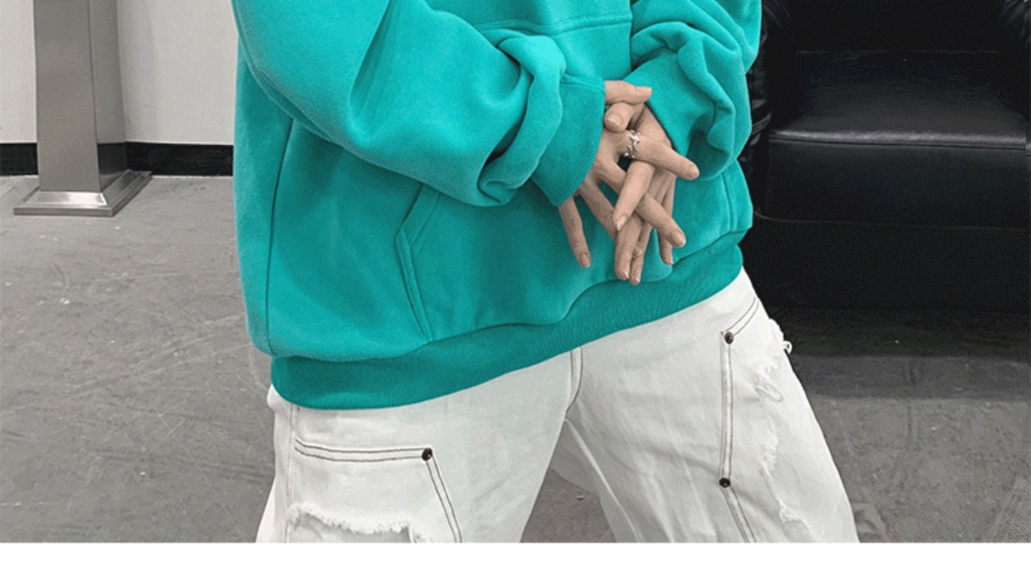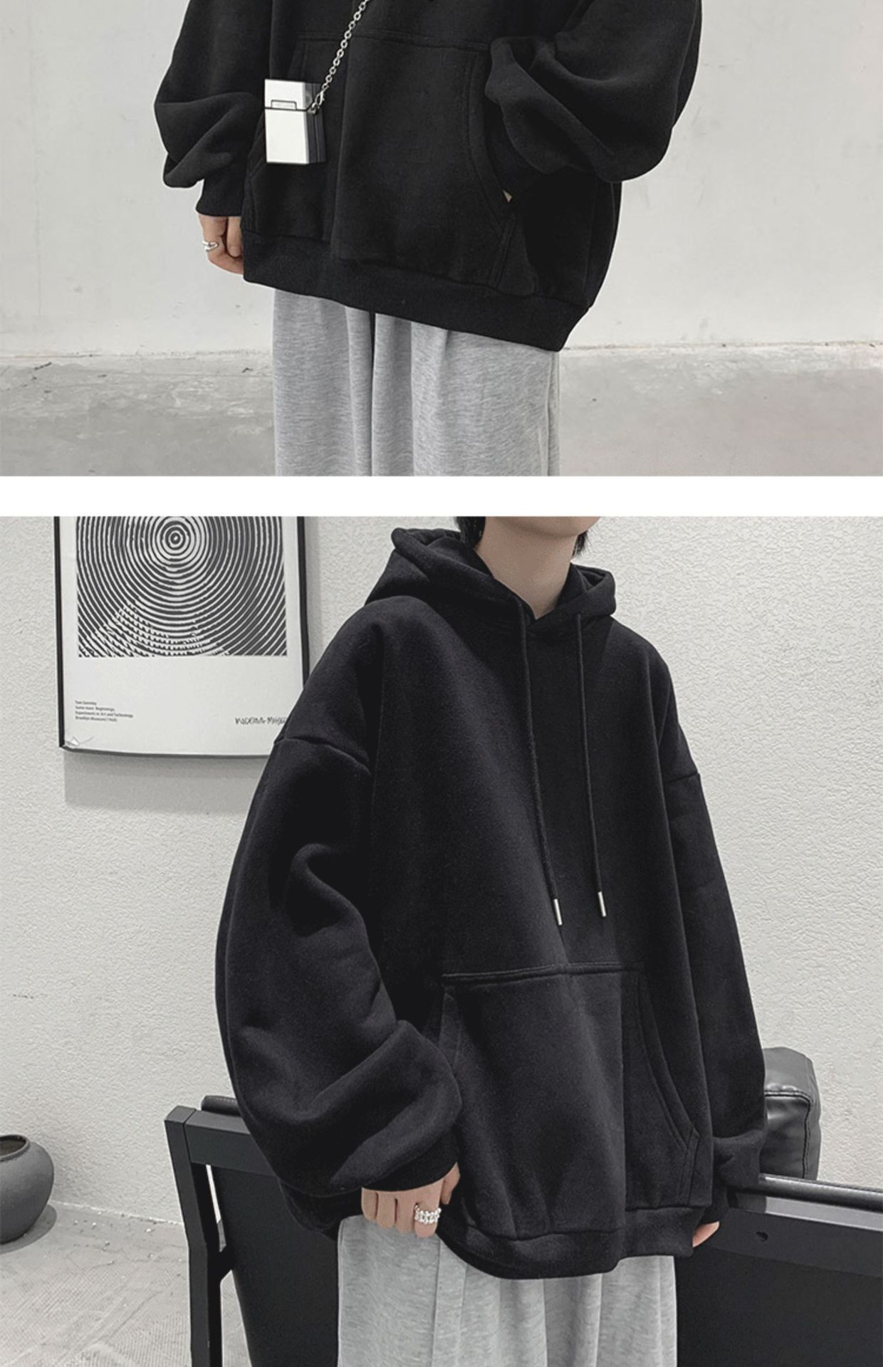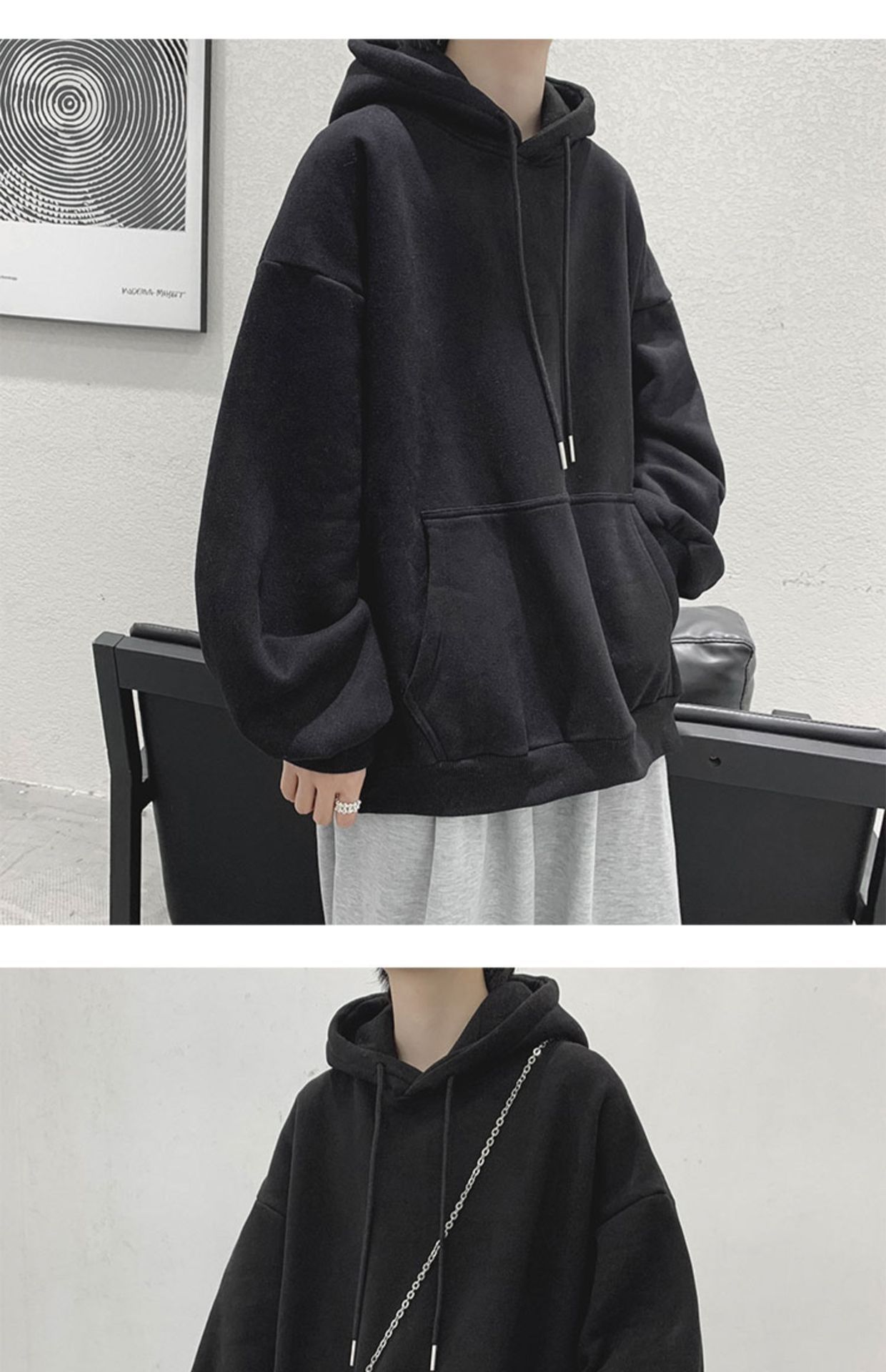 트렌디 한 브랜드 느슨한 봄과 가을 캐주얼 올 매치 한국 스타일 유행 커플 원피스 긴 소매 풀오버 재킷 솔리드 컬러 후드 스웨트 셔츠