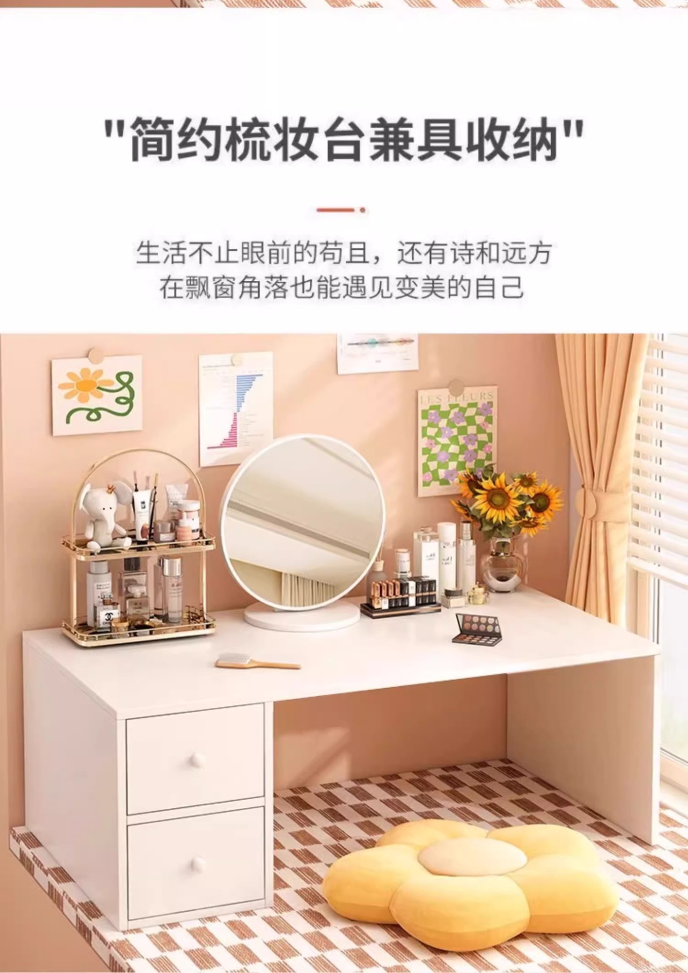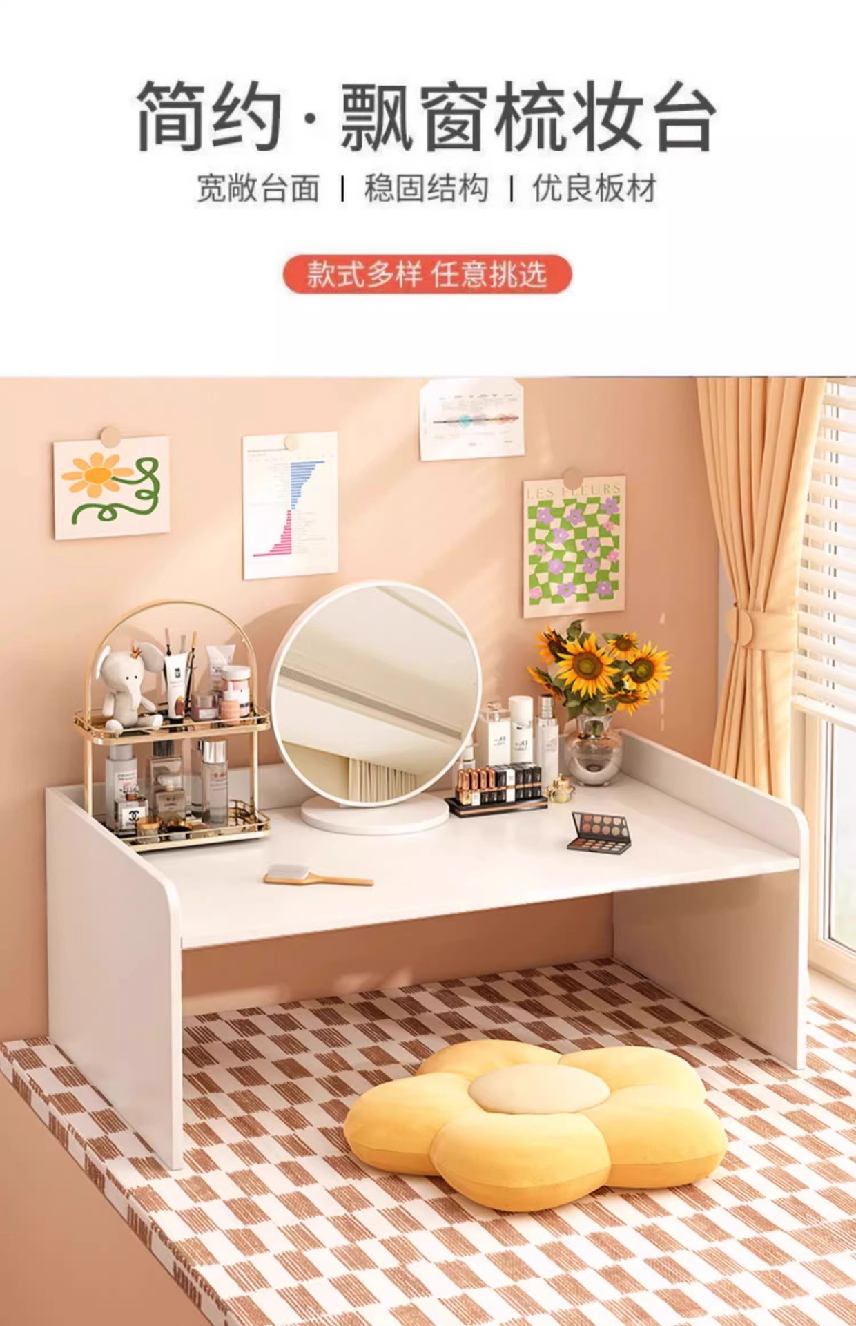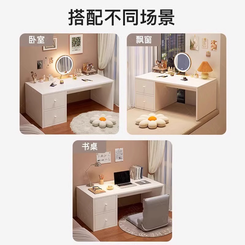 베이 창 드레싱 테이블 간단한 크림 스타일 메이크업 테이블 2025 새로운 드레싱 테이블 침실 드레싱 캐비닛 메이크업 거울