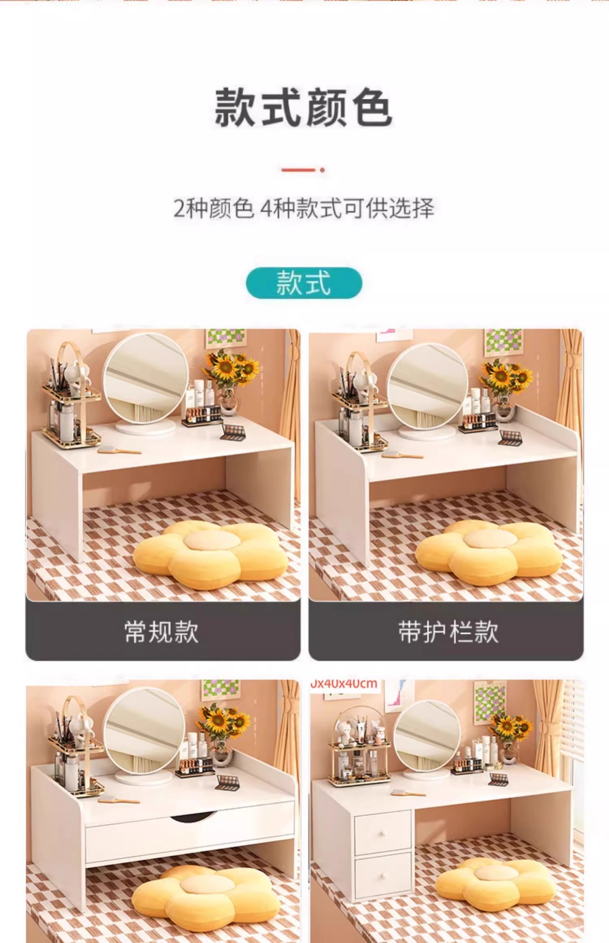 싱글 테이블 모델 [거울 포함] 웜 화이트 80x40x40cm