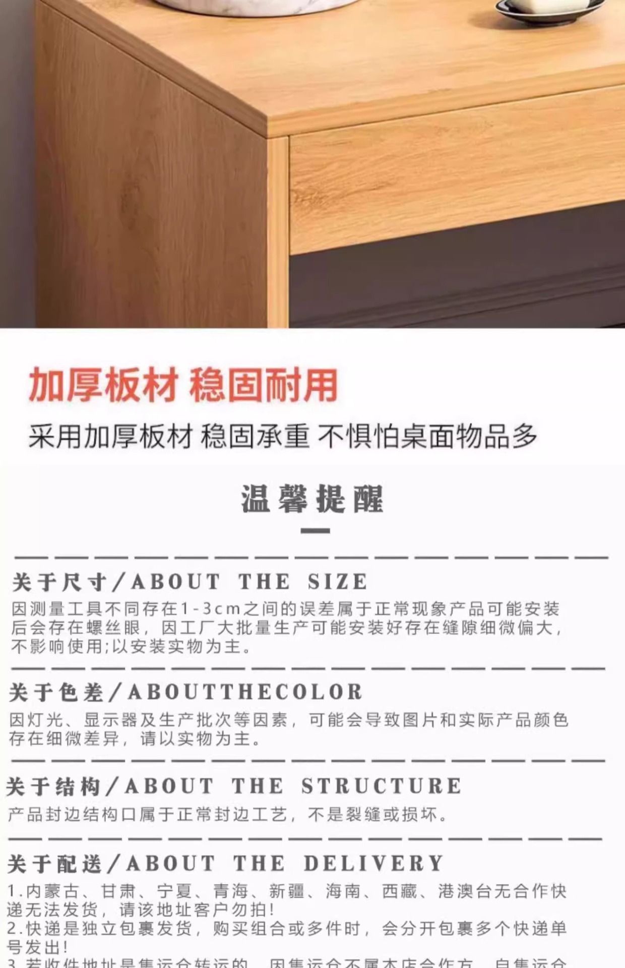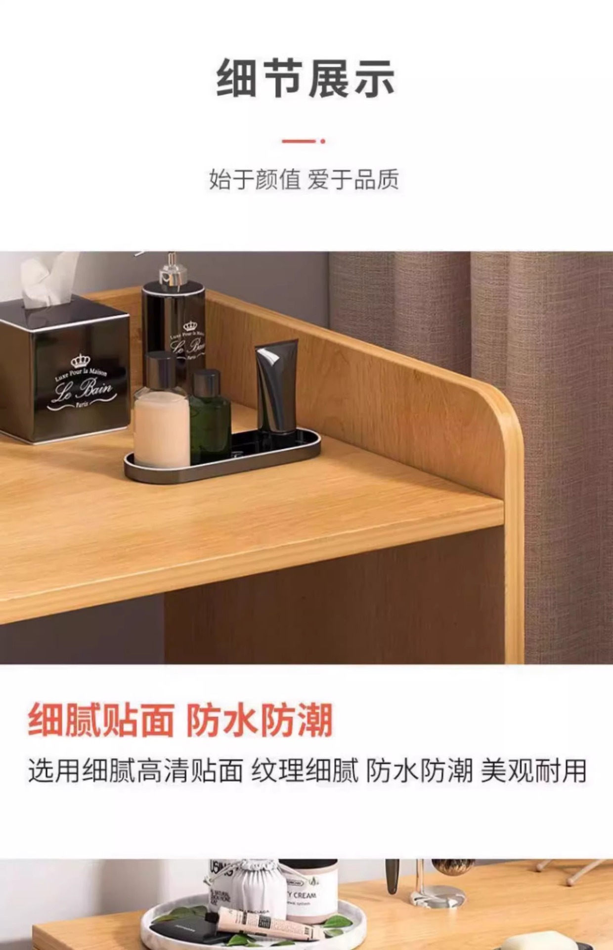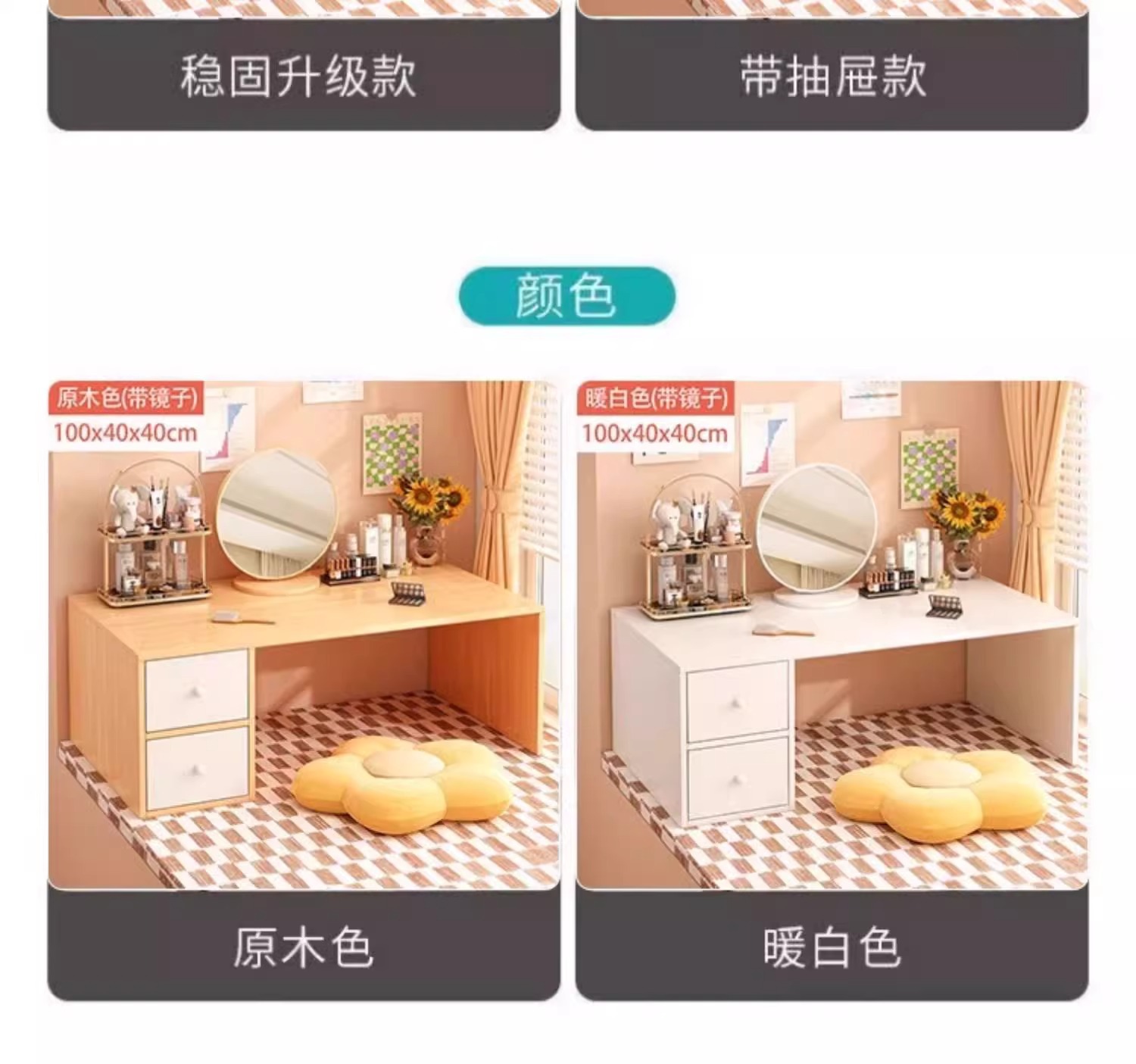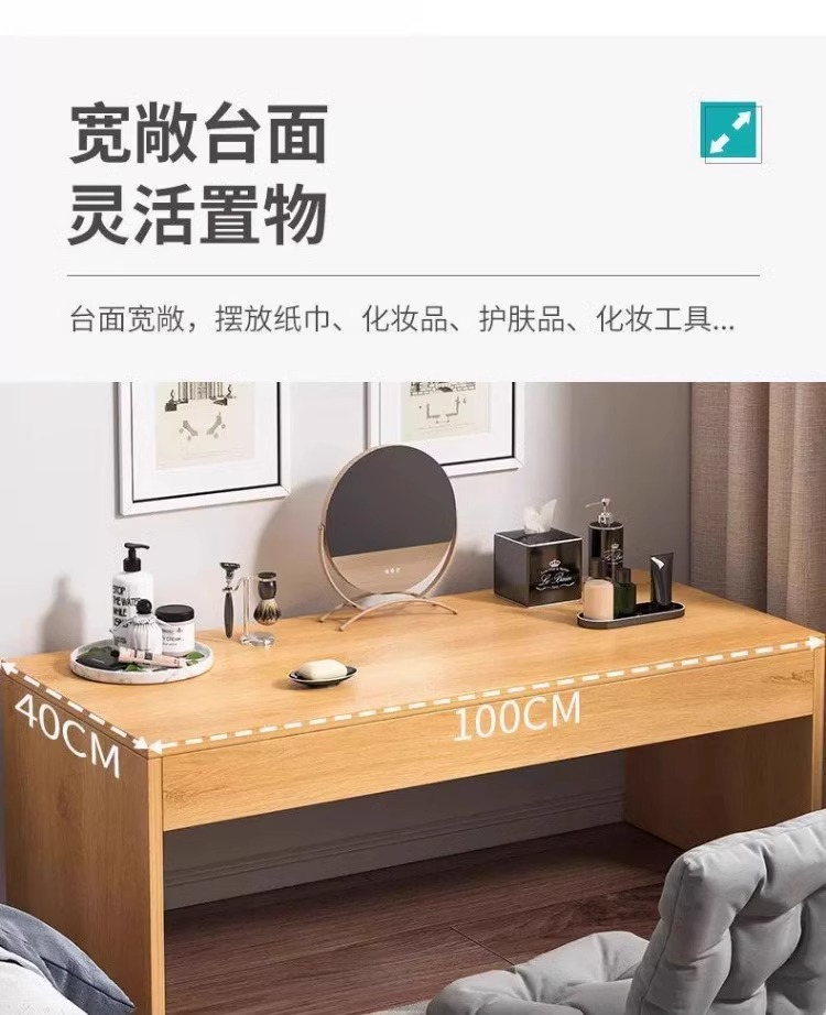 싱글 테이블 모델 [거울 포함] 원목 색상 80x40x40cm