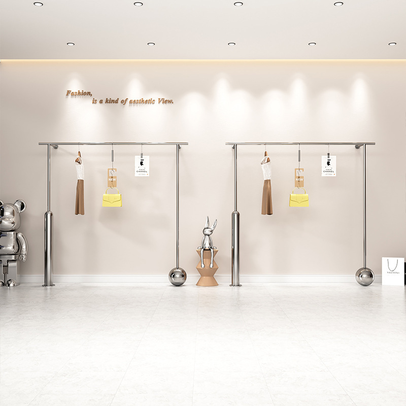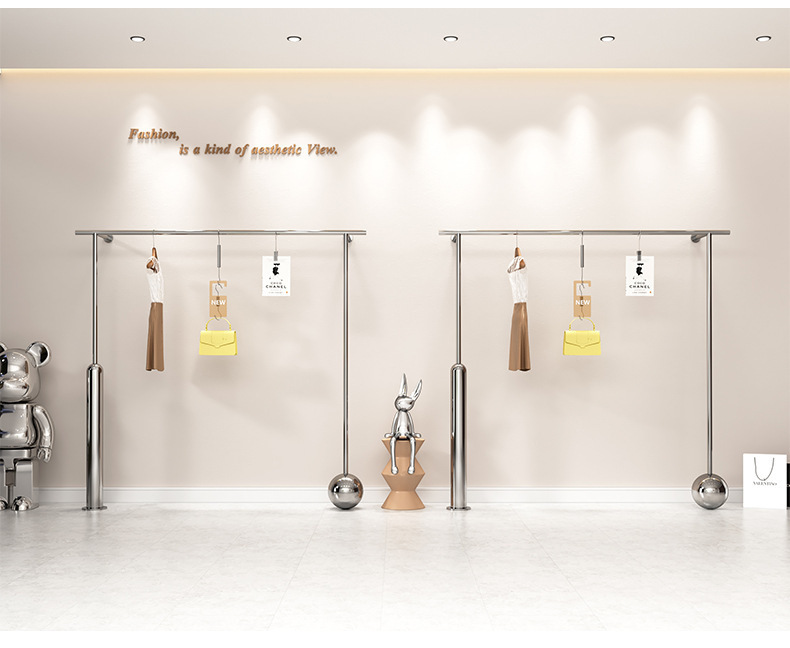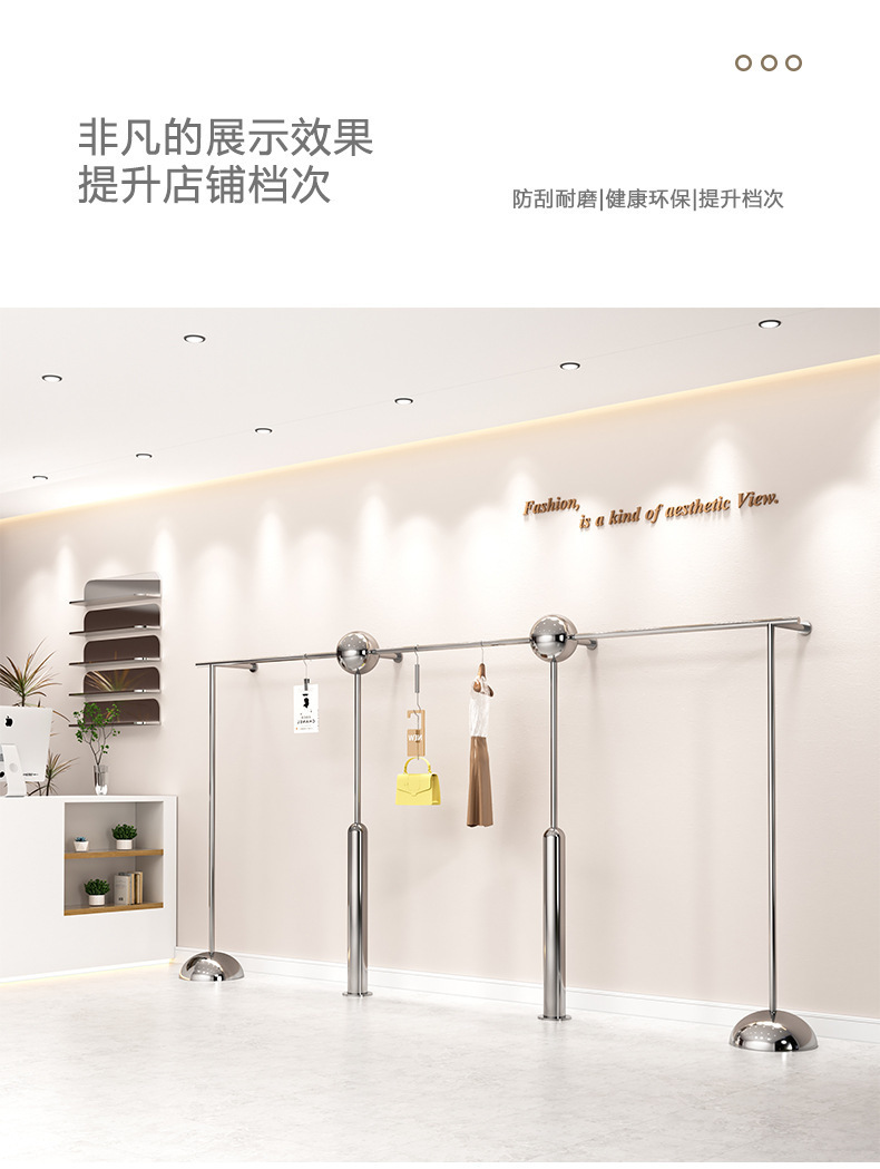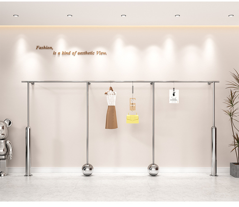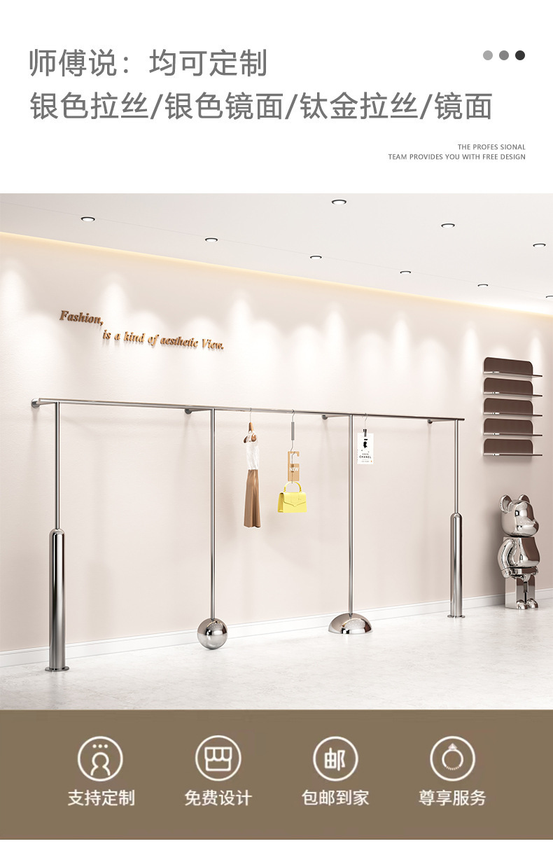 여성용 의류 매장 디스플레이 랙 벽걸이 형 스테인레스 스틸 옷걸이 의류 매장 디스플레이 선반 라이브 룸 의류 랙