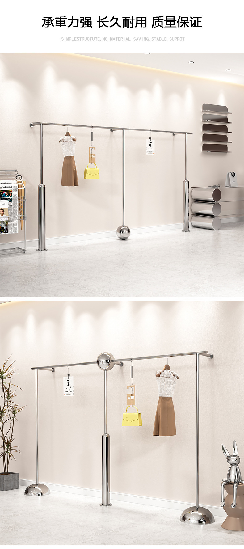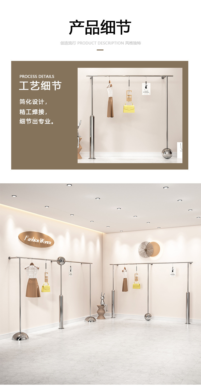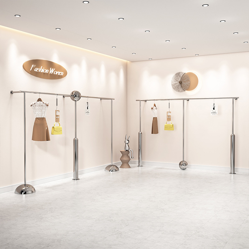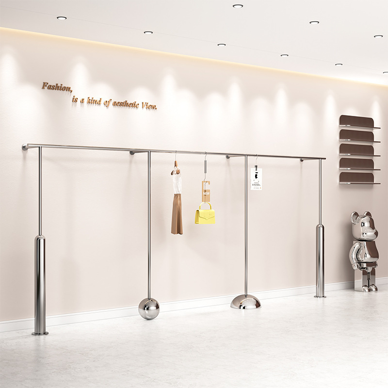 여성용 의류 매장 디스플레이 랙 벽걸이 형 스테인레스 스틸 옷걸이 의류 매장 디스플레이 선반 라이브 룸 의류 랙