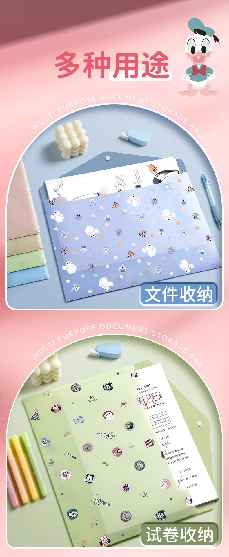 A4 스냅 파일 가방 투명 두꺼운 대용량 플라스틱 폴더 초등학교 학생 테스트 용지 정렬 및 대조 주제
