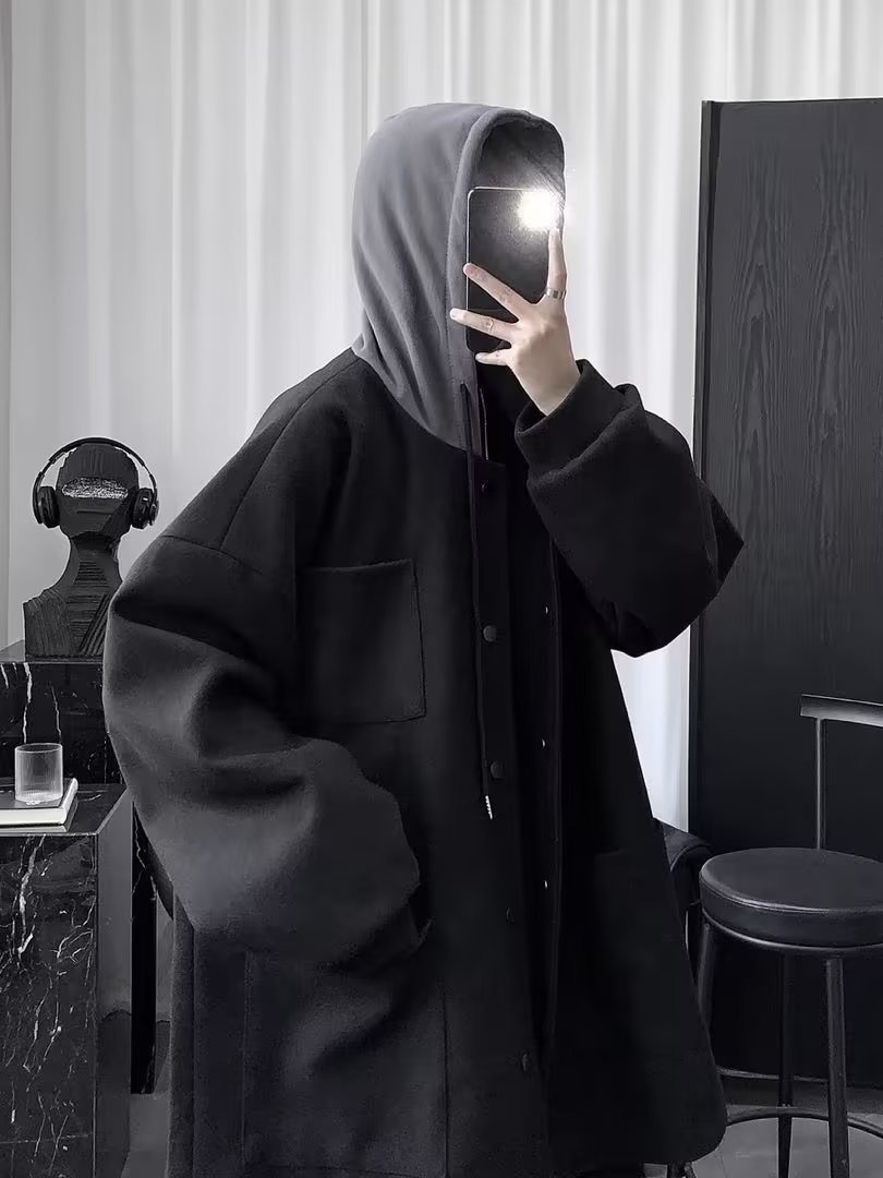 홍콩 스타일 가을과 겨울 남자 더피 잘 생긴 패셔너블 올 매치 코트 코트 센스 보이즈 세트 솔리드 컬러 올 매치 스타일