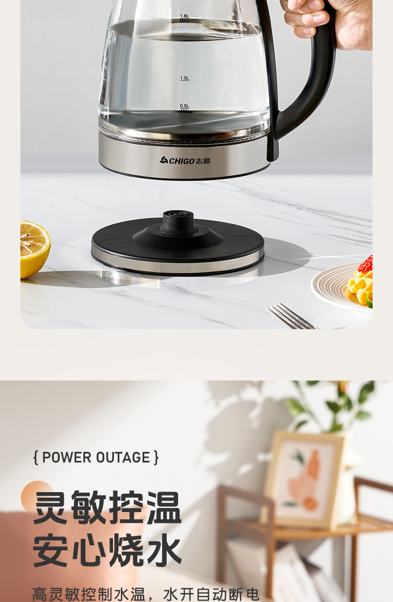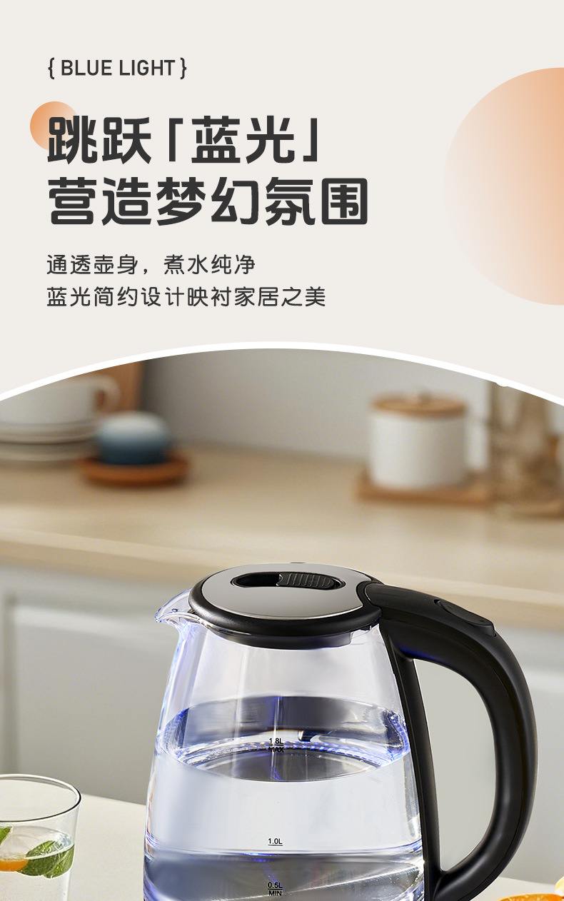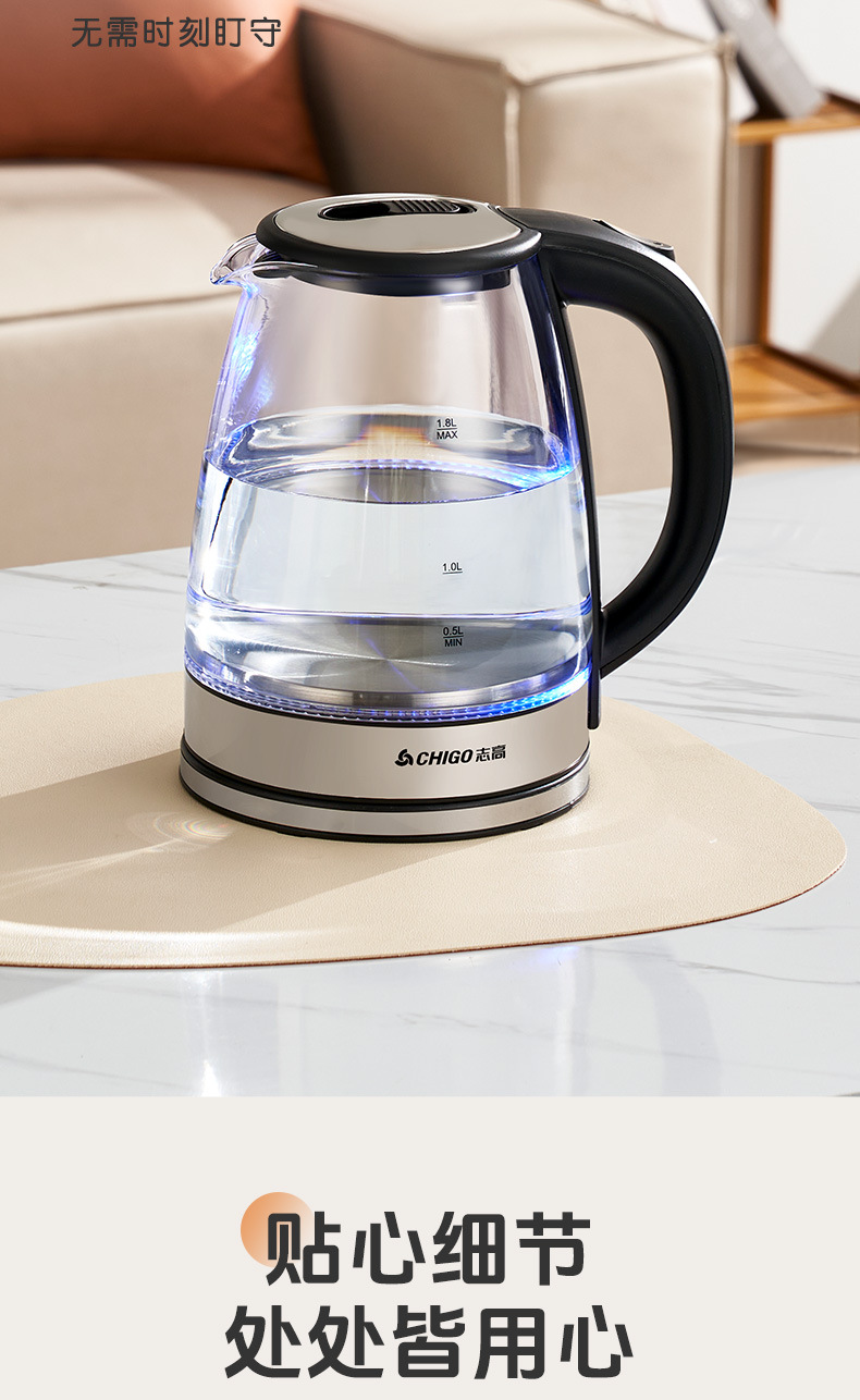 유리 전기 주전자 가정용 대용량 고붕규산 자동 전원 차단 기능이 있는 투명 주전자 차 끓이기용 선물용 주전자
