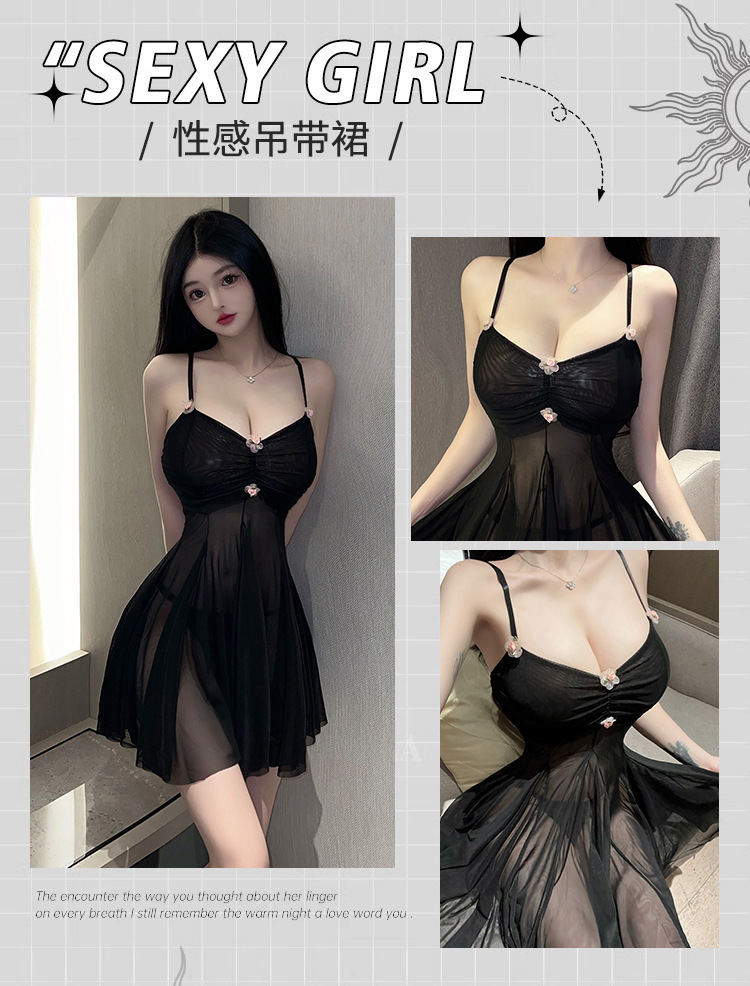 夜听香性感情趣内衣女激情诱惑小胸吊带睡衣纯欲睡裙套装批发749