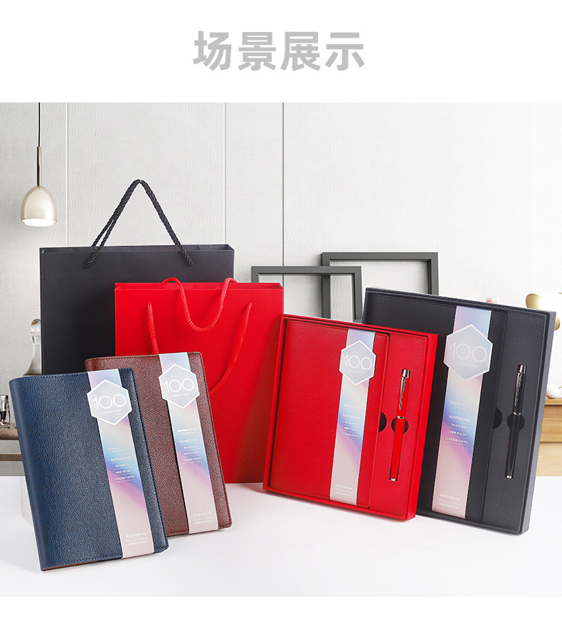 교사 선물 상자 선물 책 인쇄 가능한 로고 문구를 보내는 B5 고가의 가죽 노트북 세트