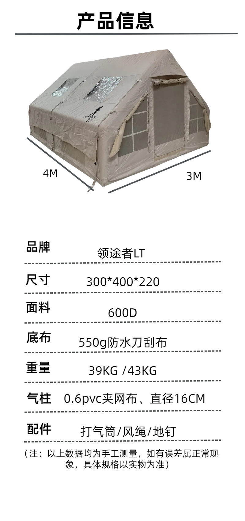 풍선 텐트 야외 캠핑 장비 600D 옥스포드 천 가족 투어 그룹 빌딩 무료 모바일 캠핑 텐트