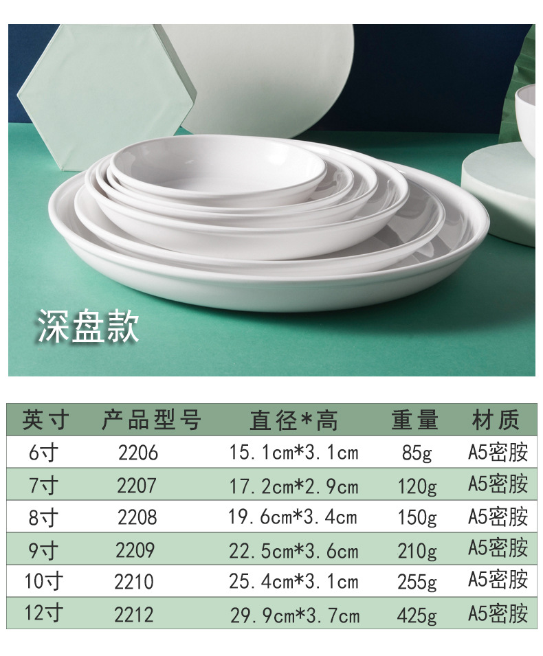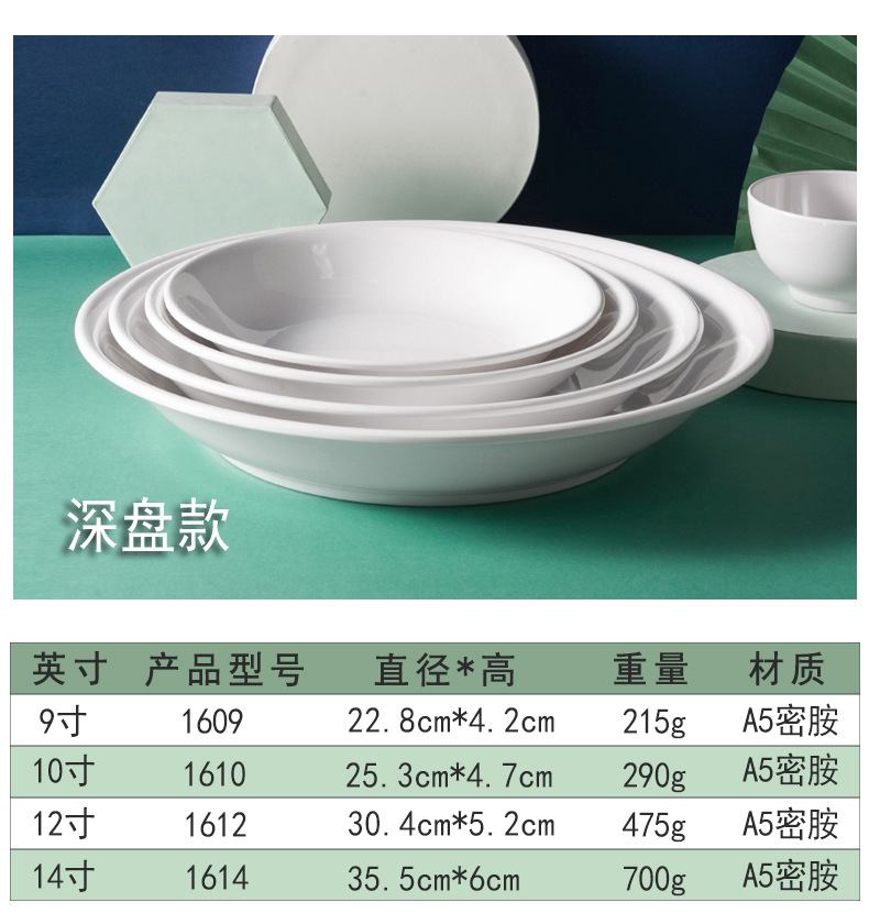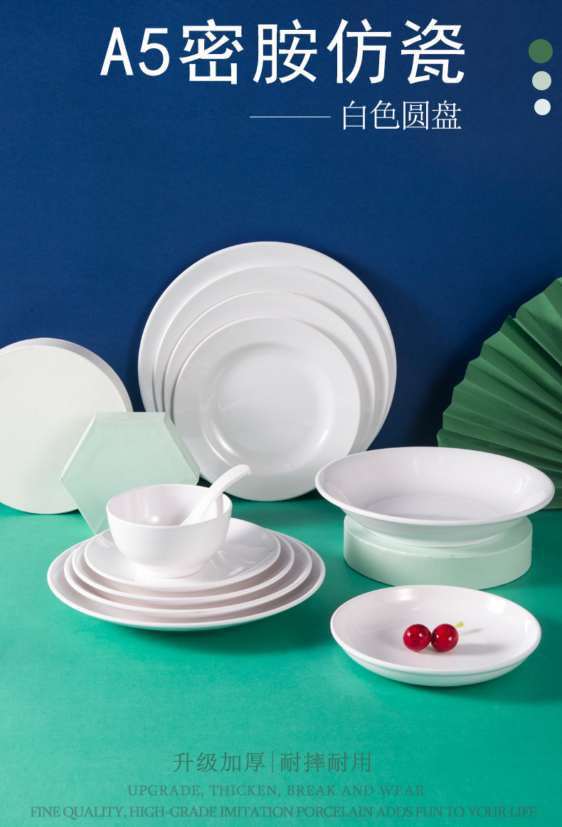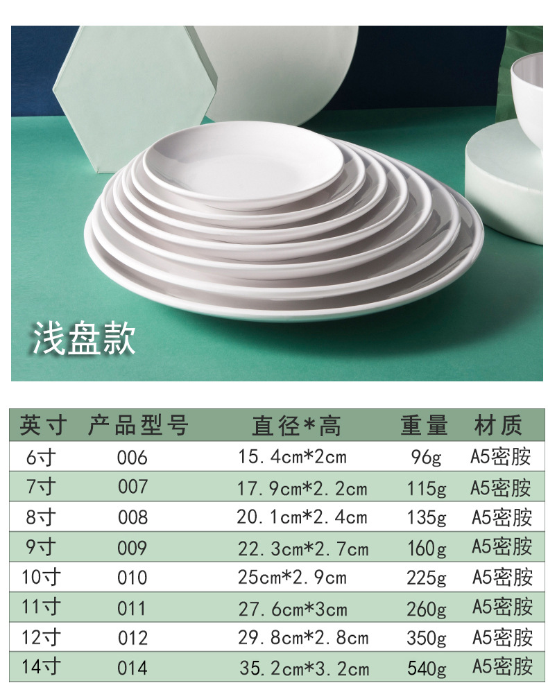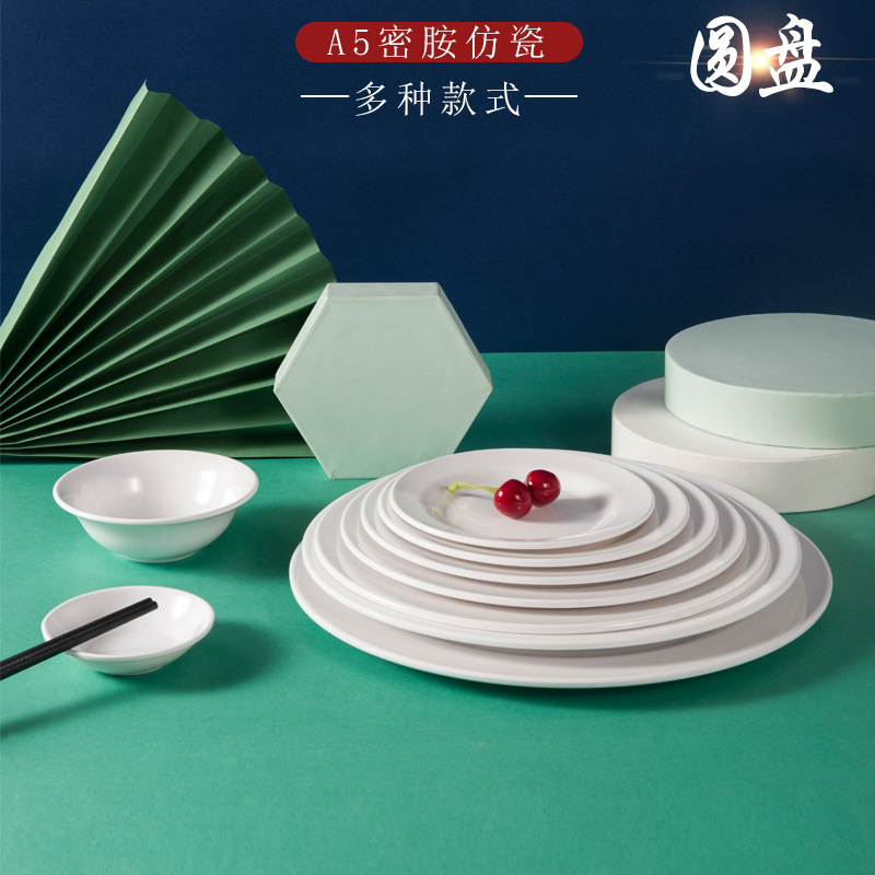 하오이라이 멜라민 접시 흰색 상업용 인조 도자기 식기 뷔페 접시 원형 평평한 접시 얕은 접시 플라스틱 원형 접시 도매