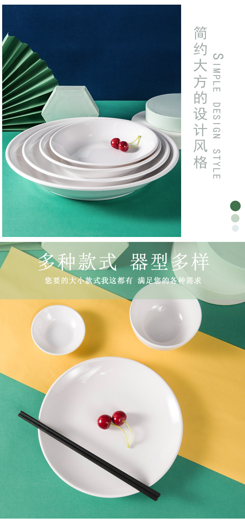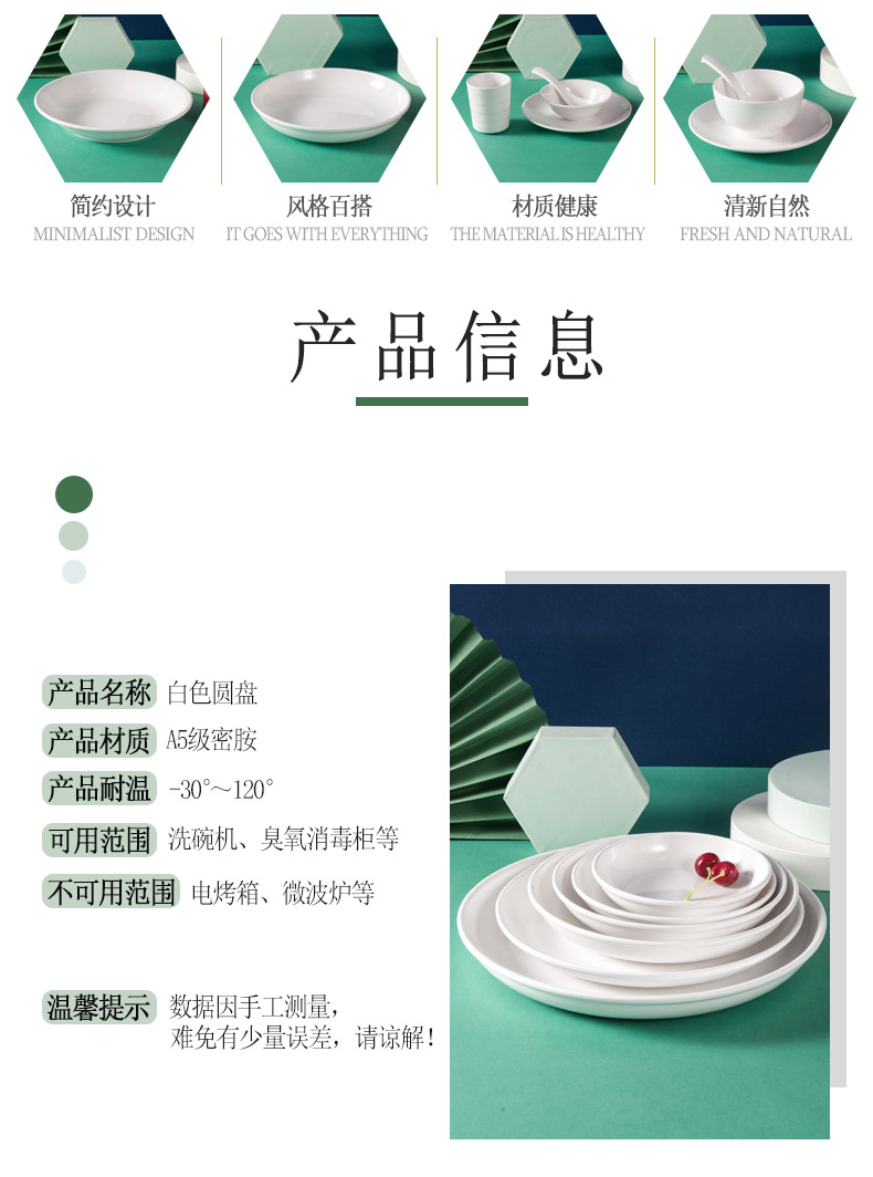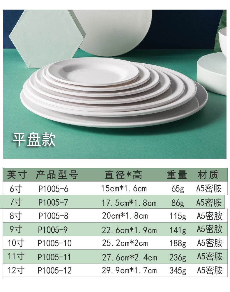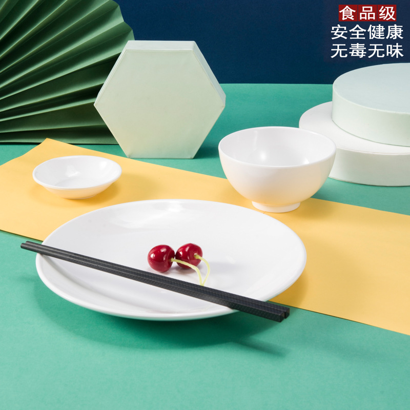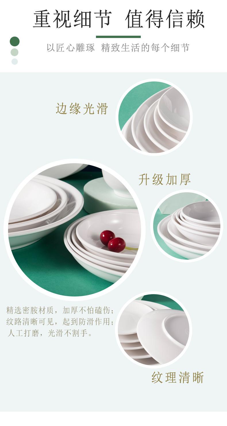 하오이라이 멜라민 접시 흰색 상업용 인조 도자기 식기 뷔페 접시 원형 평평한 접시 얕은 접시 플라스틱 원형 접시 도매