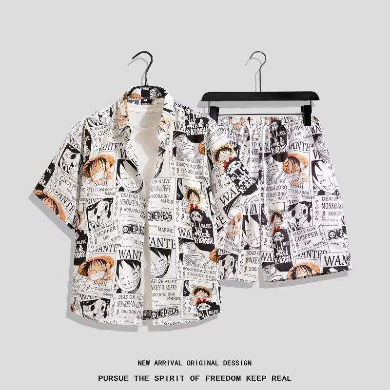 아이스 실크 비치 세트 남자 반팔 플로라 셔츠 플러스 사이즈 느슨한 하와이 빠른 건조 캐주얼 반바지 커플 세트
