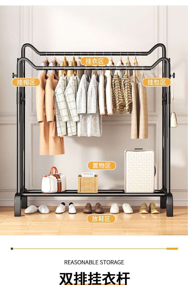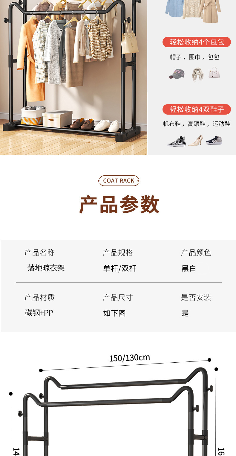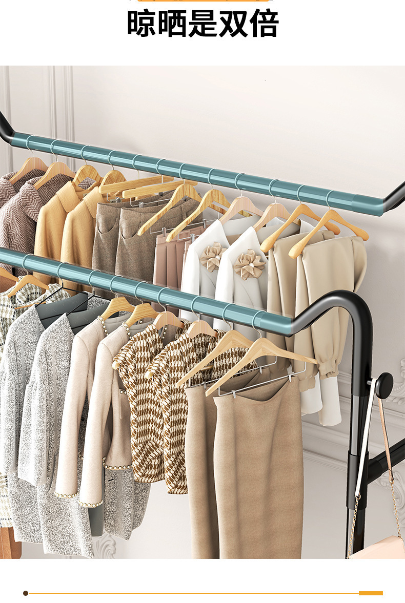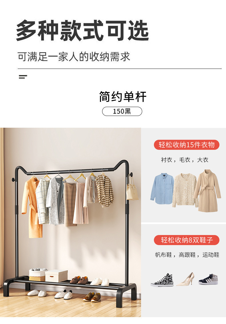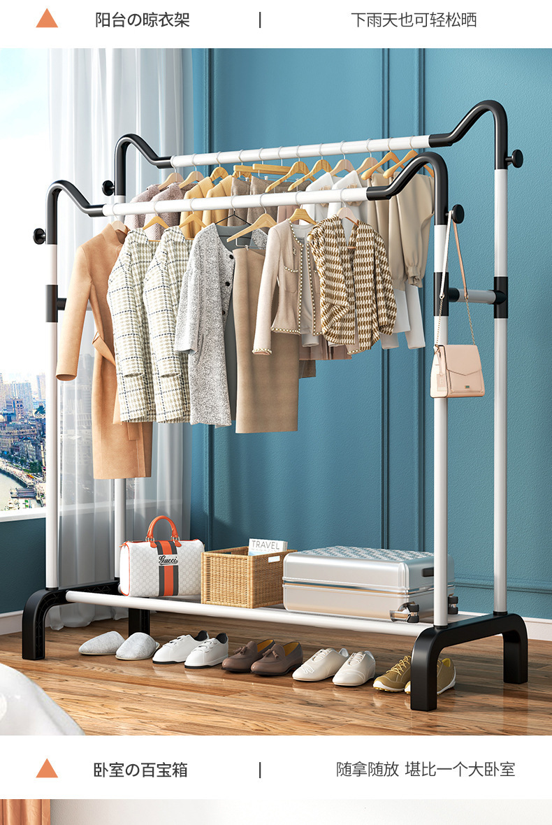 간단한 건조 랙 교수형 막대 바닥 가구 침실 걸이 랙 거실 접이식 옷 막대 발코니 옷 랙