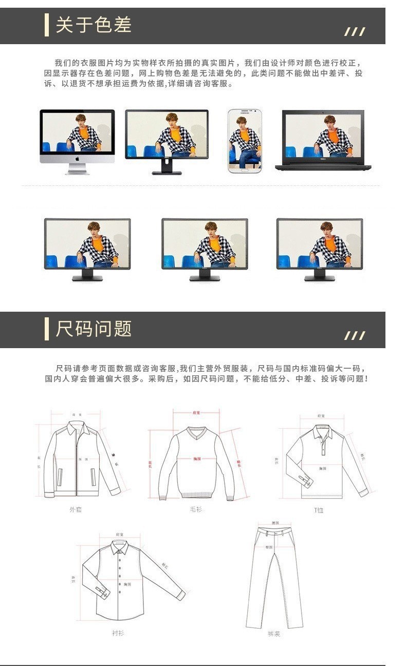 备注:本店铺主要对接跨境商家,所有款式为欧美尺码,衣服上只车洗水唛和码唛,方便跨境买家挂自己品牌吊牌,包装袋为透明拉链袋。