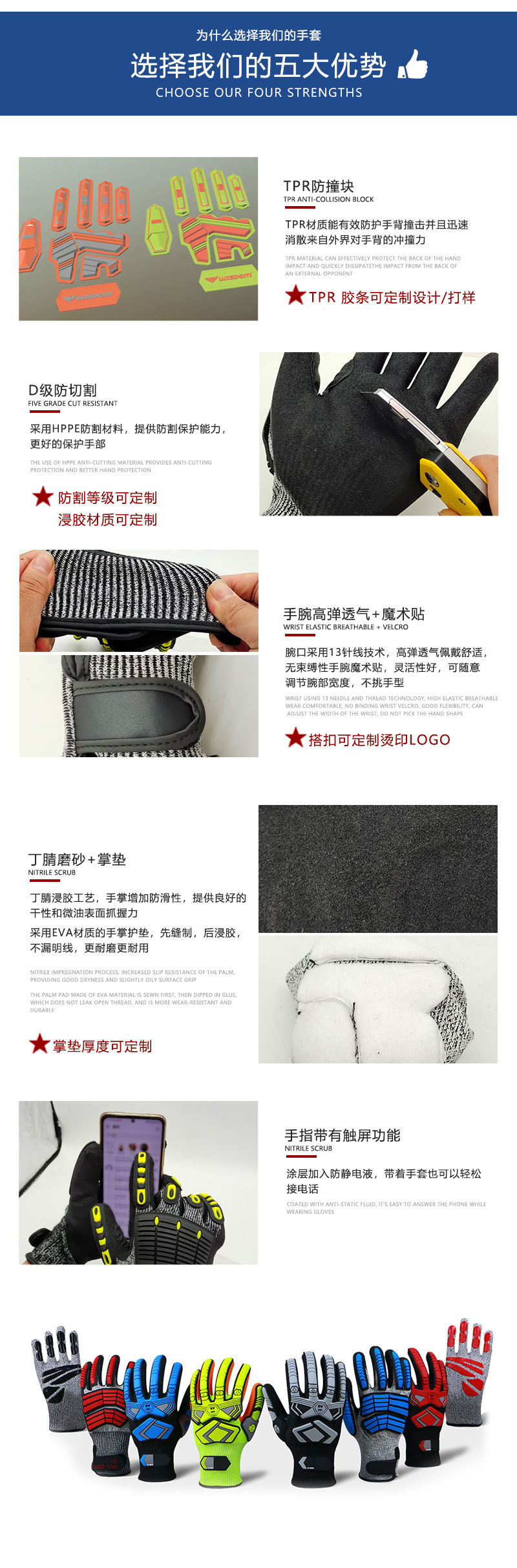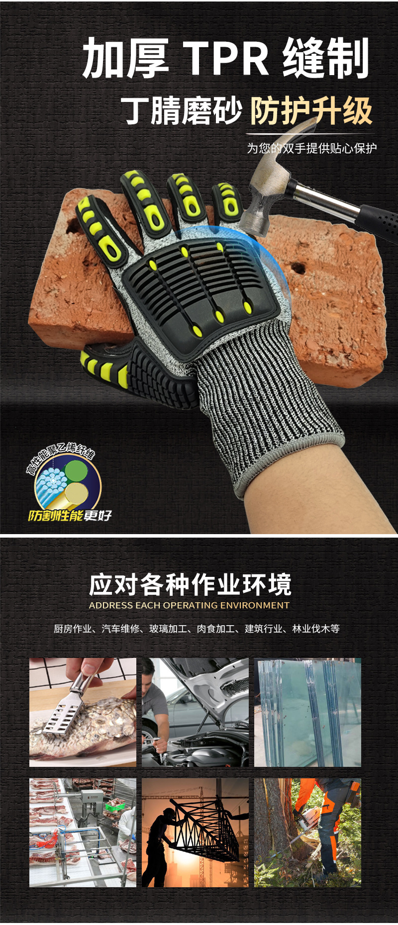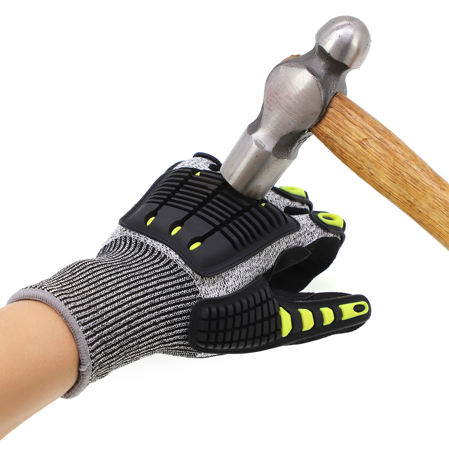 CE 인증 5등급 절단 방지 니트릴 젖빛 코팅 TPR 안티 스매싱, 충격 방지, 충격 방지 및 충돌 방지 기계 장갑 제공