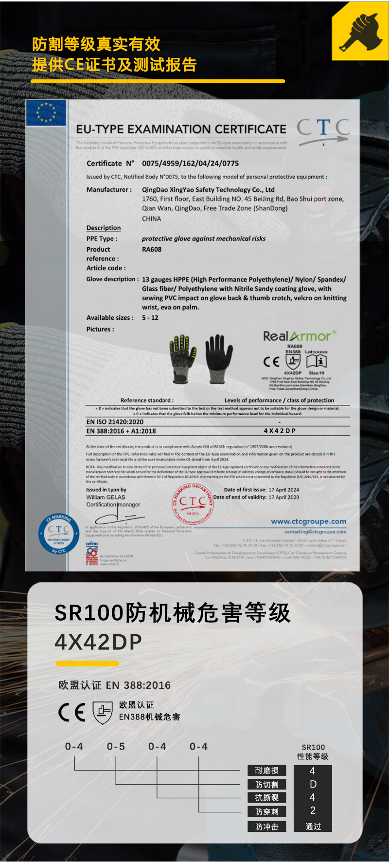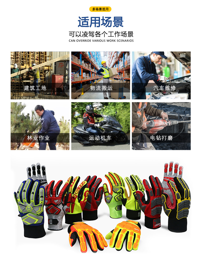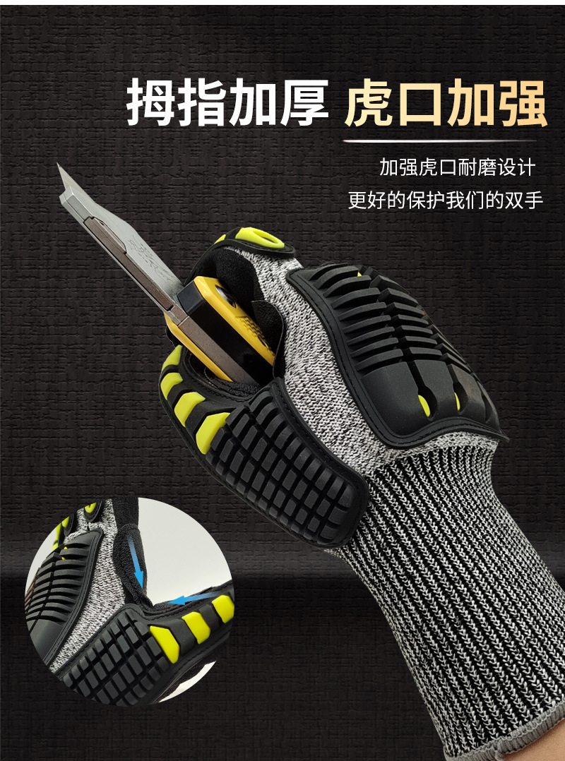 CE 인증 5등급 절단 방지 니트릴 젖빛 코팅 TPR 안티 스매싱, 충격 방지, 충격 방지 및 충돌 방지 기계 장갑 제공