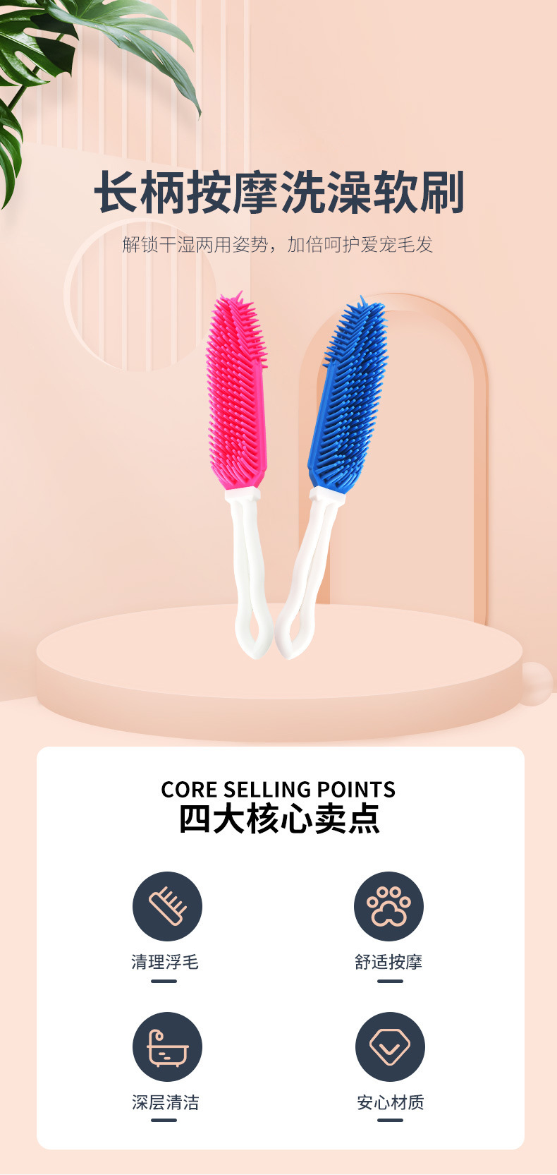 개 목욕 브러시 긴 손잡이 청소 마사지 브러쉬 가구 다기능 긴 머리 제거 브러시 애완 동물 개 목욕
