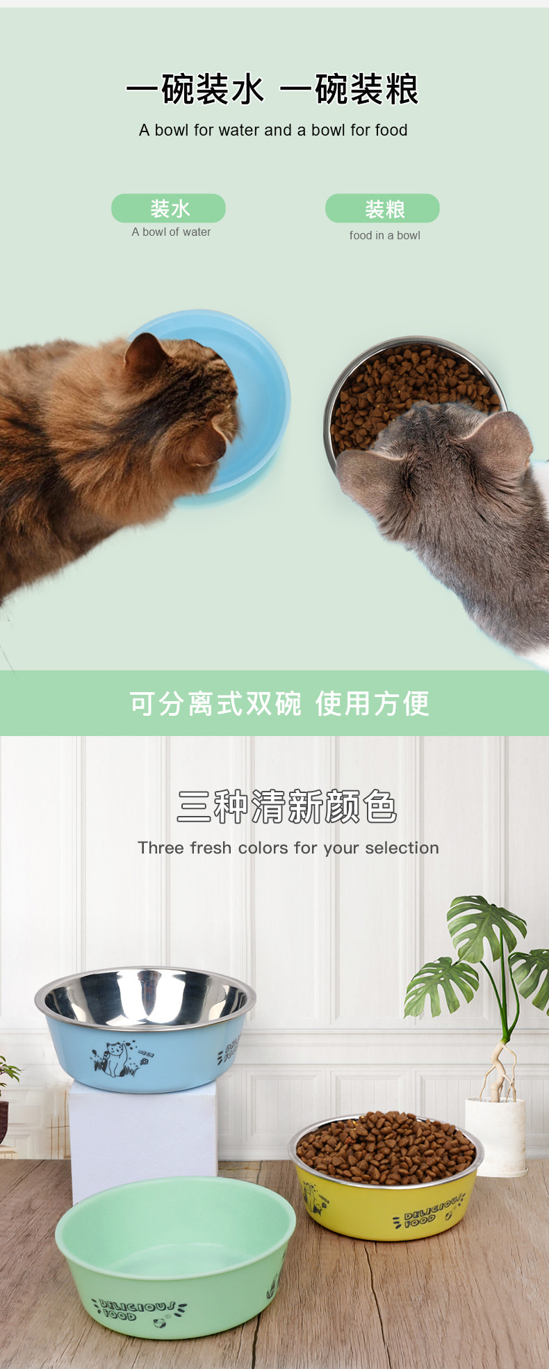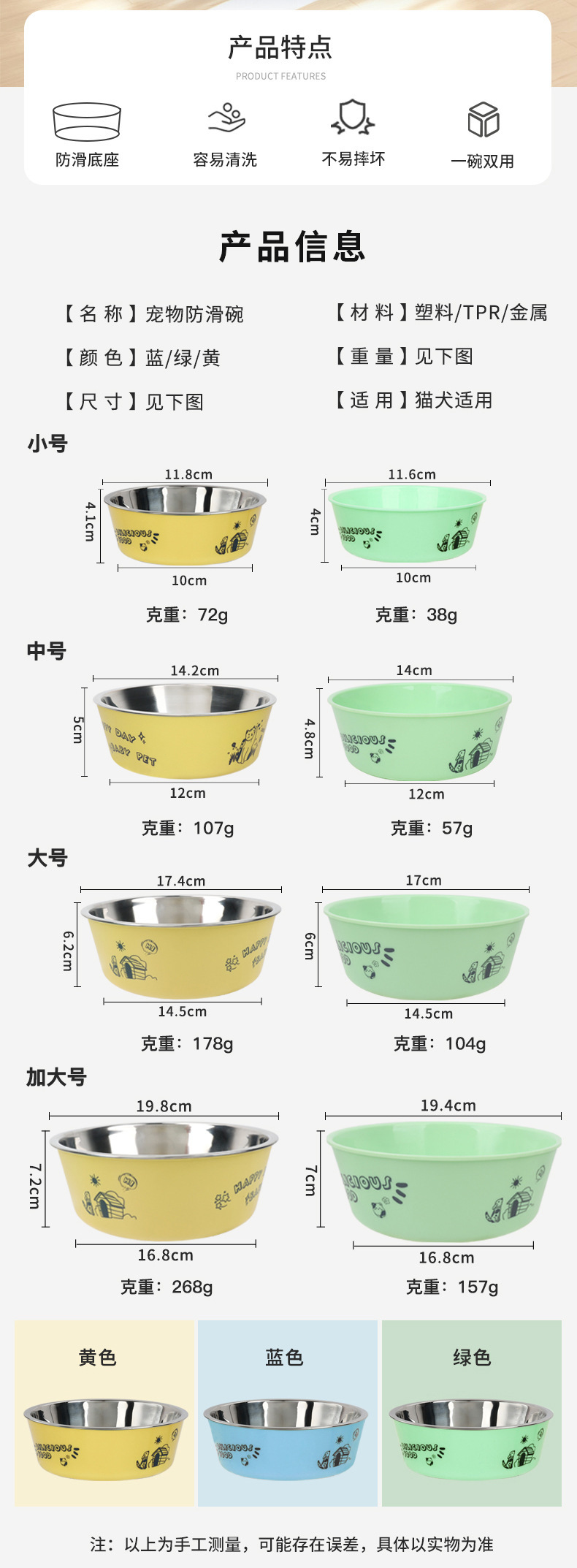반려동물 미끄럼 방지 그릇 강아지 고양이 그릇 이중 그릇 강아지 밥그릇 물그릇 고양이 그릇 넘어짐 방지 도매