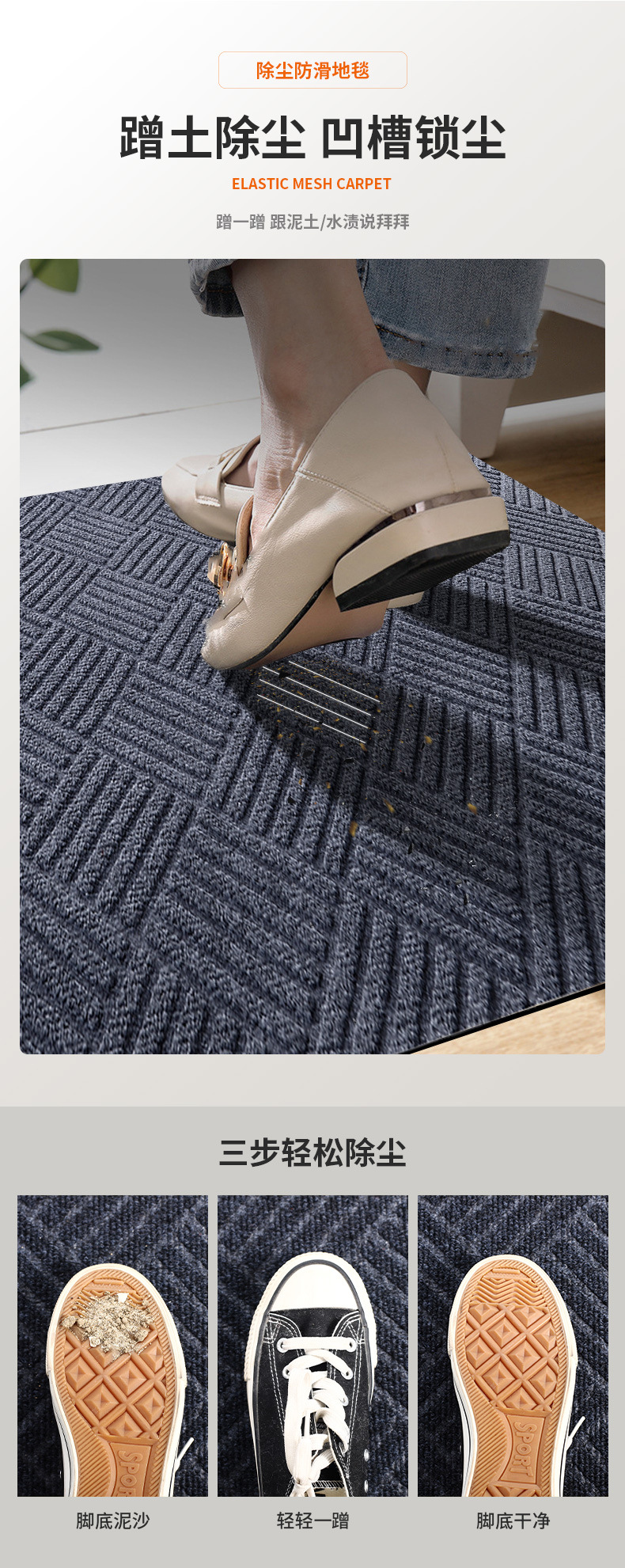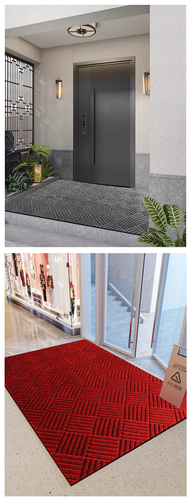 엔트리 도어 용 하이 엔드 다이아몬드 패턴 플로어 매트 내마모성 더러운 가정용 및 빌라 엔트리 도어 용 상업용 미끄럼 방지 풋 매트를자를 수 있습니다.
