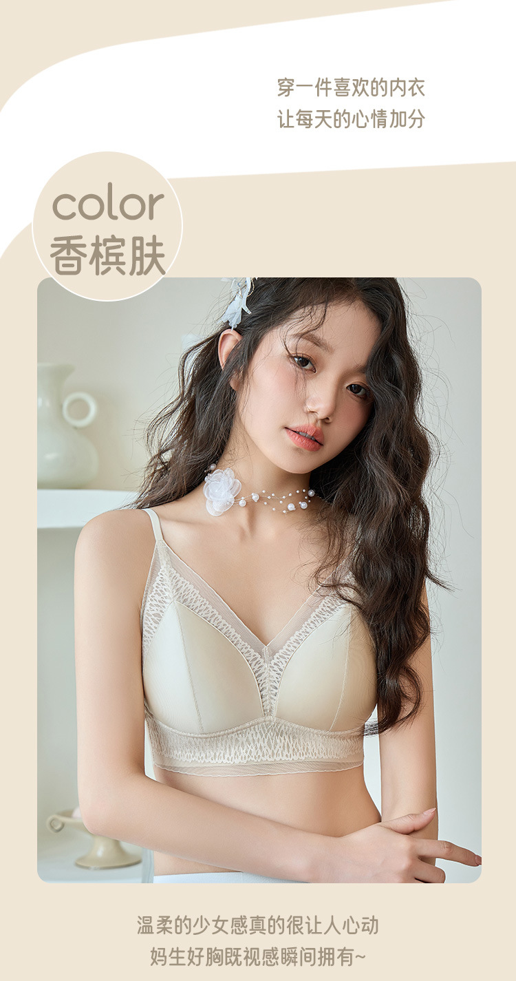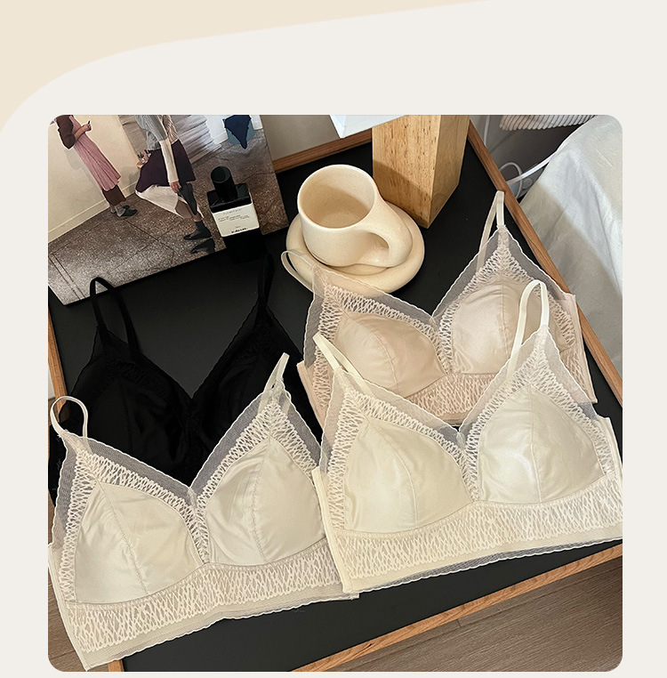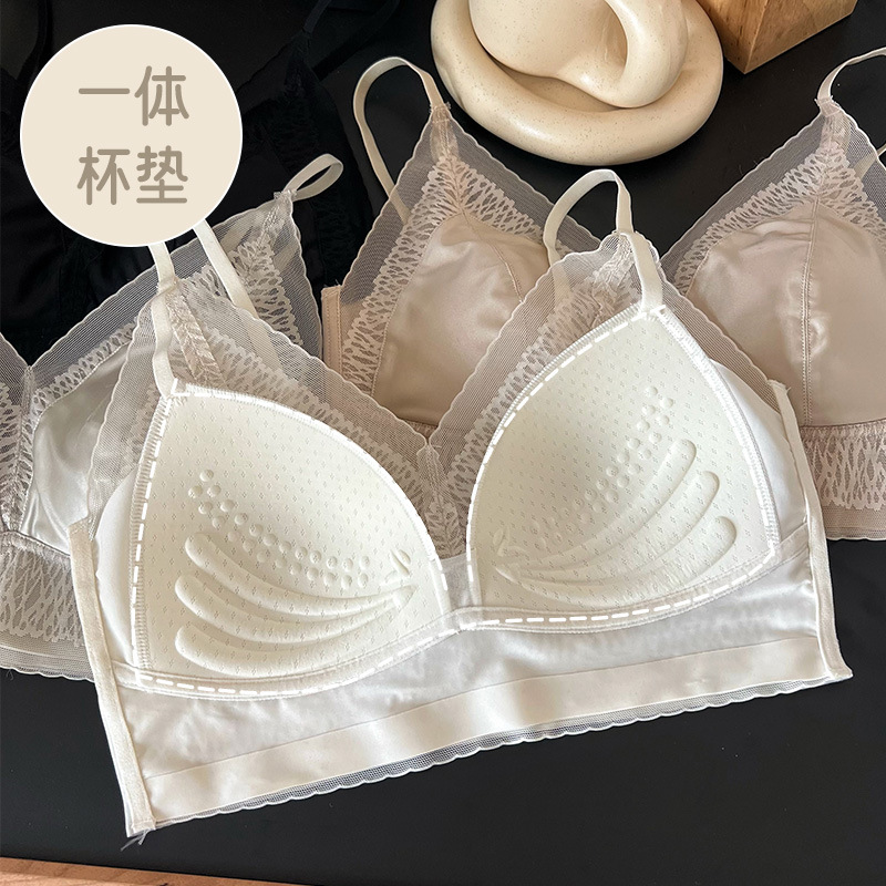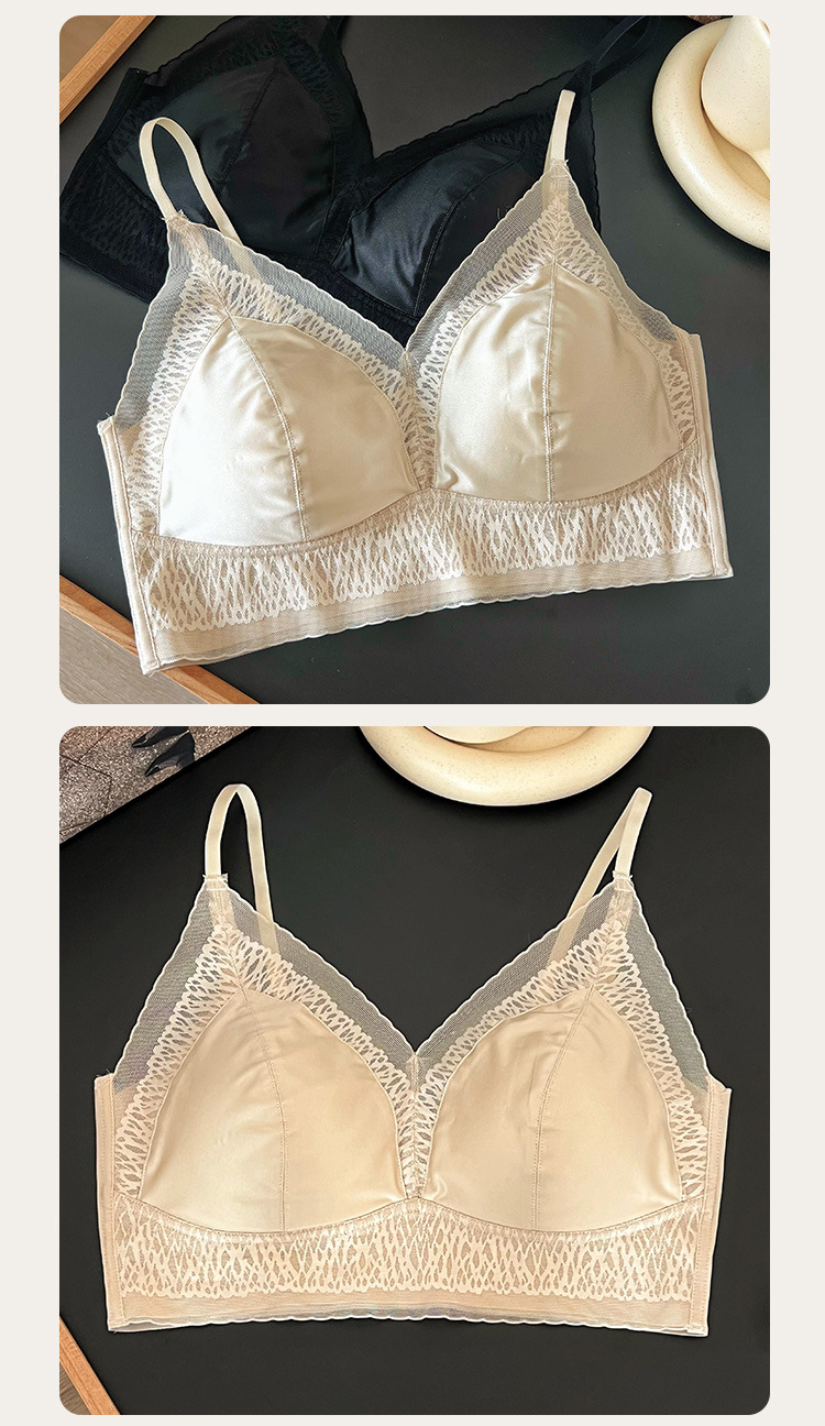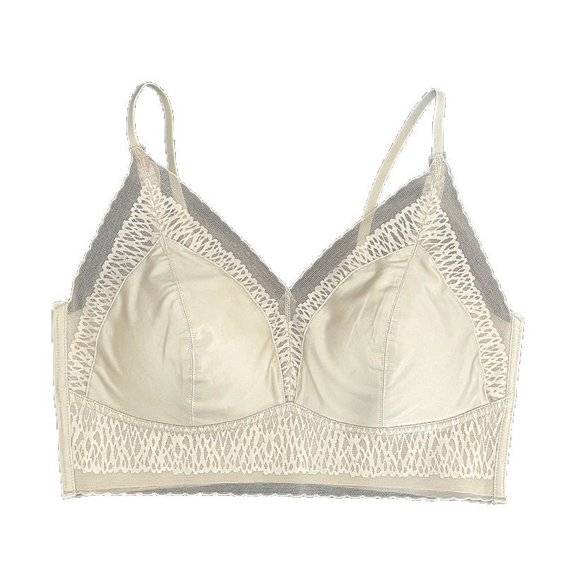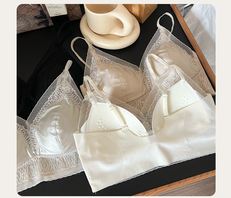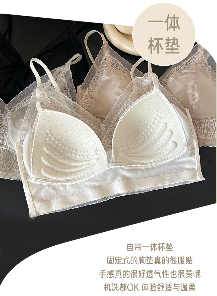 프랑스 진주 빛 새틴 트레이스 레이스 속옷 여성 고정 컵 푸시업 라이트 럭셔리 우아한 얇은 어깨 랩 브라