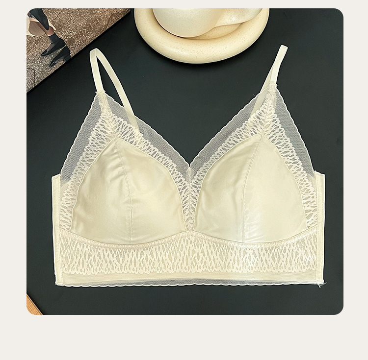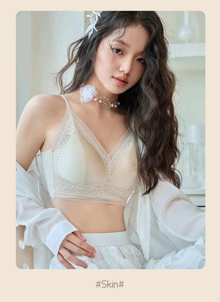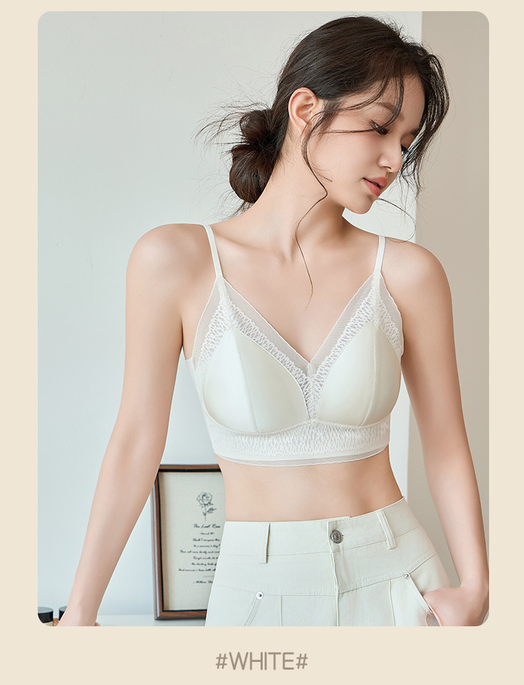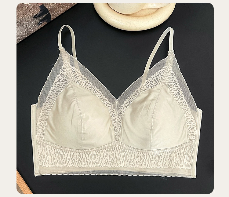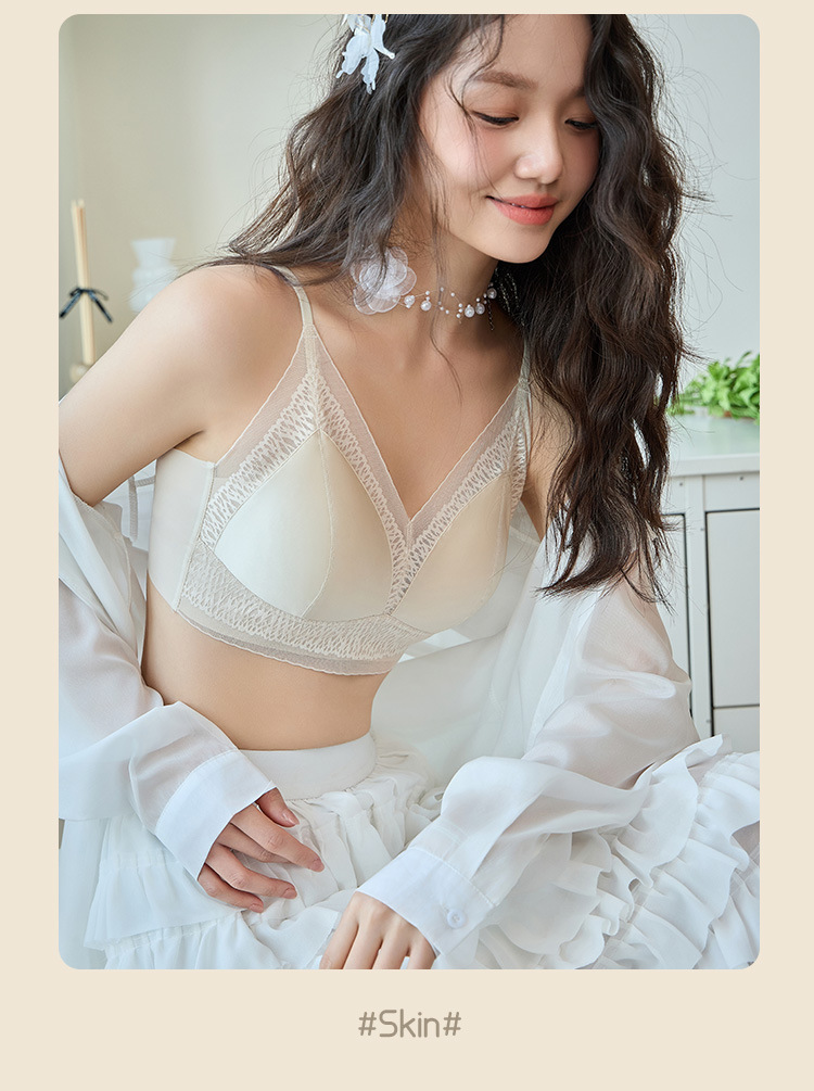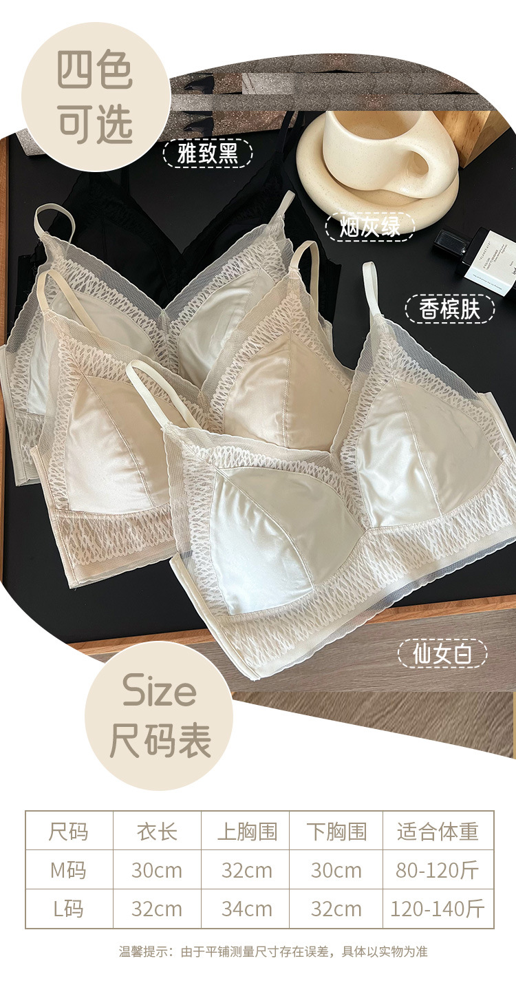 프랑스 진주 빛 새틴 트레이스 레이스 속옷 여성 고정 컵 푸시업 라이트 럭셔리 우아한 얇은 어깨 랩 브라