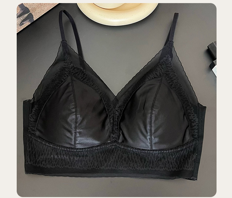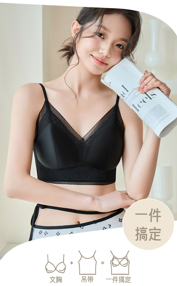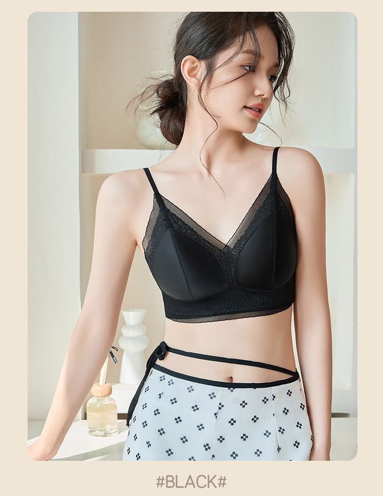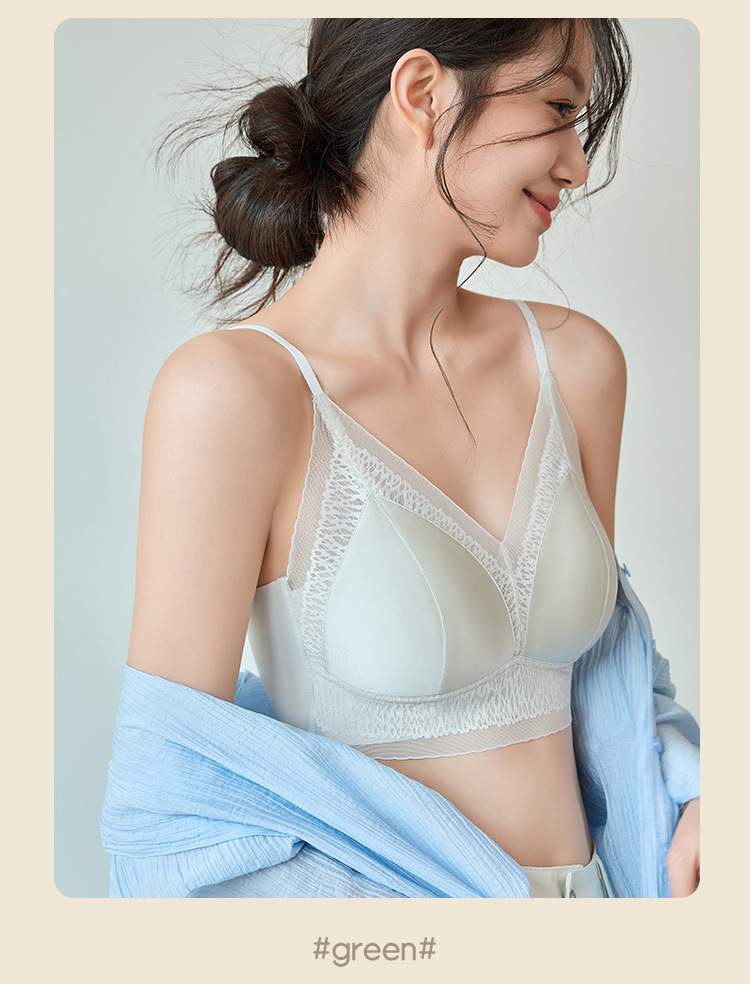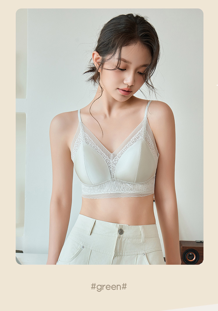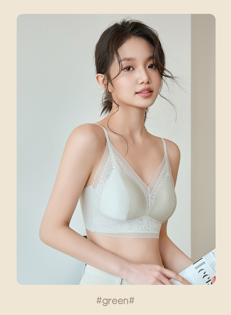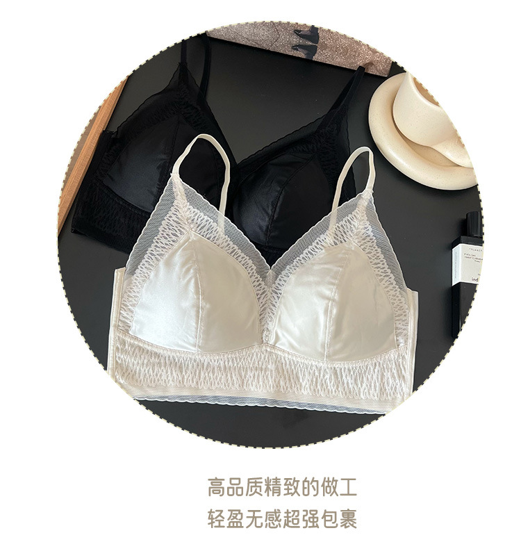 프랑스 진주 빛 새틴 트레이스 레이스 속옷 여성 고정 컵 푸시업 라이트 럭셔리 우아한 얇은 어깨 랩 브라