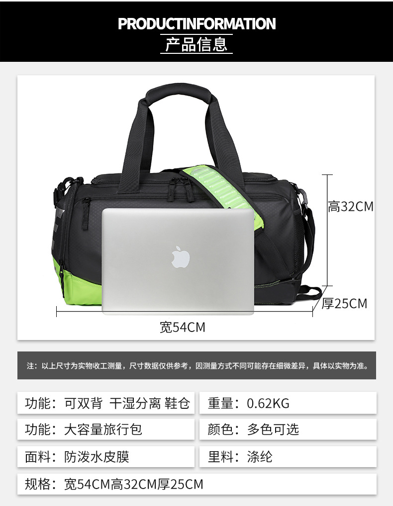 스포츠 피트니스 가방 남자와 여자의 대용량 방수 농구 훈련 가방 건조하고 젖은 분리 에어 쿠션 크로스 바디 스포츠 여행 가방