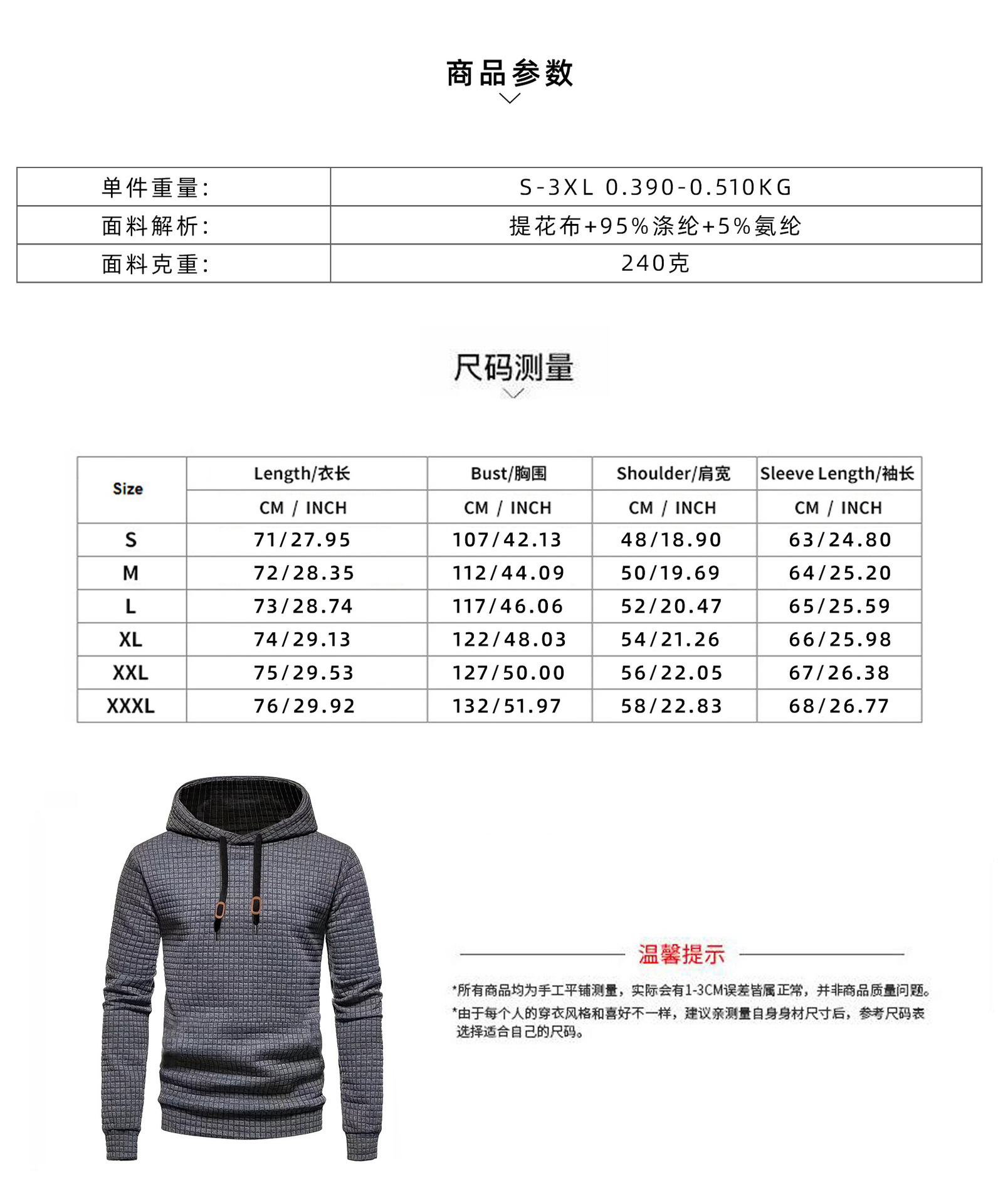 \单件(套)净重:S:397g,M:418g,L:435g,XL:477g,2XL:492g,3XL:515g