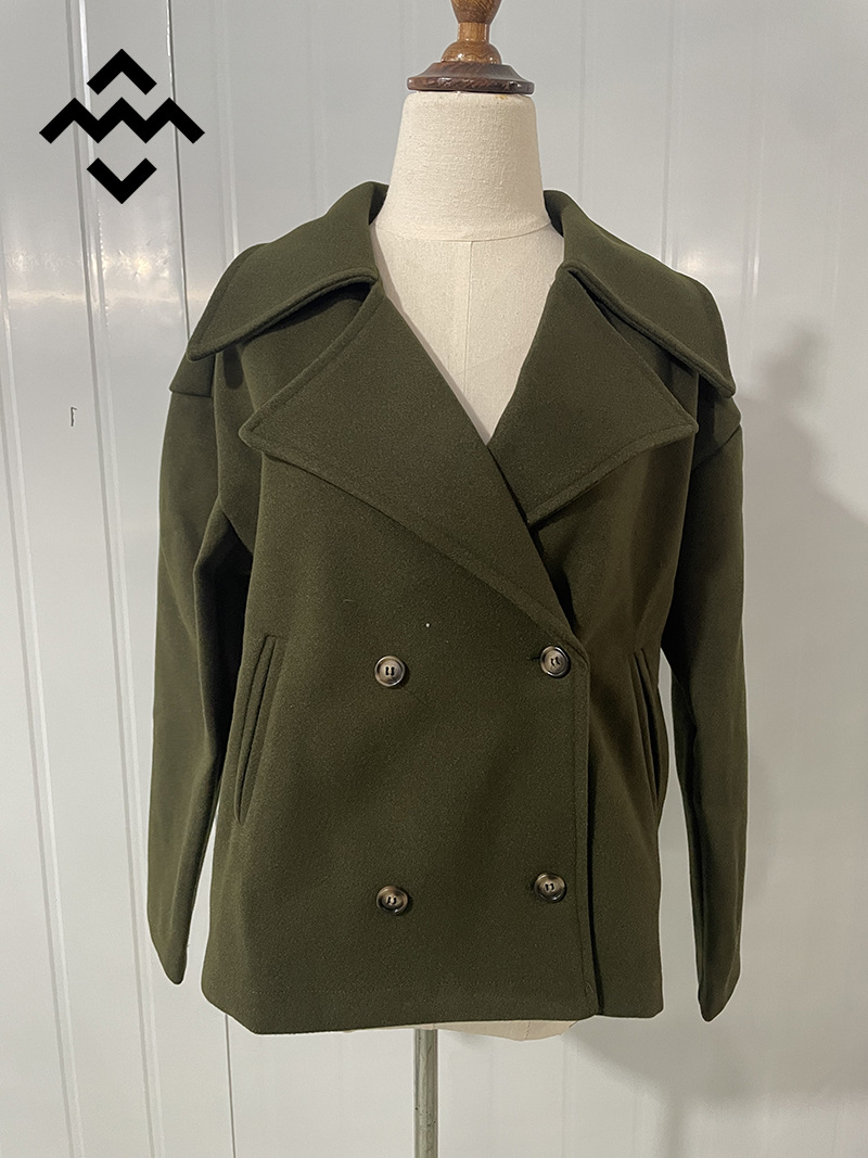 2025 가을 새로운 유럽과 미국 스타일의 여성 패션 기질 통근 칼라 더블 브레스트 짧은 모직 코트