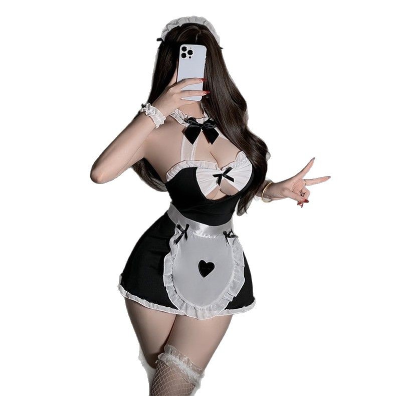 블랙 메이드 복장 + 블랙 무릎 위 망사 스타킹