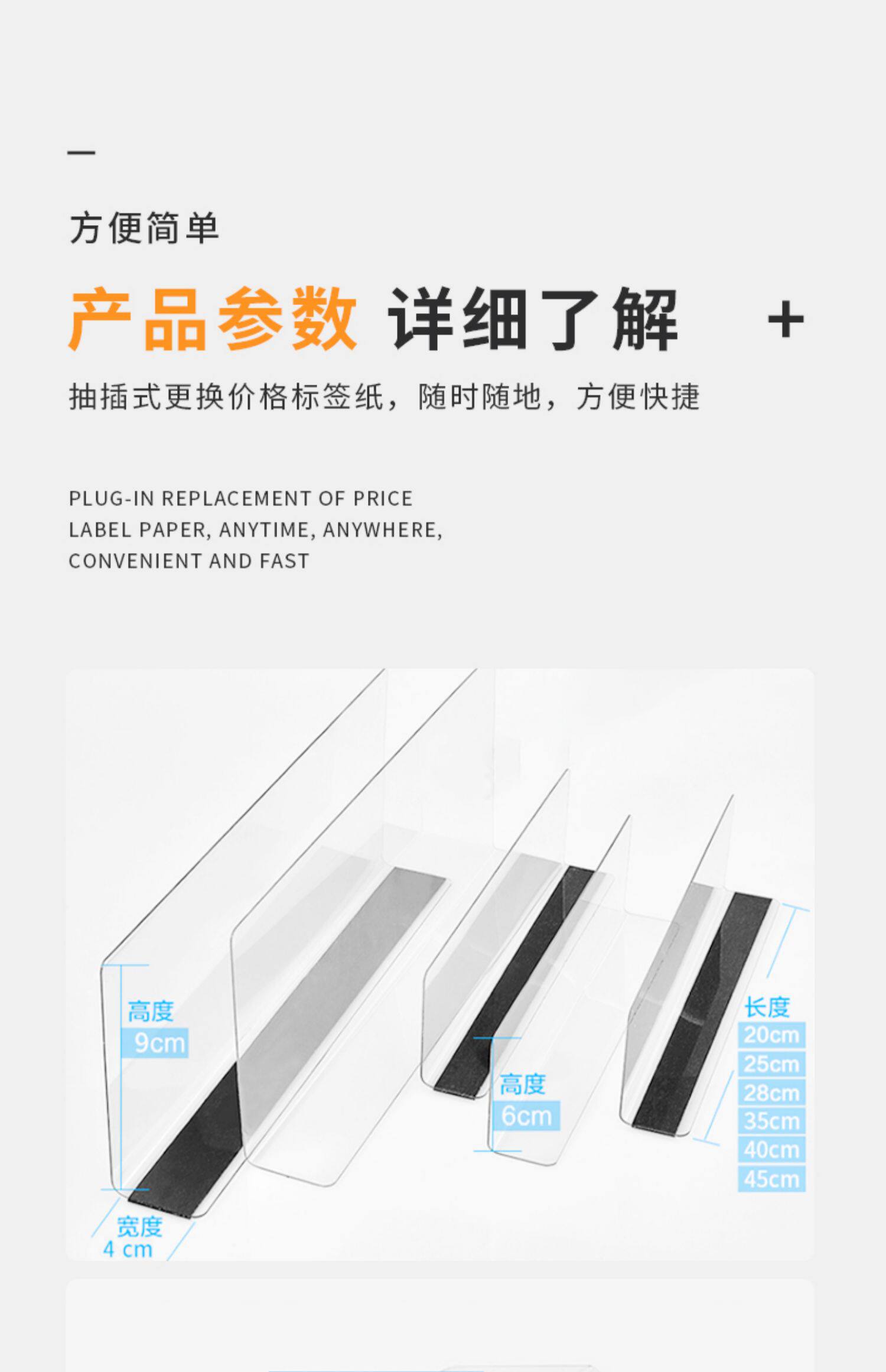 슈퍼마켓 선반 파티션 플레이트 마그네틱 배플 L 자형 투명 아크릴 플레이트 탈리 아티팩트 편의점 상품 파티션