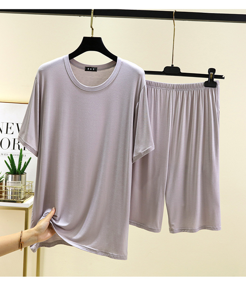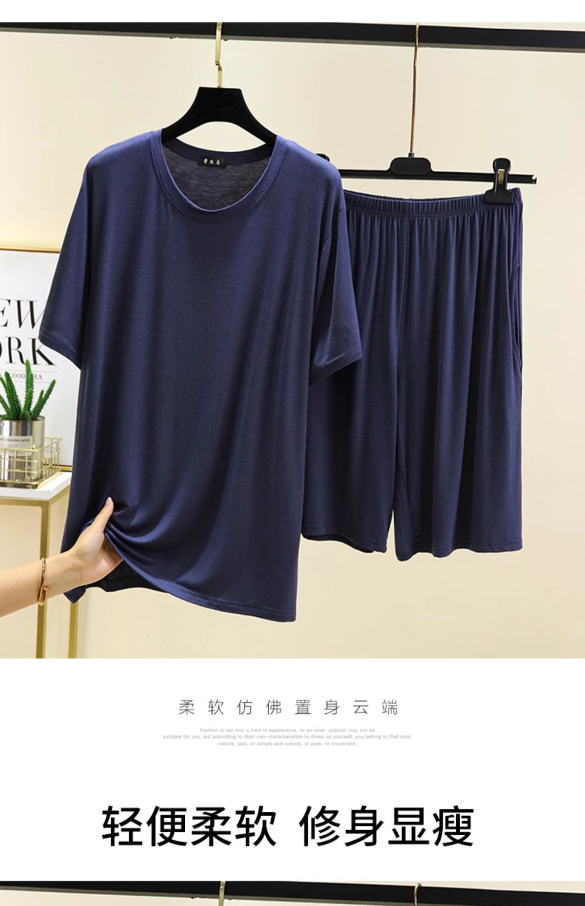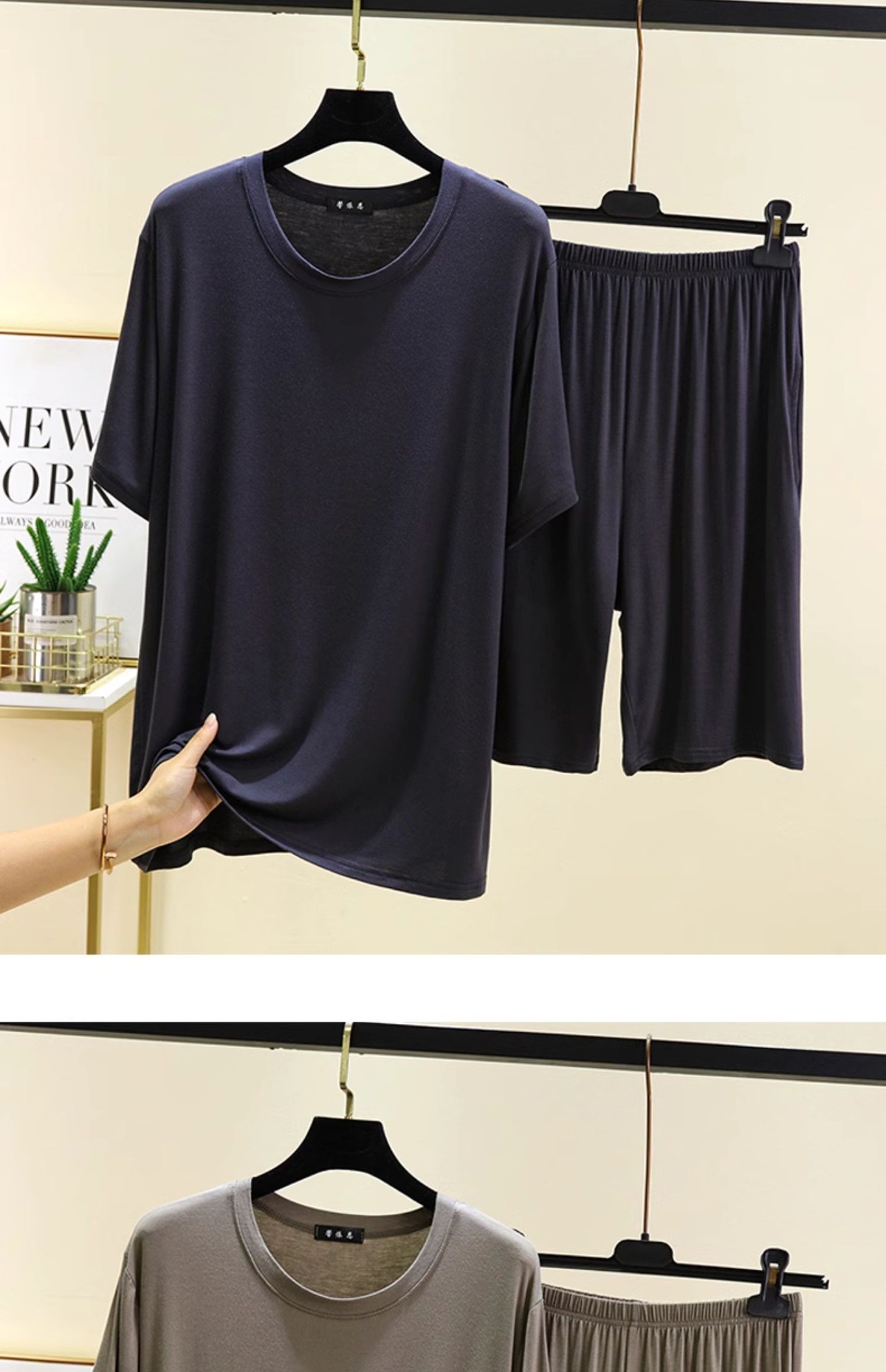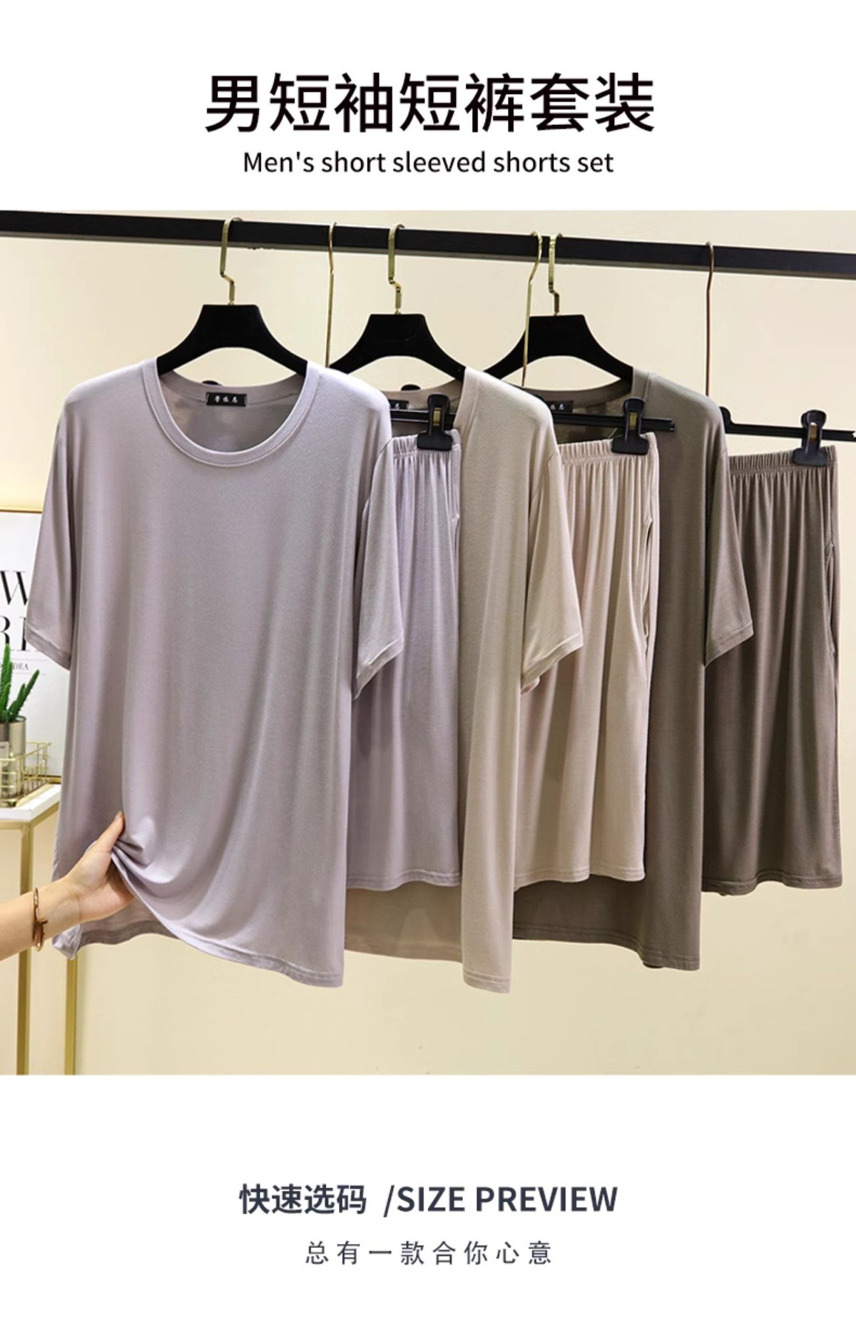 남성용 모달 잠옷 세트 느슨한 얇은 플러스 사이즈 홈 의류 반팔 반바지 투피스 캐주얼 여름