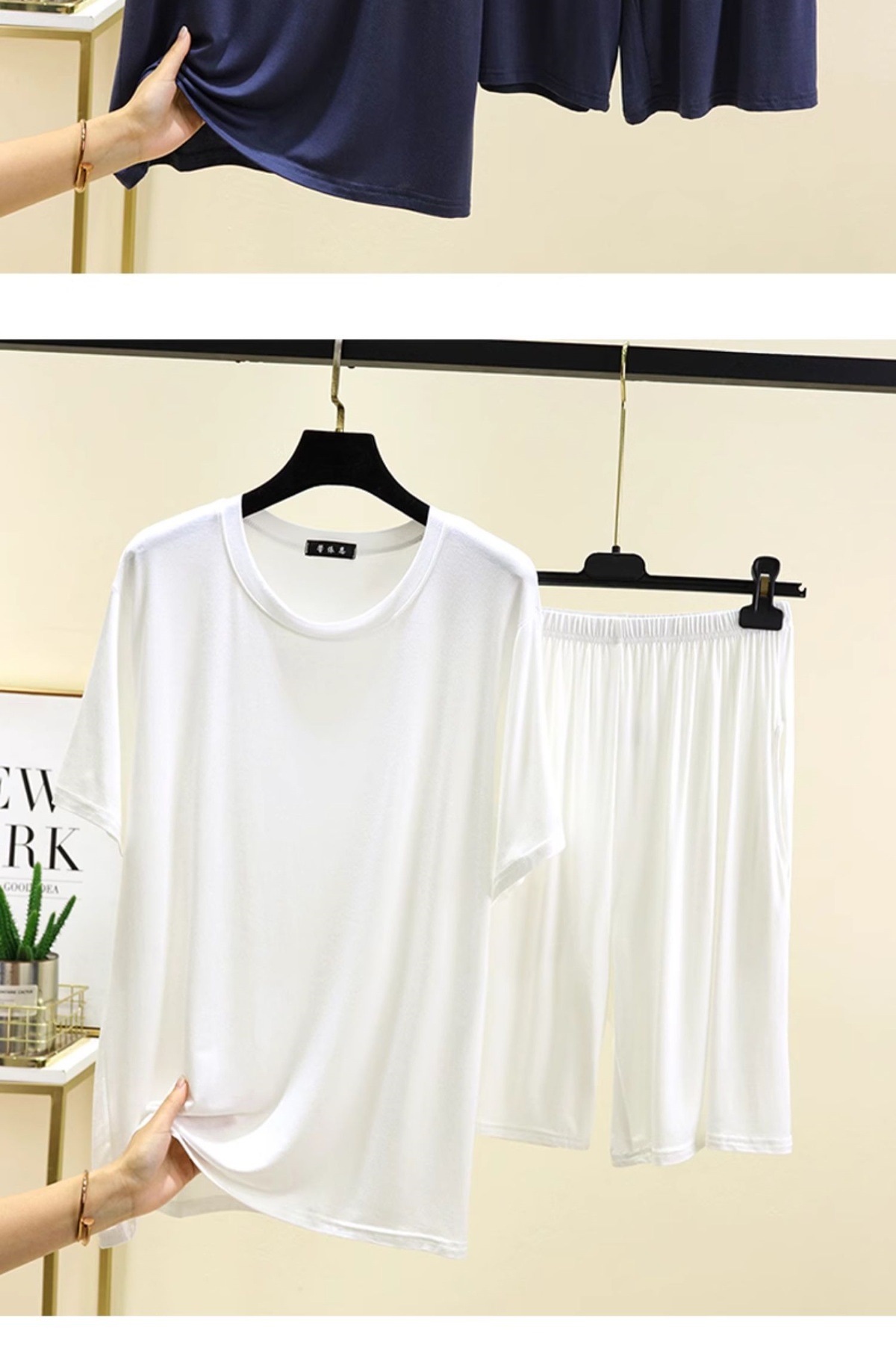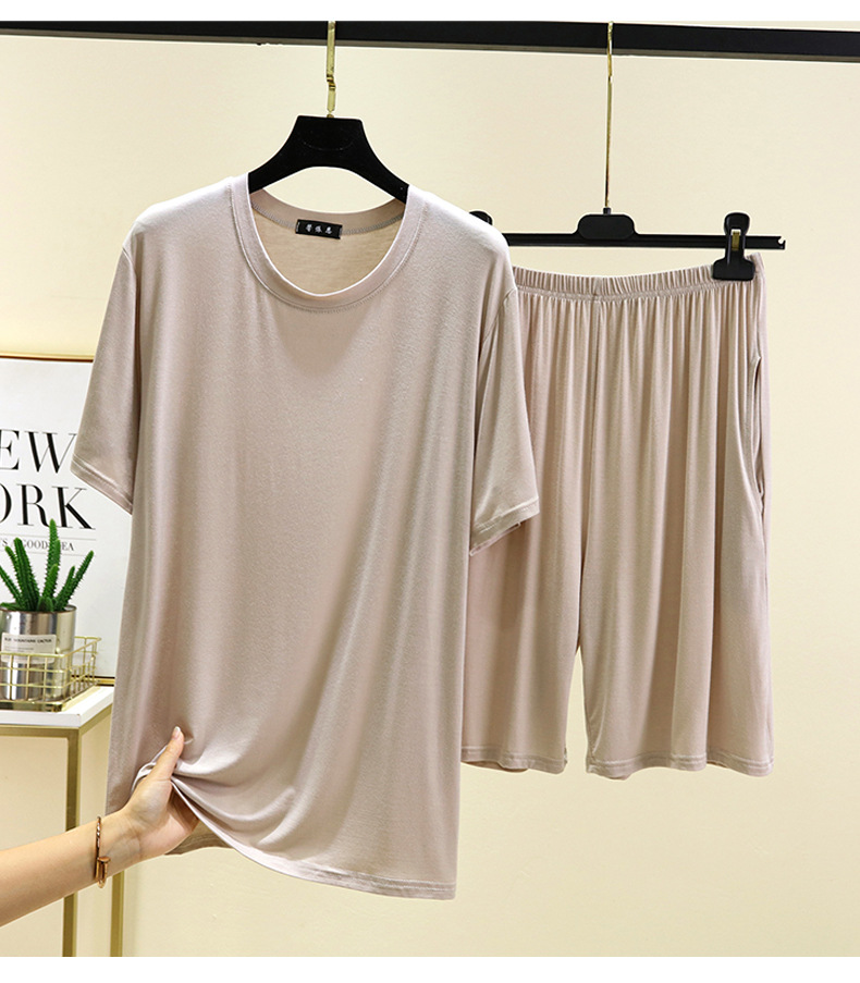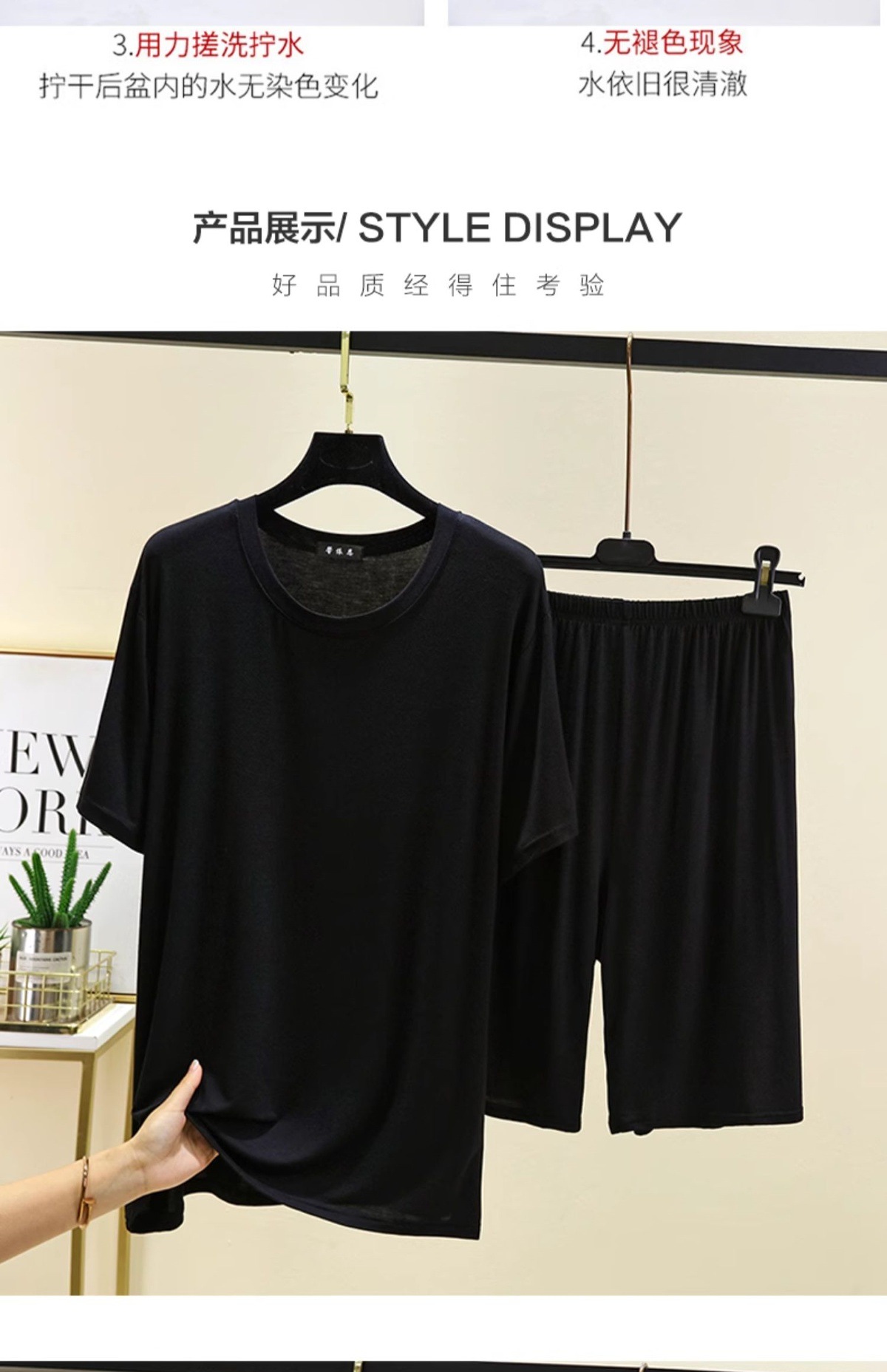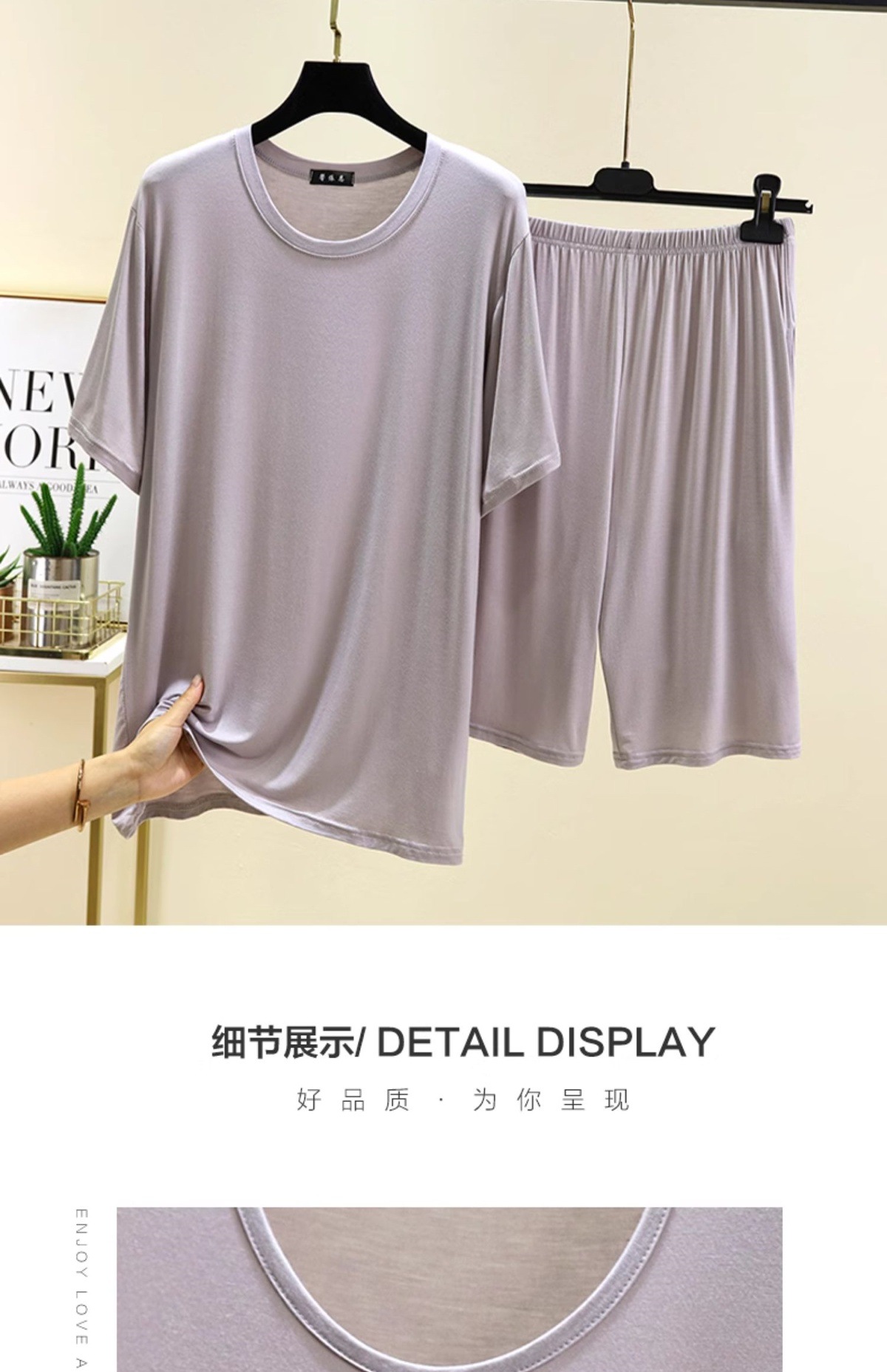 남성용 모달 잠옷 세트 느슨한 얇은 플러스 사이즈 홈 의류 반팔 반바지 투피스 캐주얼 여름