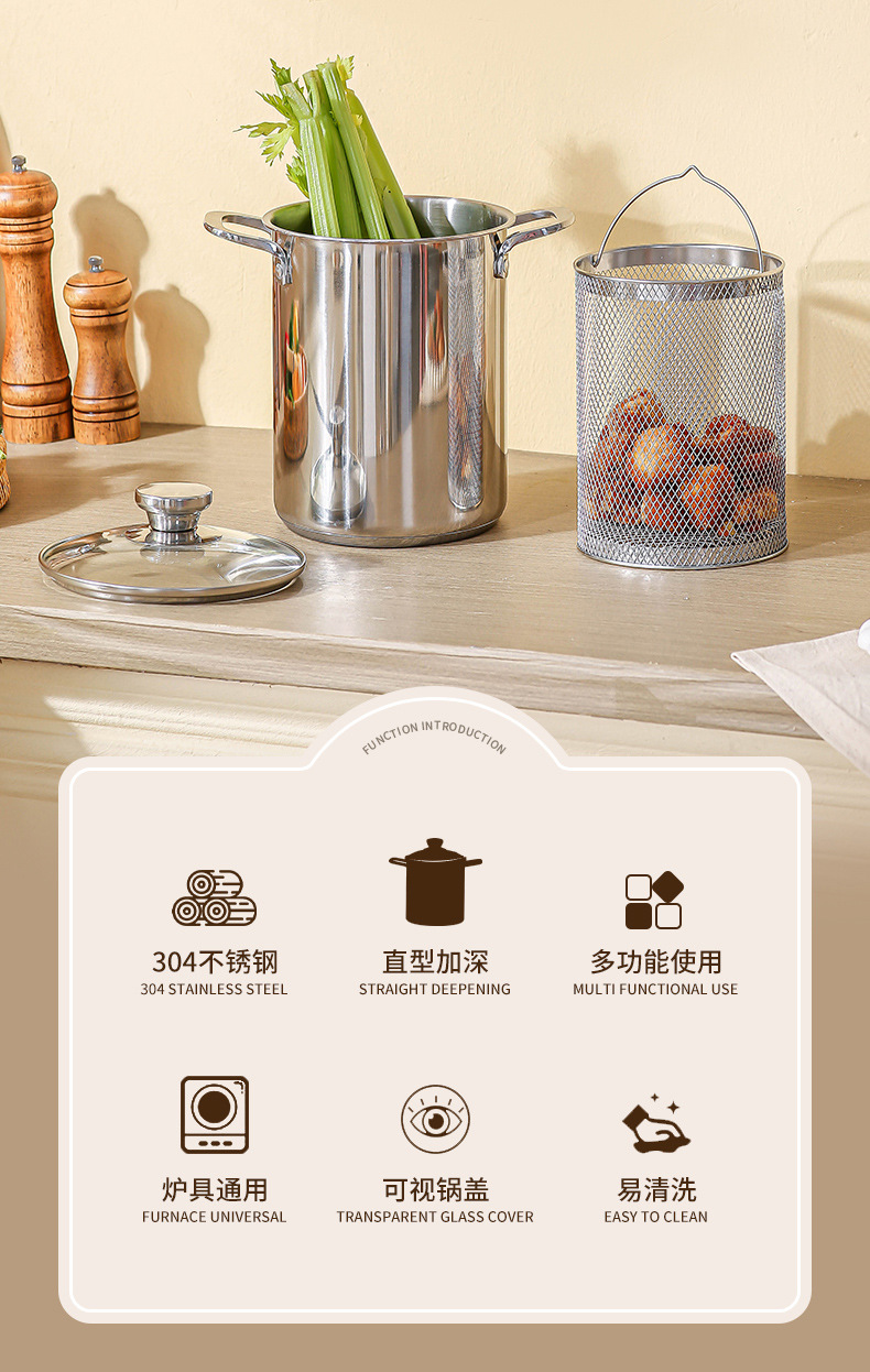 304 스테인레스 스틸 온도 조절 소금물 냄비, 호텔 주방용 국물 냄비, 가정용 튀김 가스 오일 냄비, 수프 요리, 환경 친화적