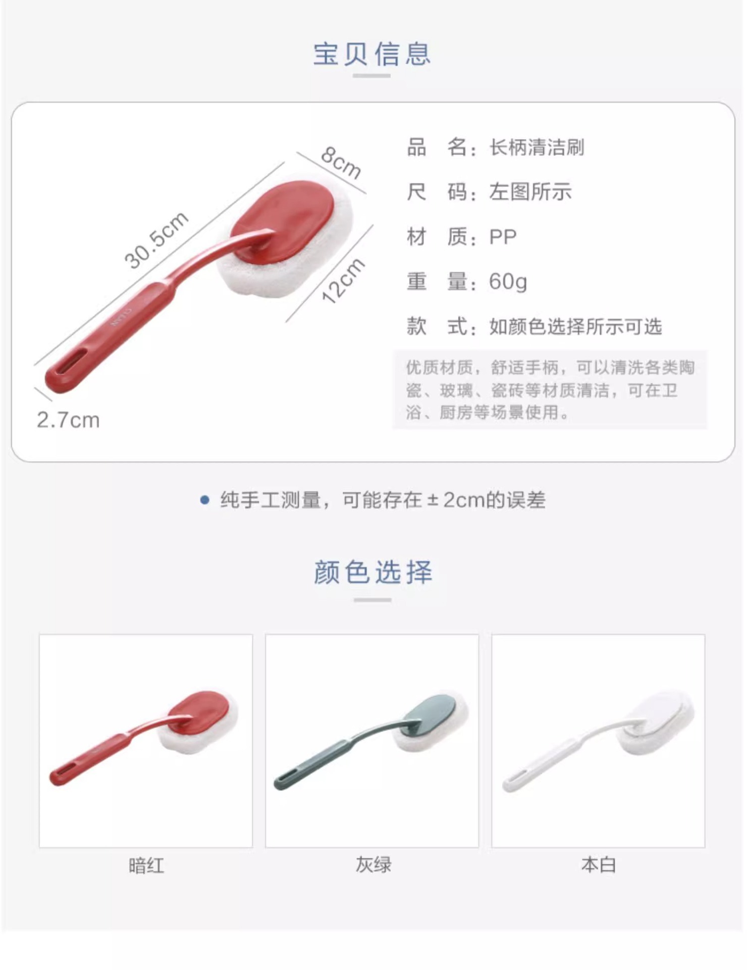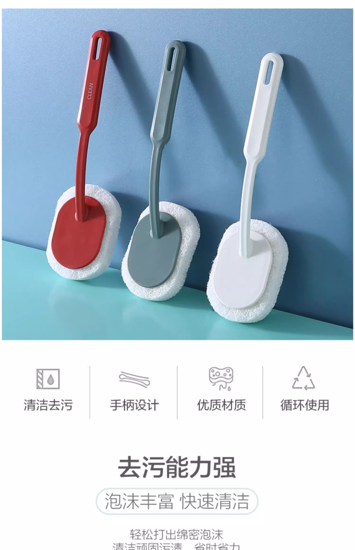 긴 손잡이 스펀지 브러시 화장실은 두꺼운 스크러링 패드 목욕 브러시 욕실 바닥 타일 먼지 청소 브러시