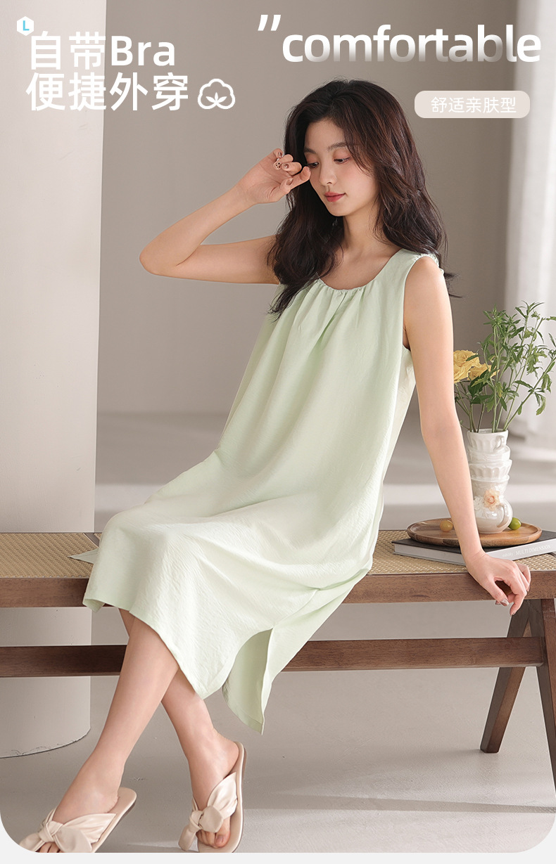 여성용 잠옷 여름 거즈 민소매 조끼형 잠옷 가슴 패드와 끈이 있는 잠옷 여름 2026 신상품 제조업체 도매