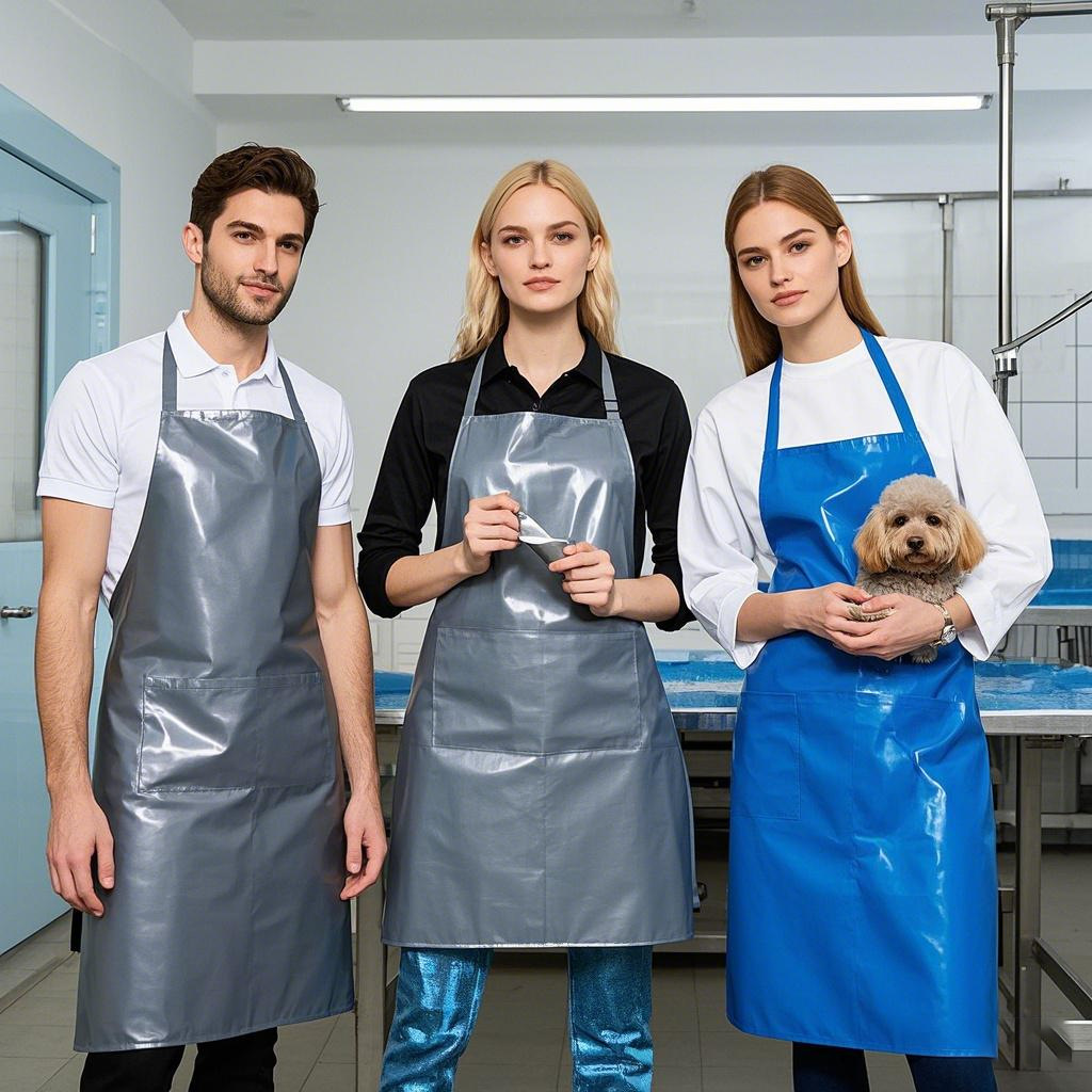TPU 방수 오일 저항성 산 및 알칼리 저항성 앞치마 내마모성 도살 수생 매통 닭 죽이는 부드러운 피부 얇은 흰색과 파란색
