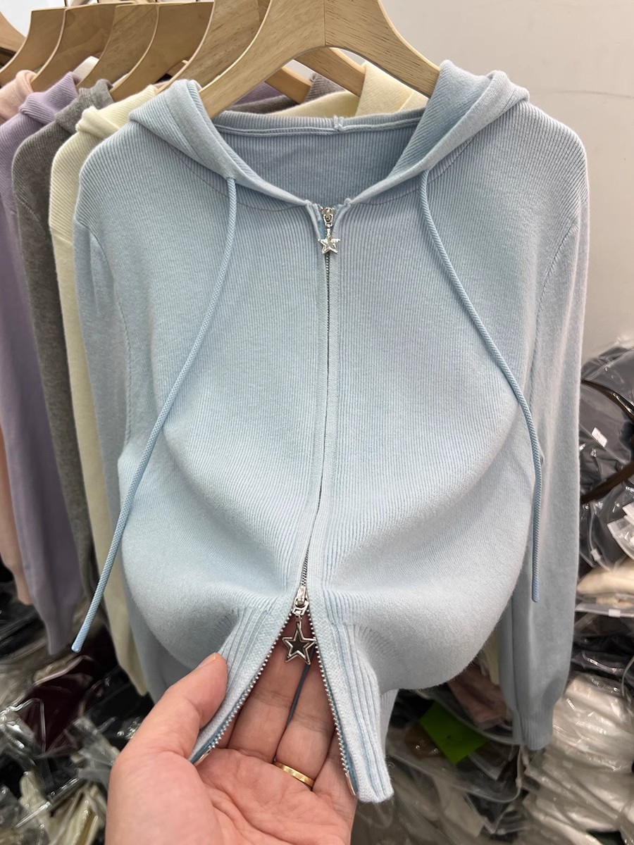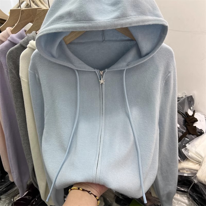 더블 지퍼 긴팔 니트 가디건 여성 상의 2026년 초봄 신상 캐주얼 스타일리쉬 아우터 후드 스웨터