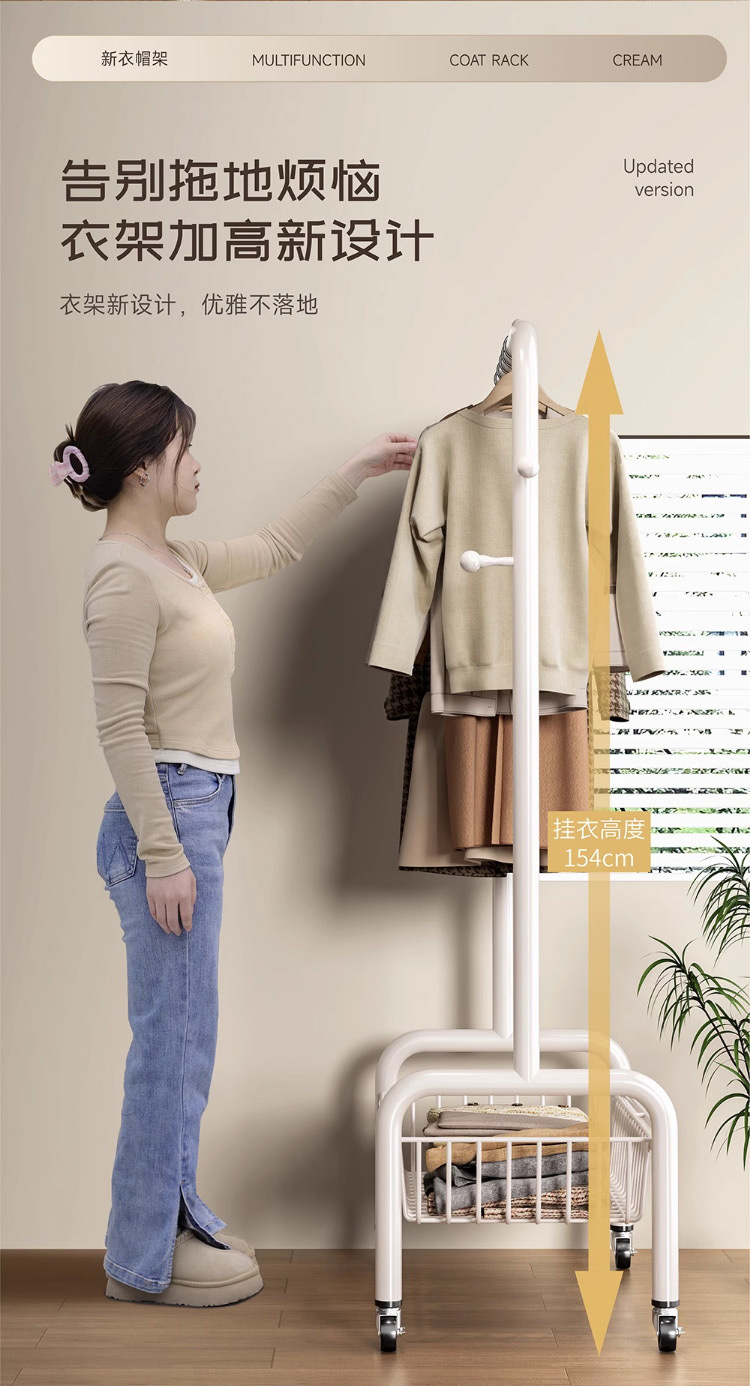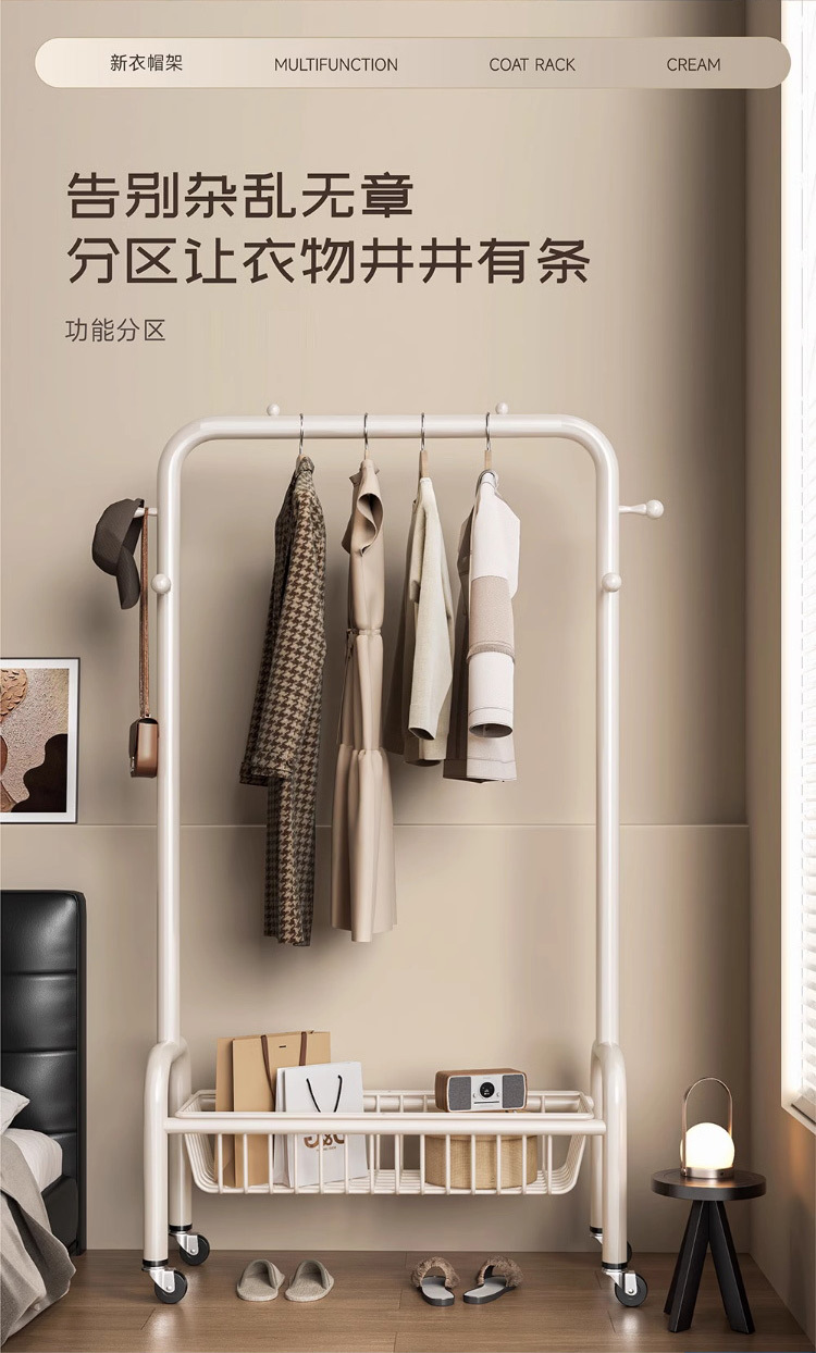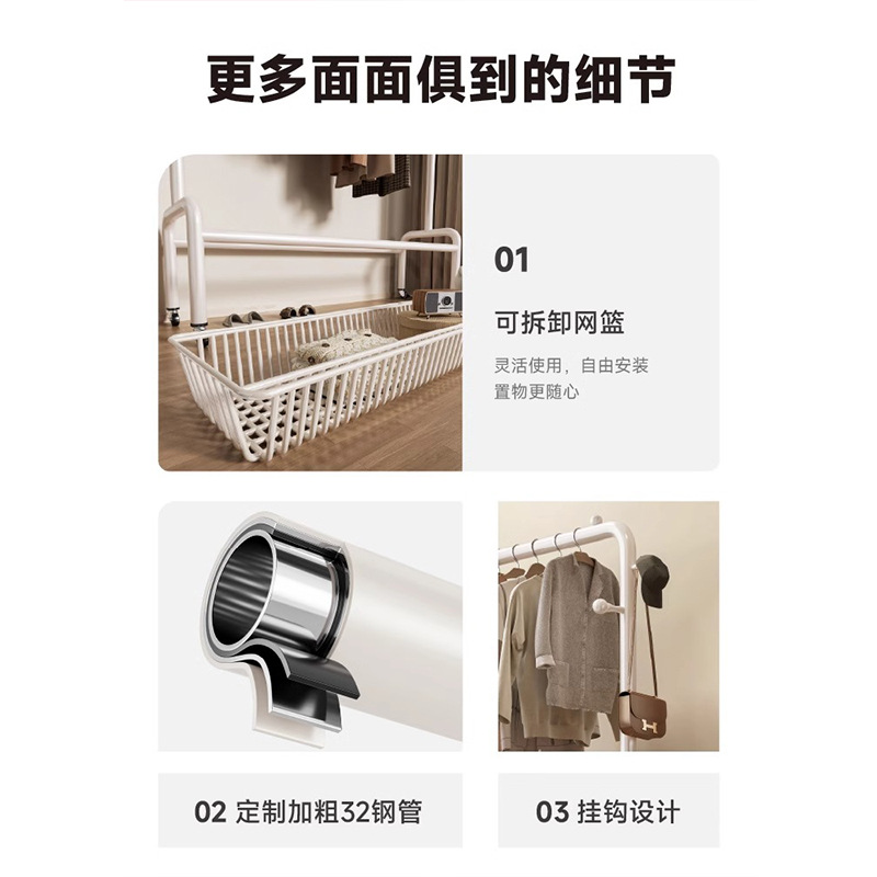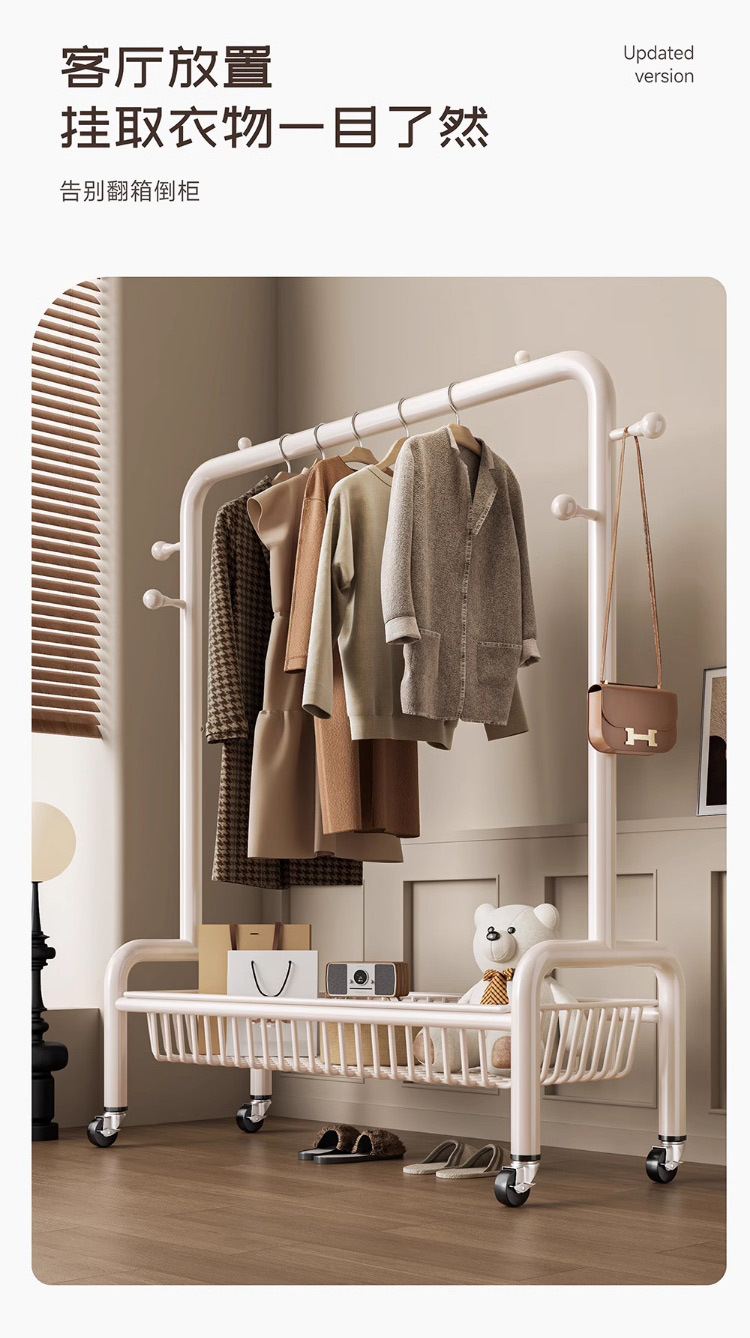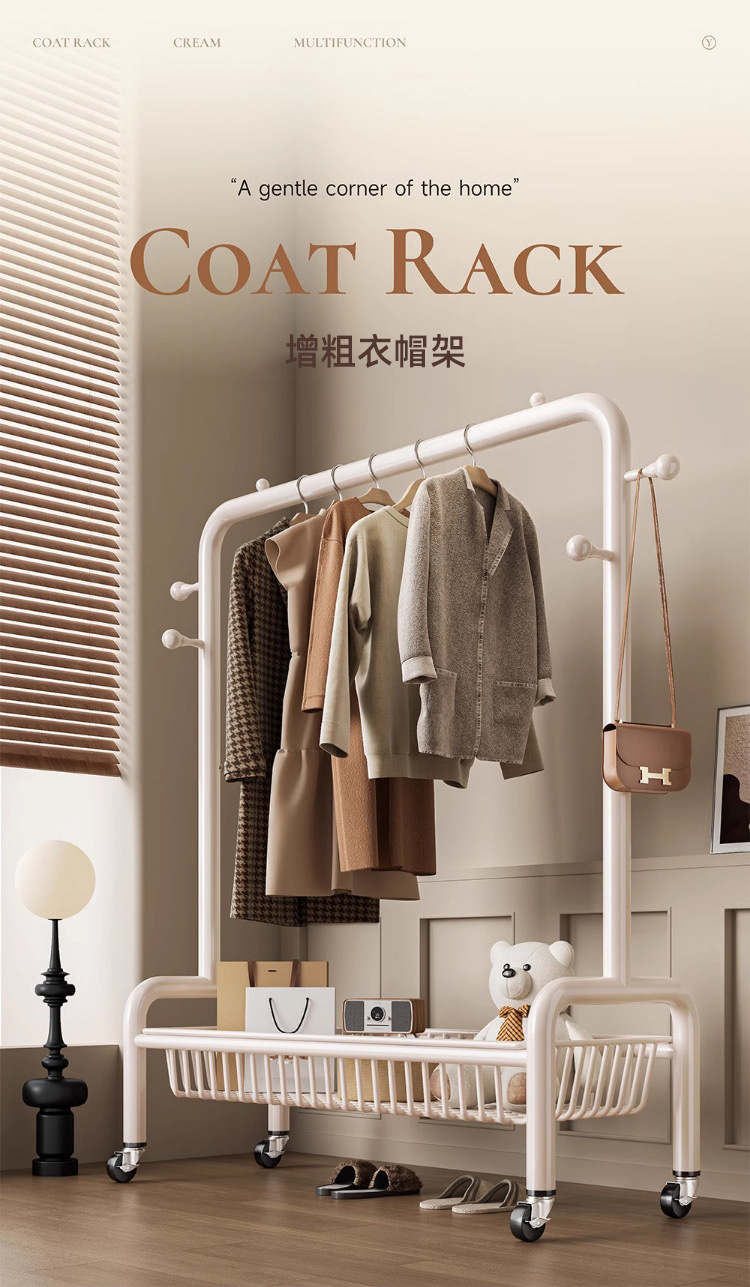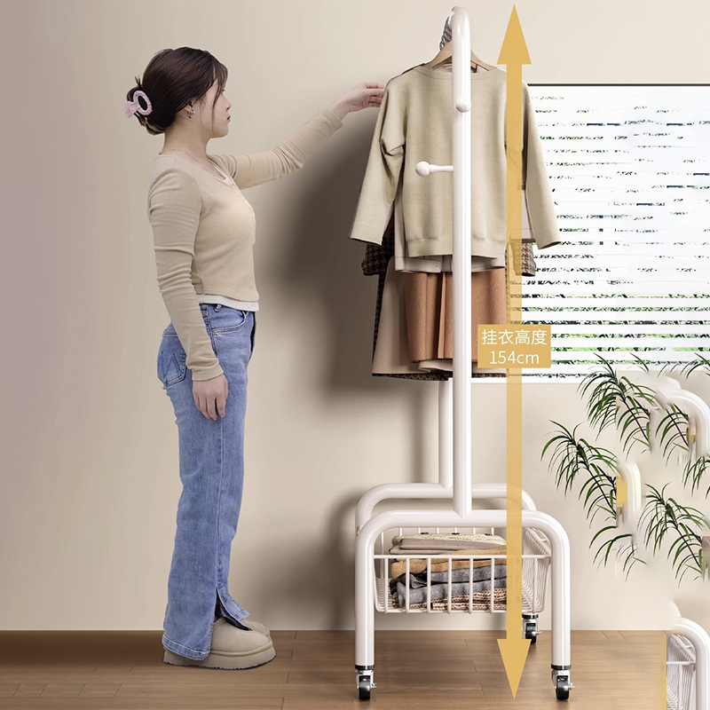 굵은 바닥 걸이 침실 가구 발코니 건조 랙 간단한 바람 바퀴 달린 모바일 의류 교수형 옷 코트 랙