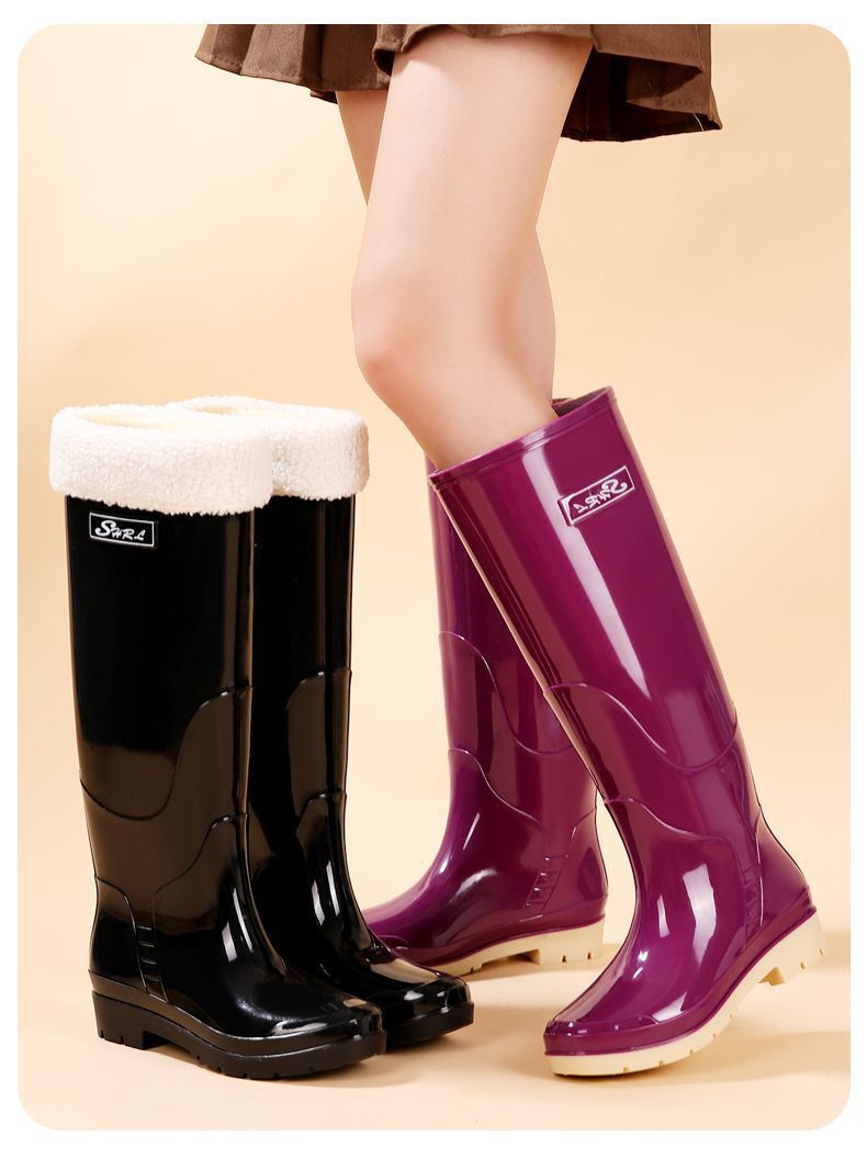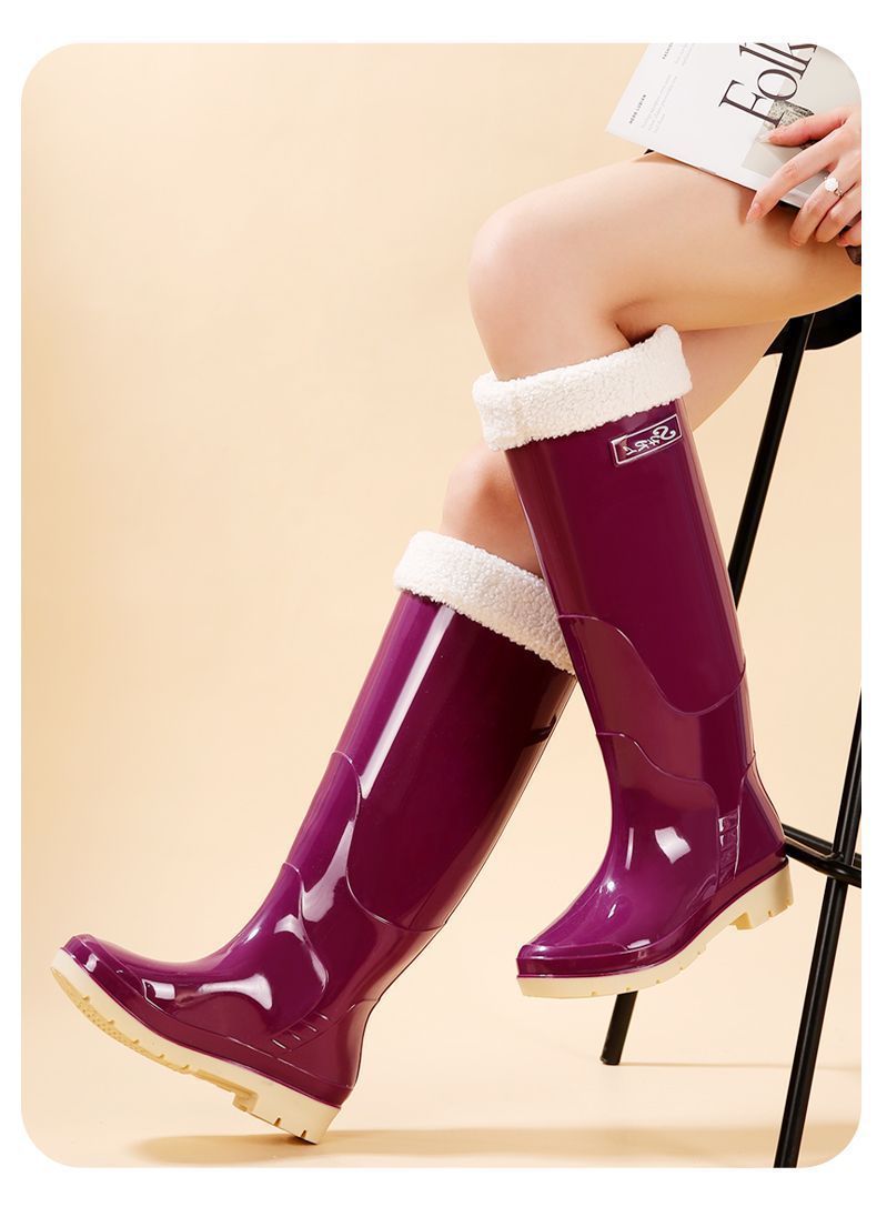 겨울 무릎 부츠 장화 여성용 라인드 성인 여성 패션 초고 장화 주방 두꺼운 노동 보호 고무 신발 미끄럼 방지