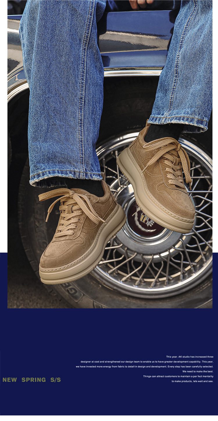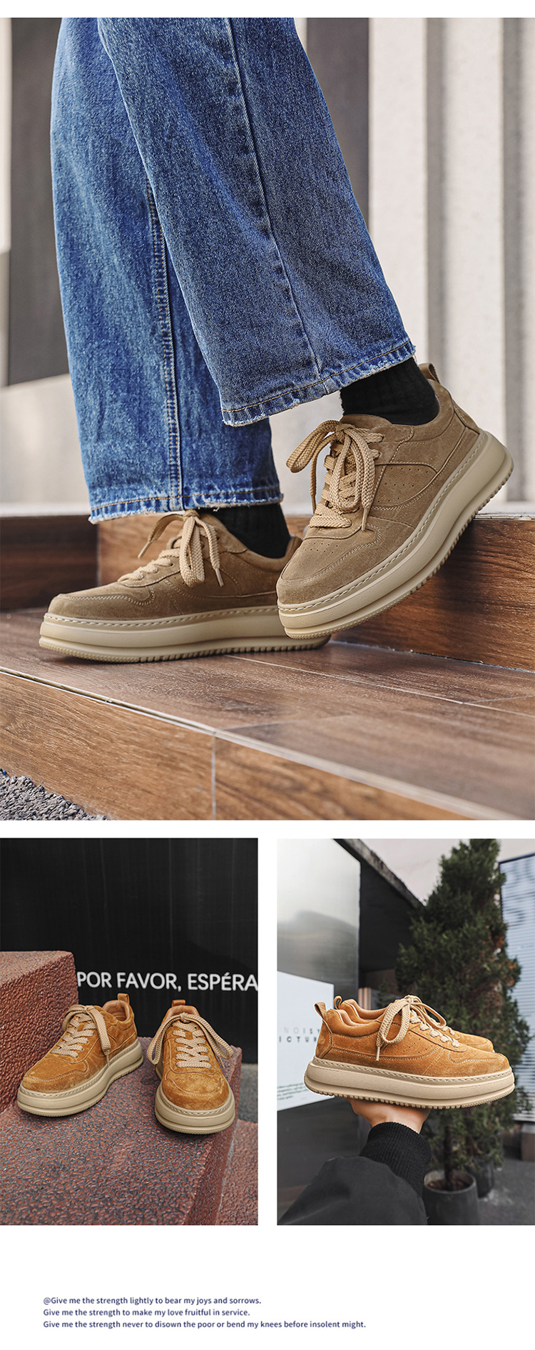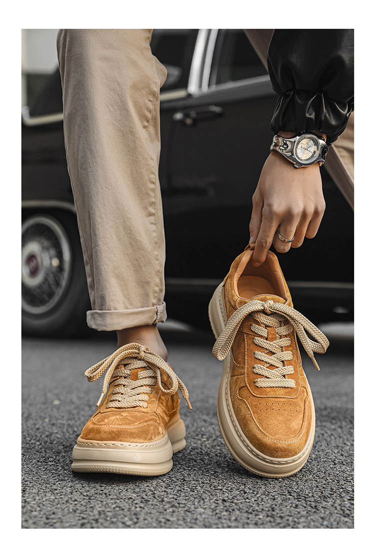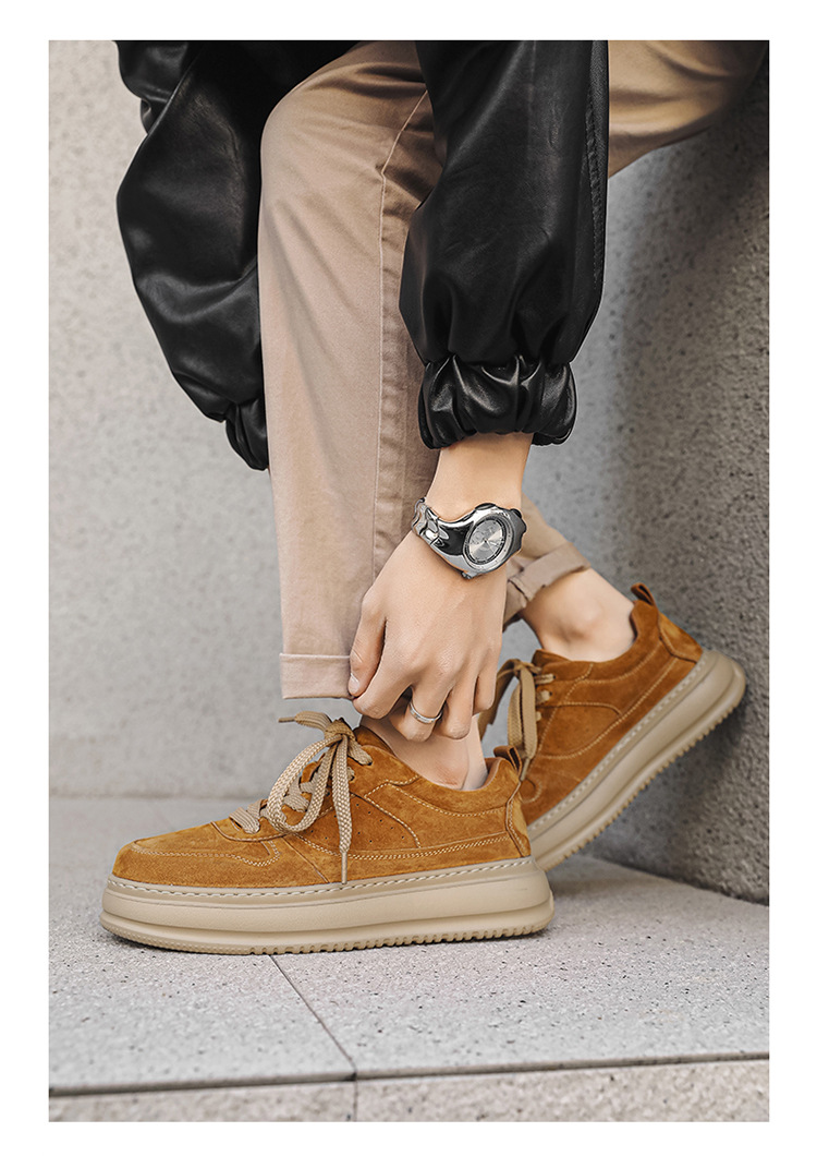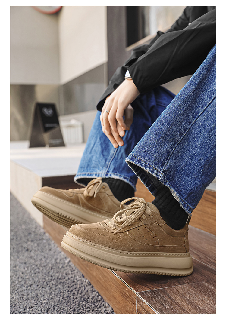 2025 패션 유행 둥근 발가락 남자의 캐주얼 운동화 작은 가죽 신발 영국 통근 스웨이드 싱글 신발