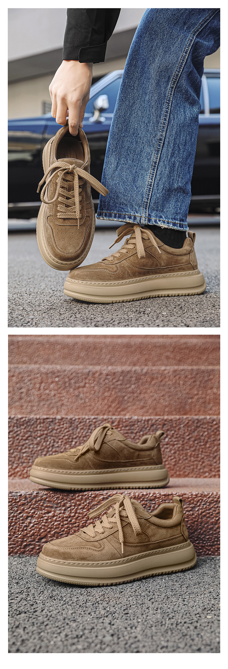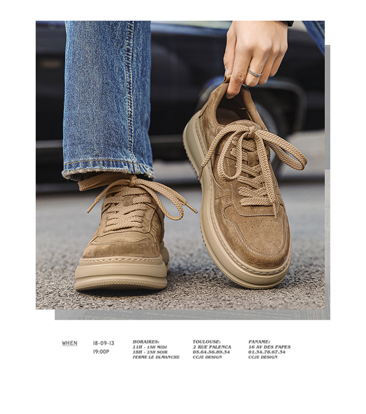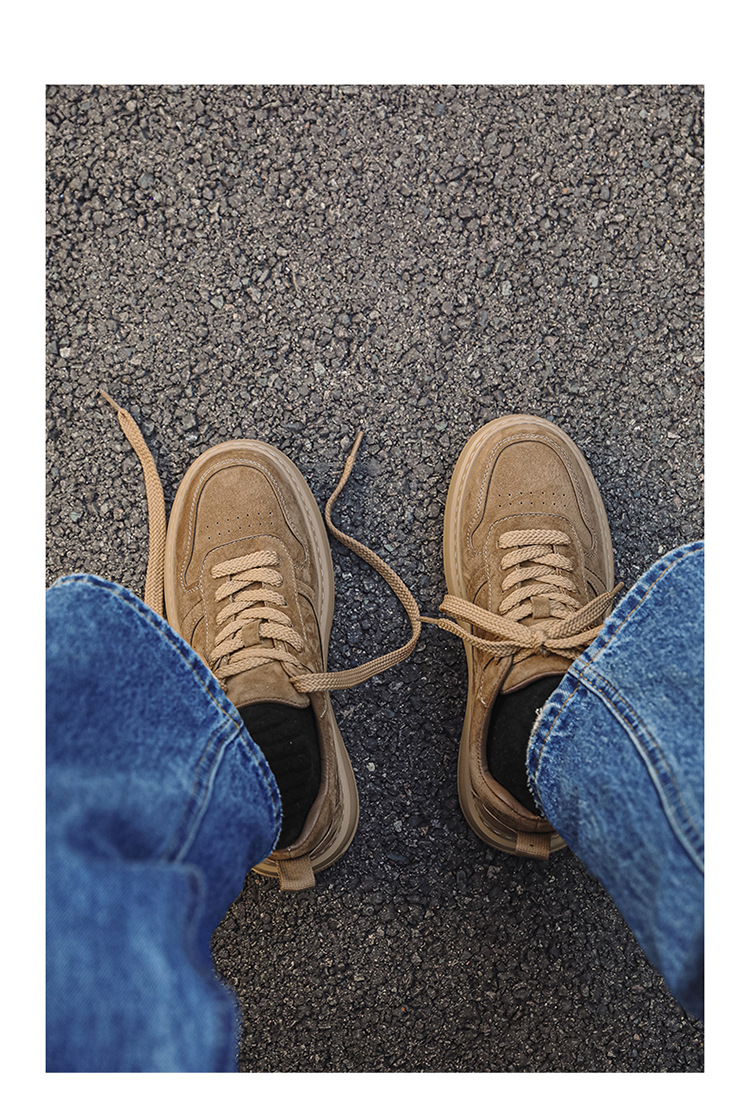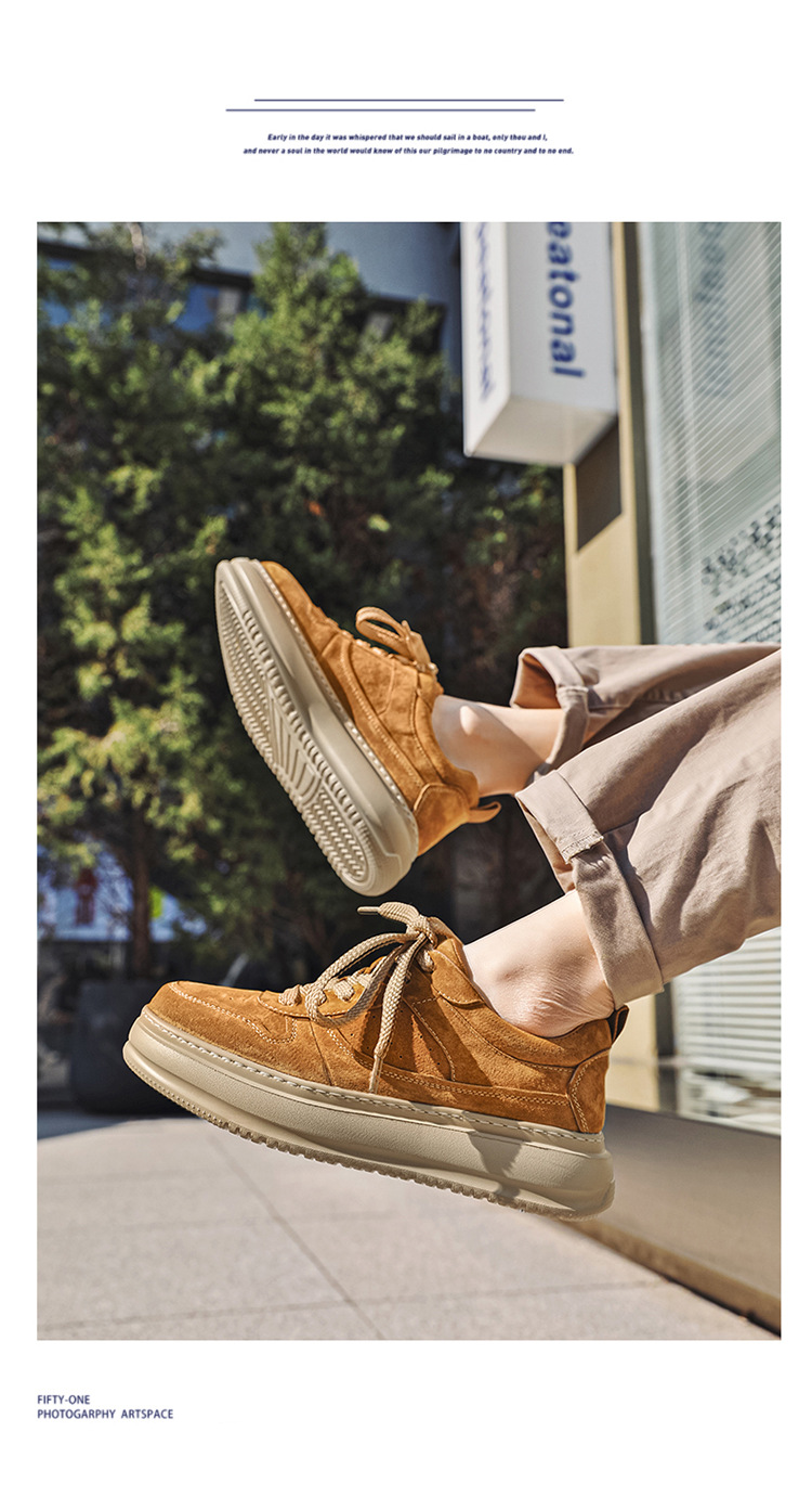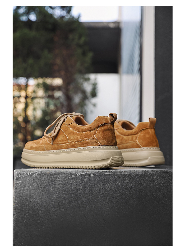 2025 패션 유행 둥근 발가락 남자의 캐주얼 운동화 작은 가죽 신발 영국 통근 스웨이드 싱글 신발