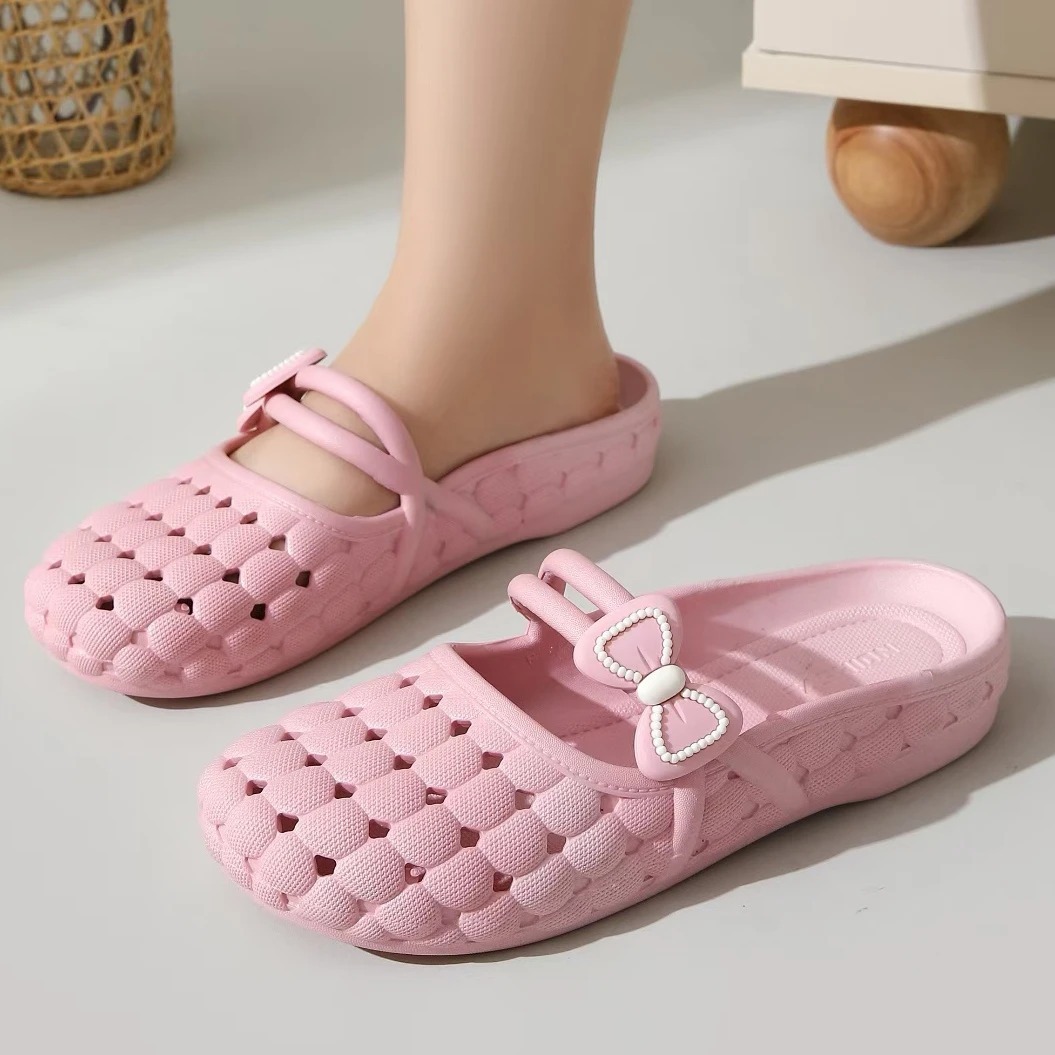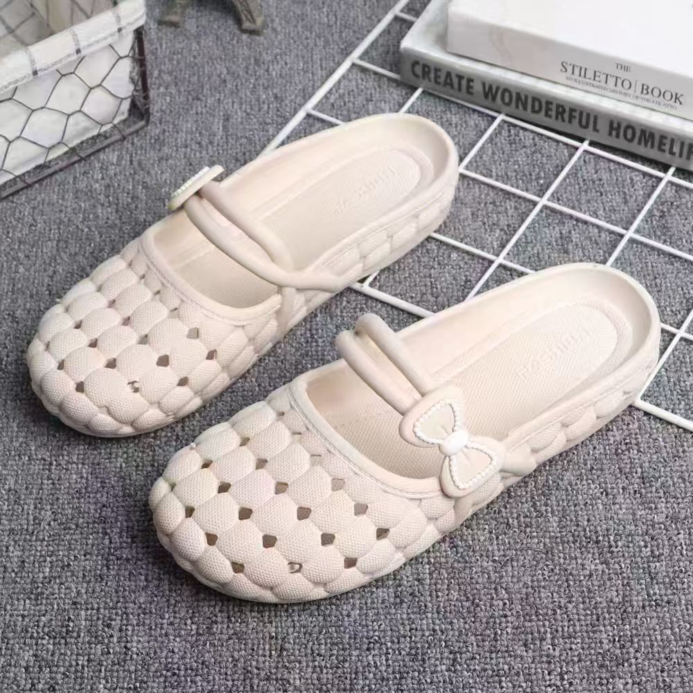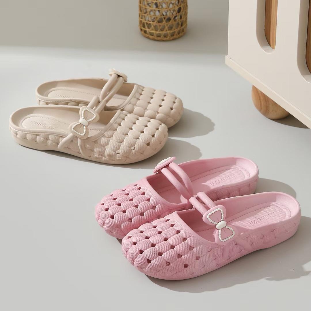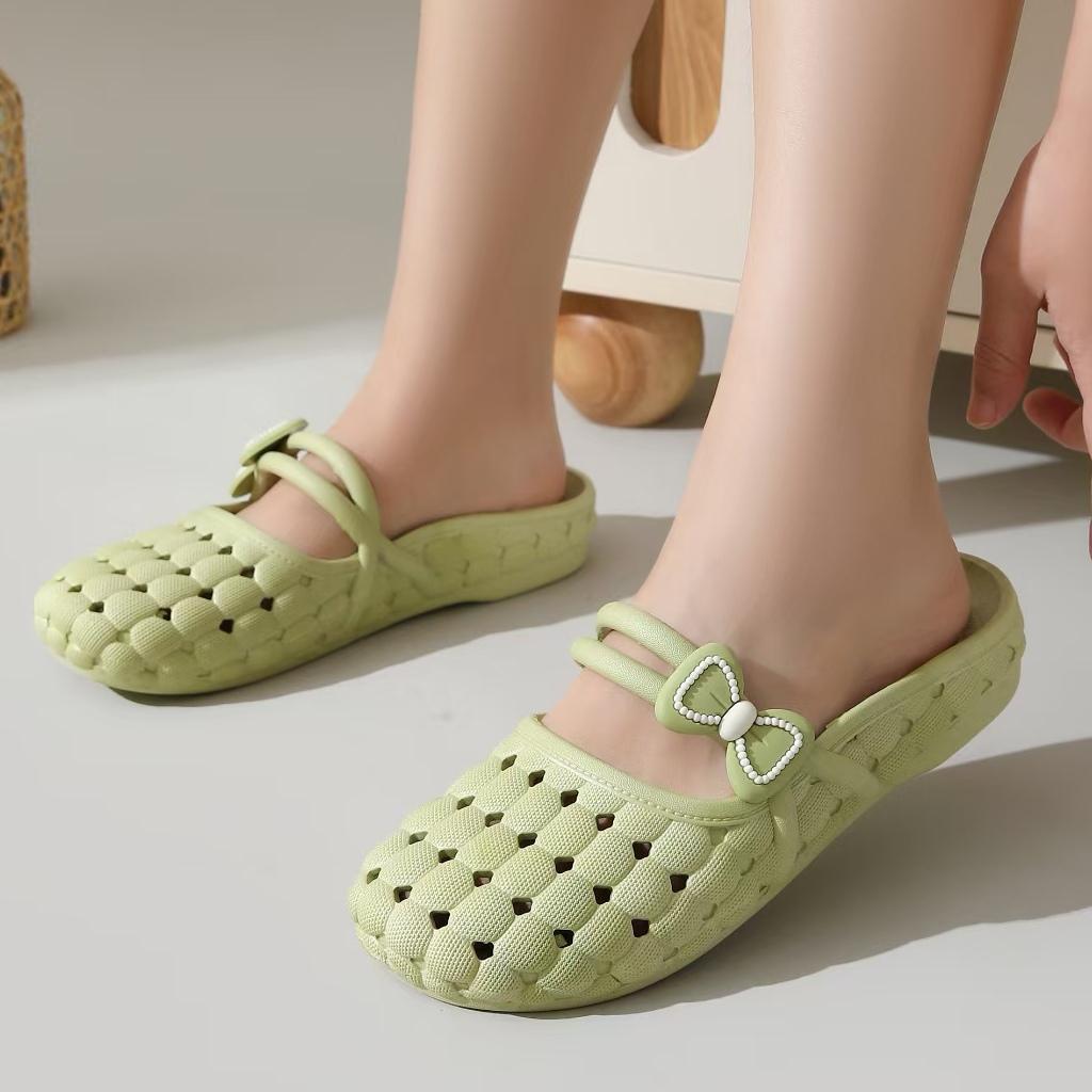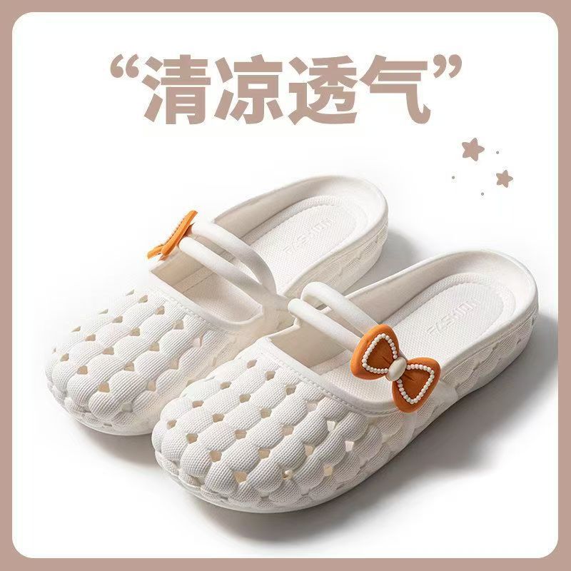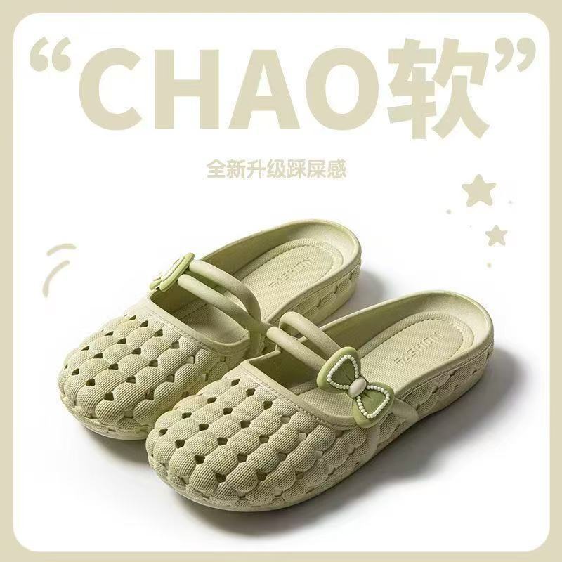 바오터우 슬리퍼 여성 여름 소프트 솔 한국 스타일 가구 실내 및 실외 착용 통기성 미끄럼 플랫 샌들 플라스틱 구멍 신발