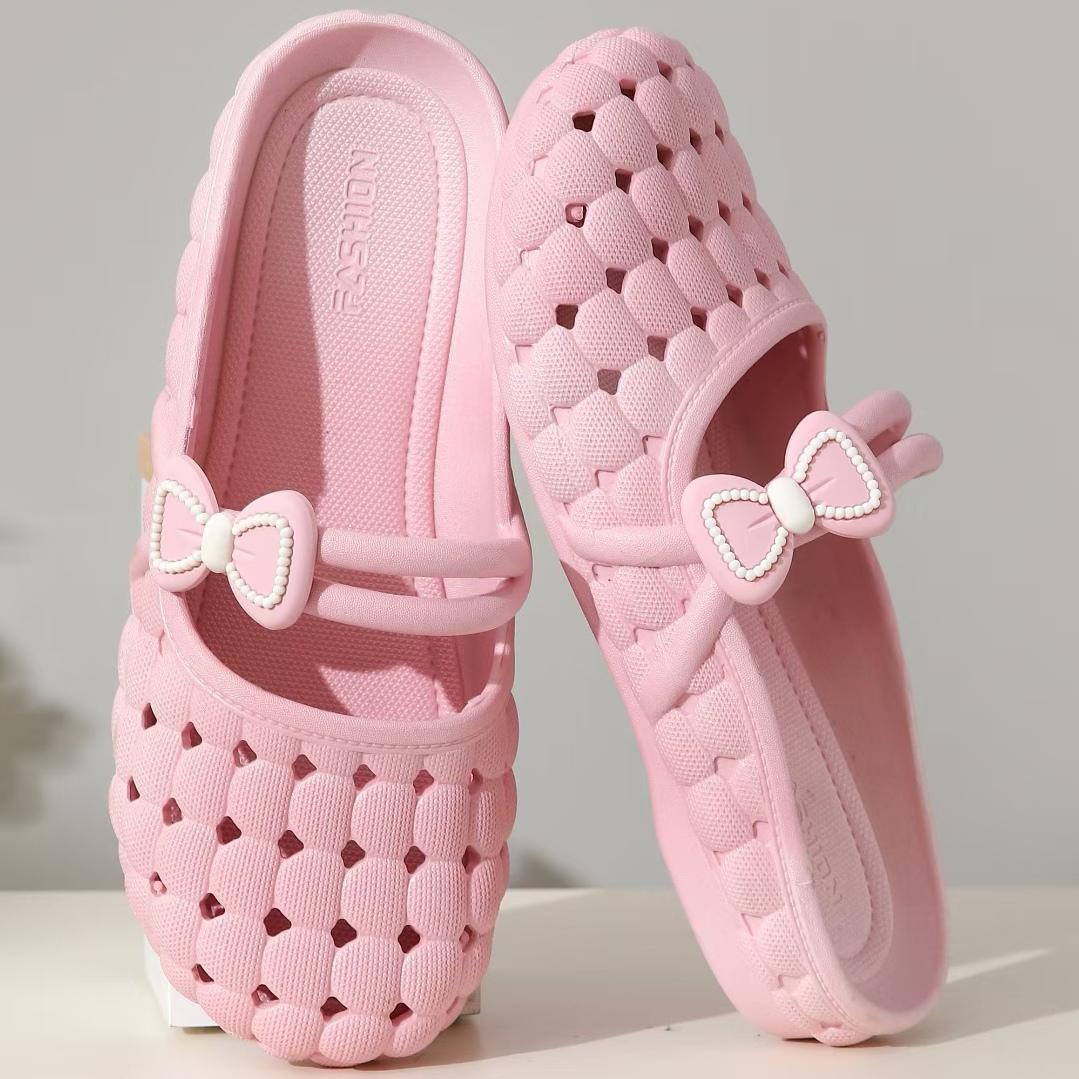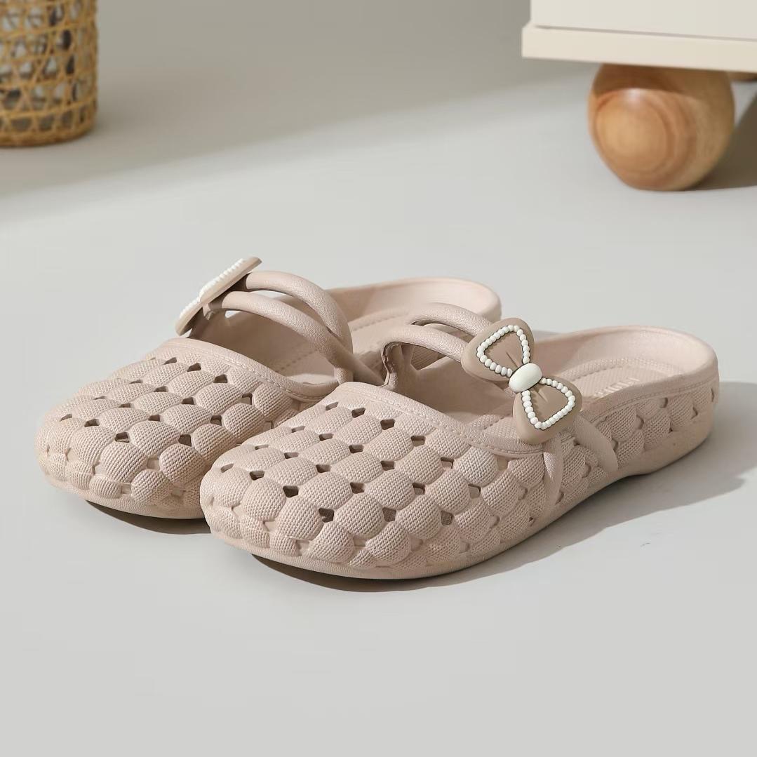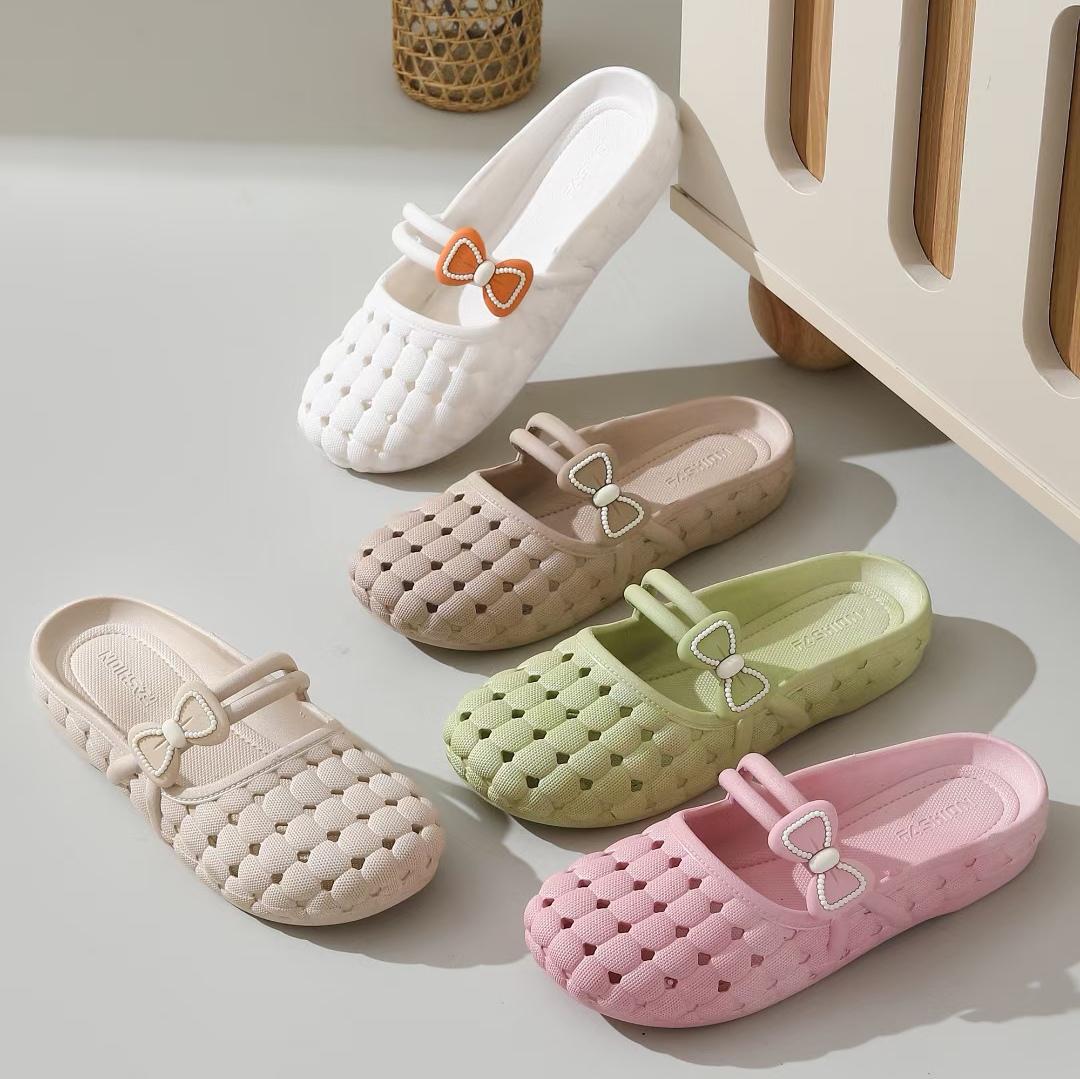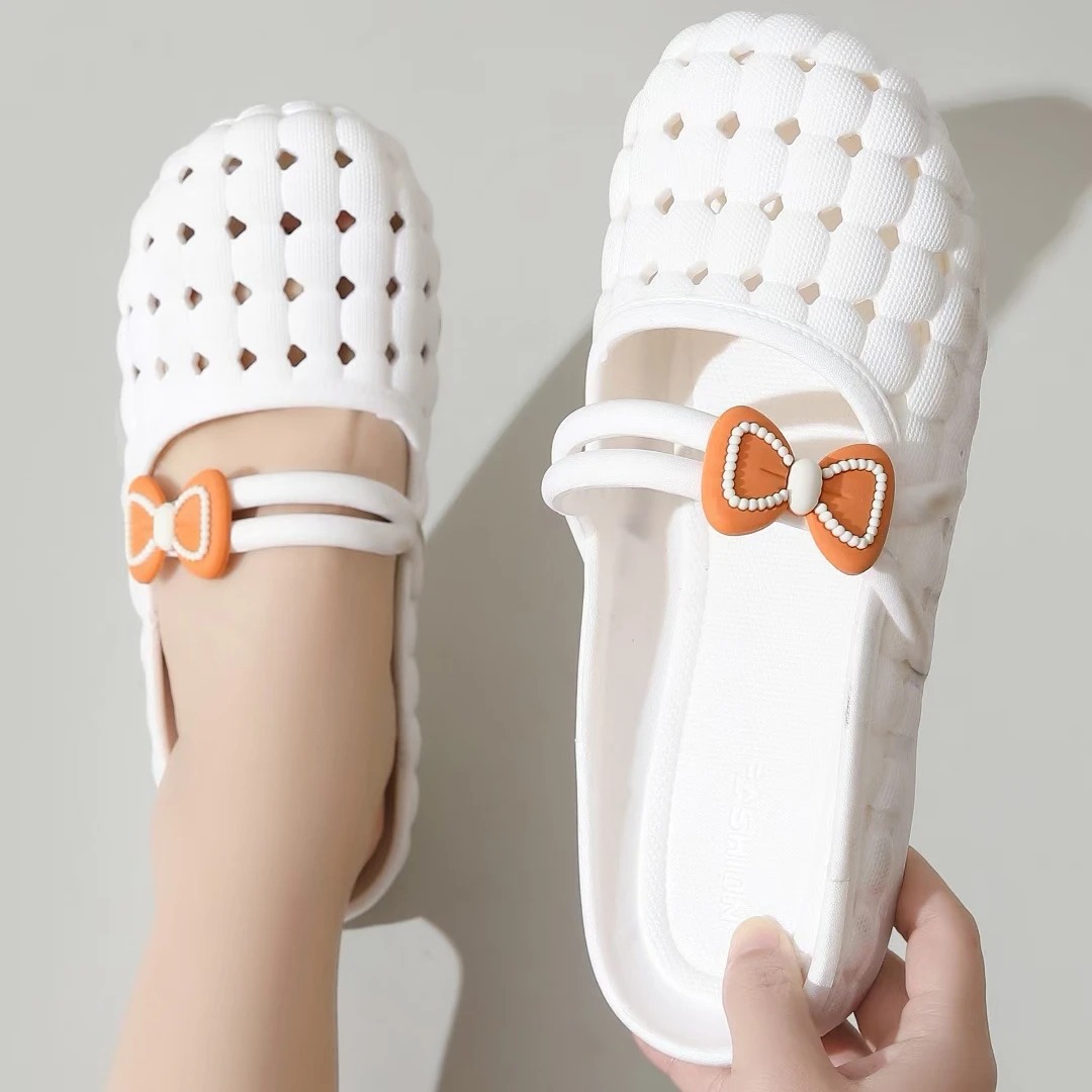 바오터우 슬리퍼 여성 여름 소프트 솔 한국 스타일 가구 실내 및 실외 착용 통기성 미끄럼 플랫 샌들 플라스틱 구멍 신발
