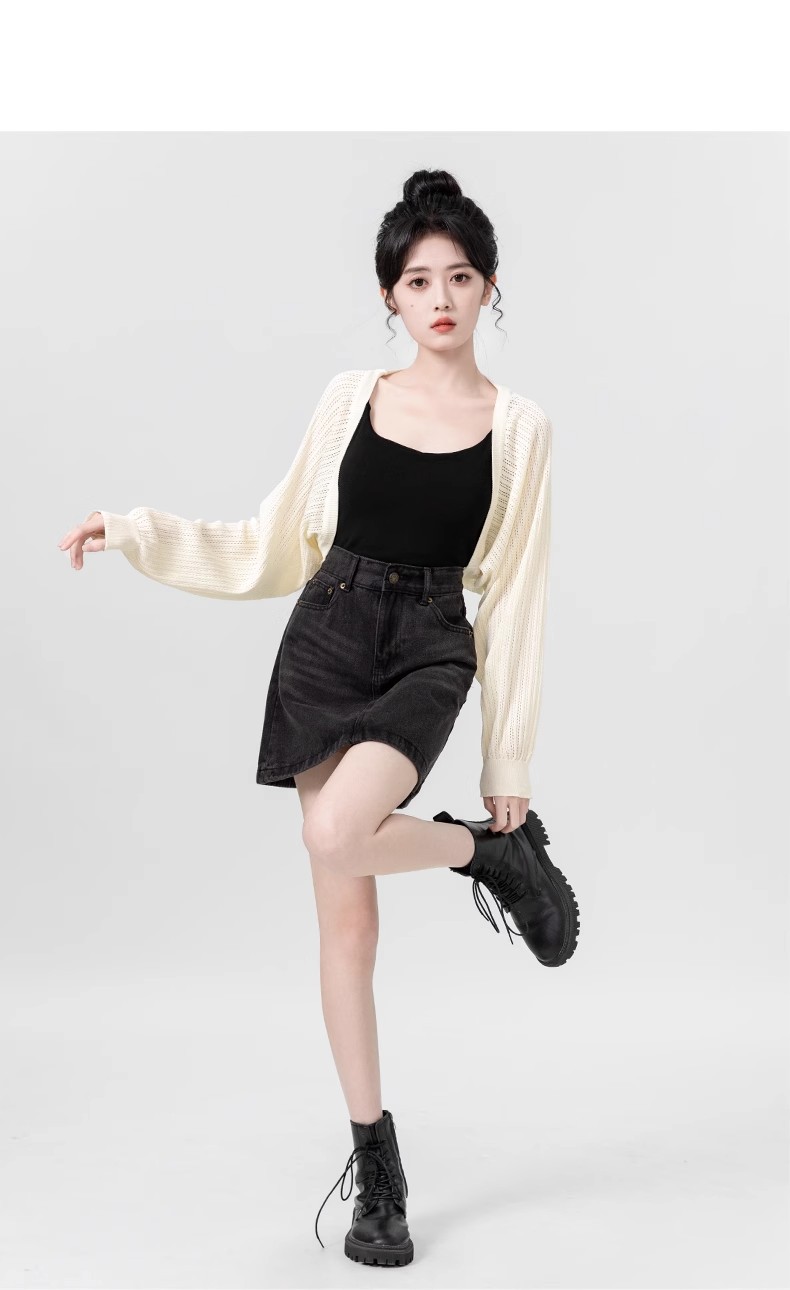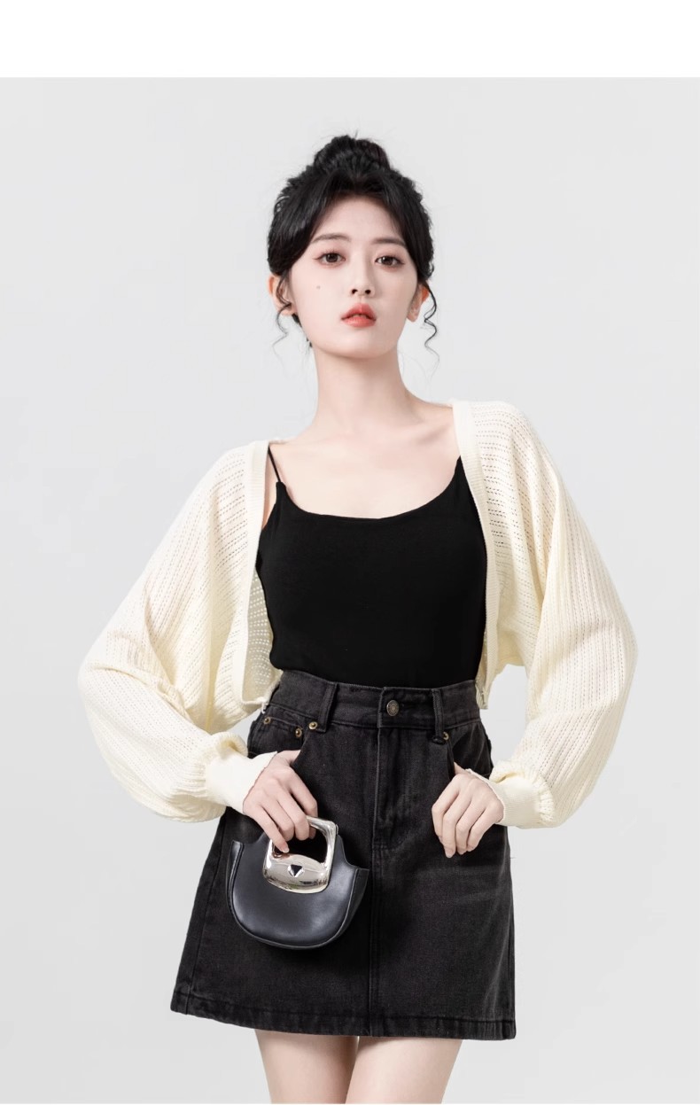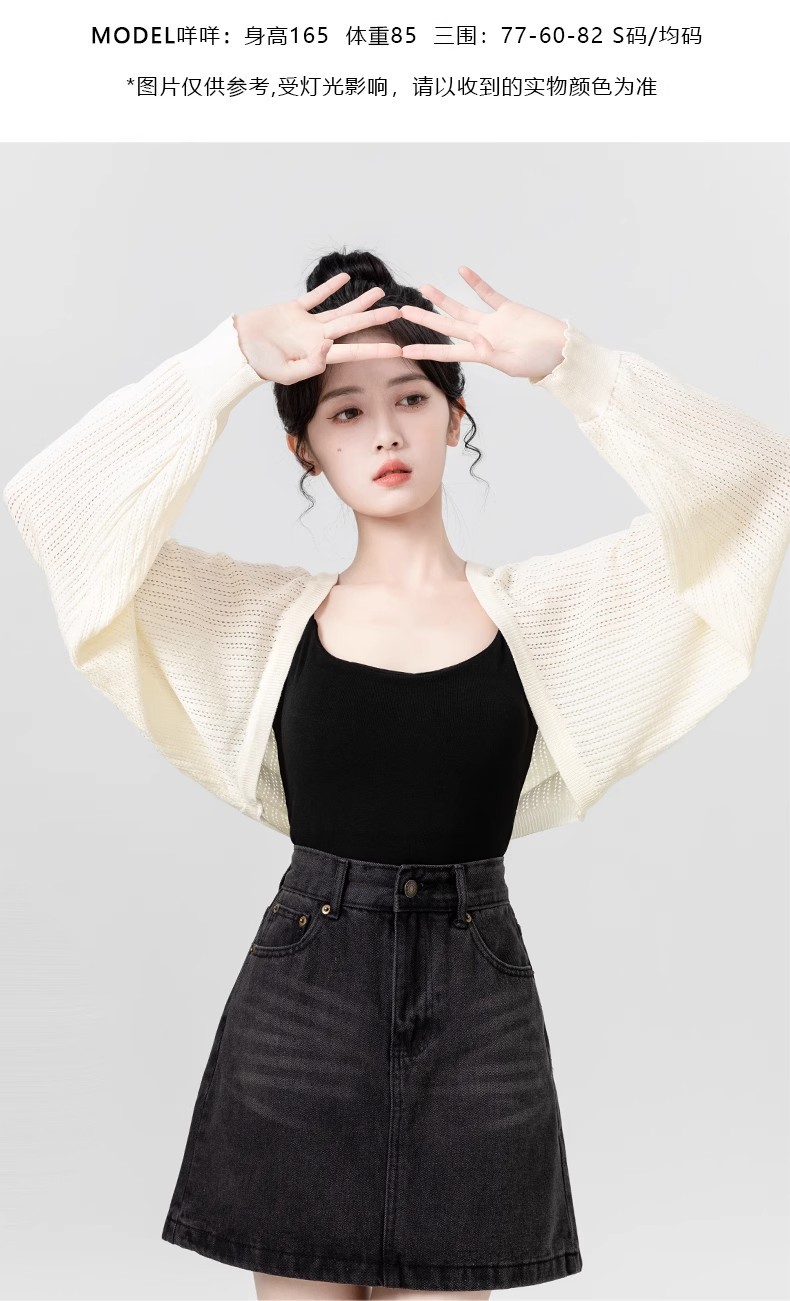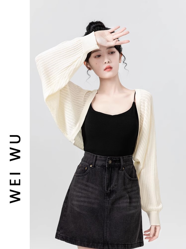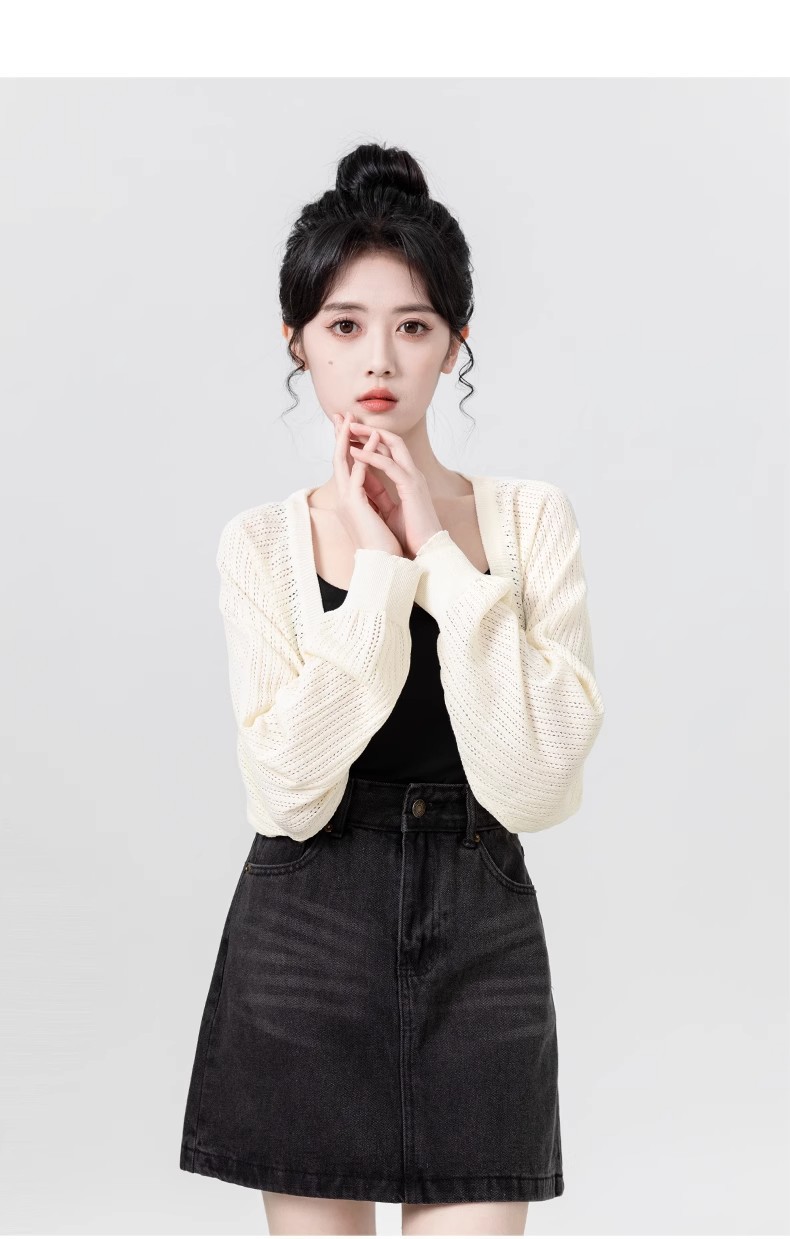 살구색 속이 비치는 긴팔 니트 가디건 여성용 여름 2026 신상품 자외선 차단 블라우스 탑 숏 스타일 조끼형 탑